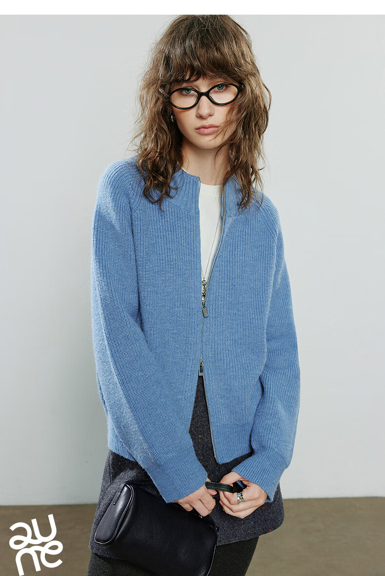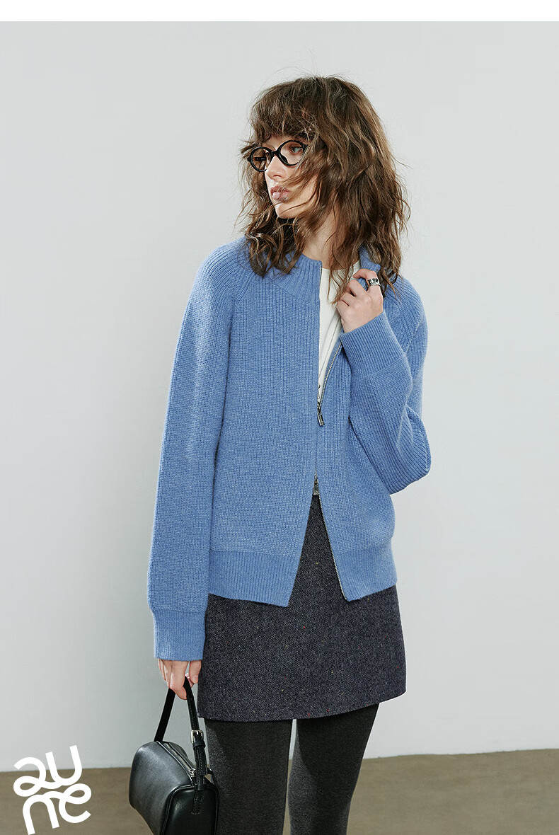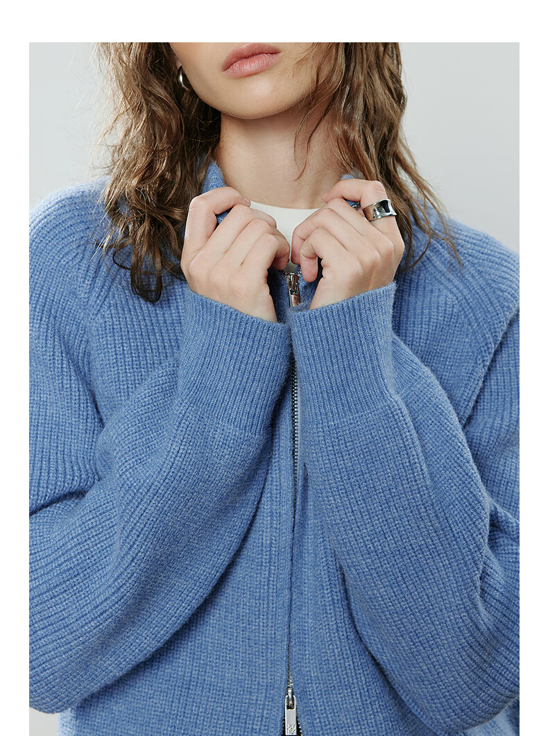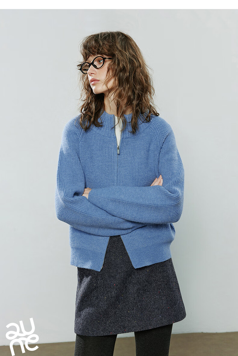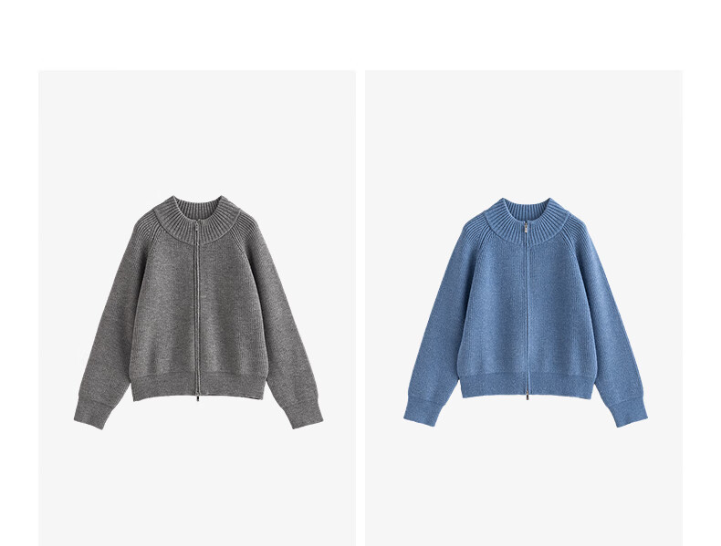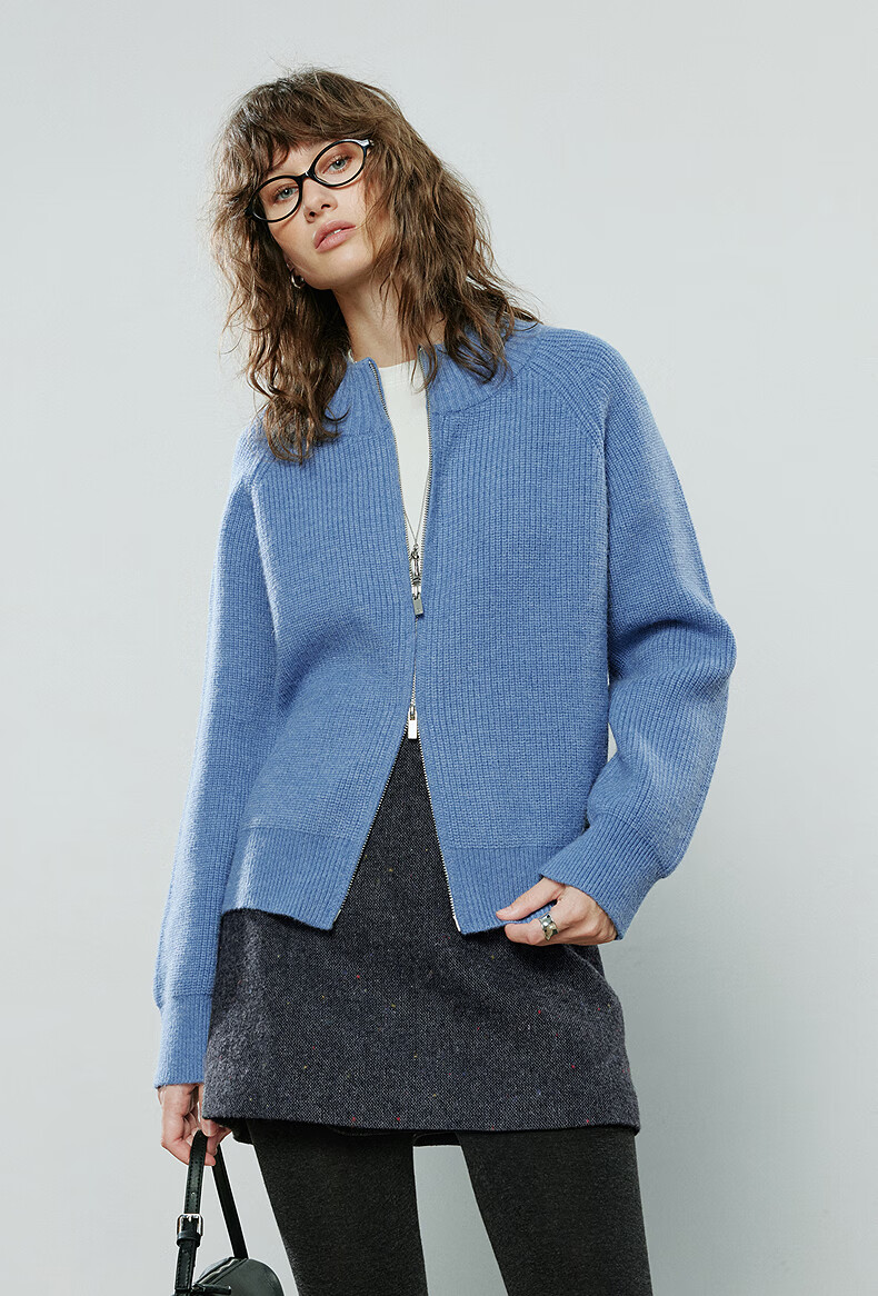 初语毛衣女2025冬季新款拉链半高领复古轻运动软糯北极绒开衫外套 夹花蓝MXL预售10-15 L