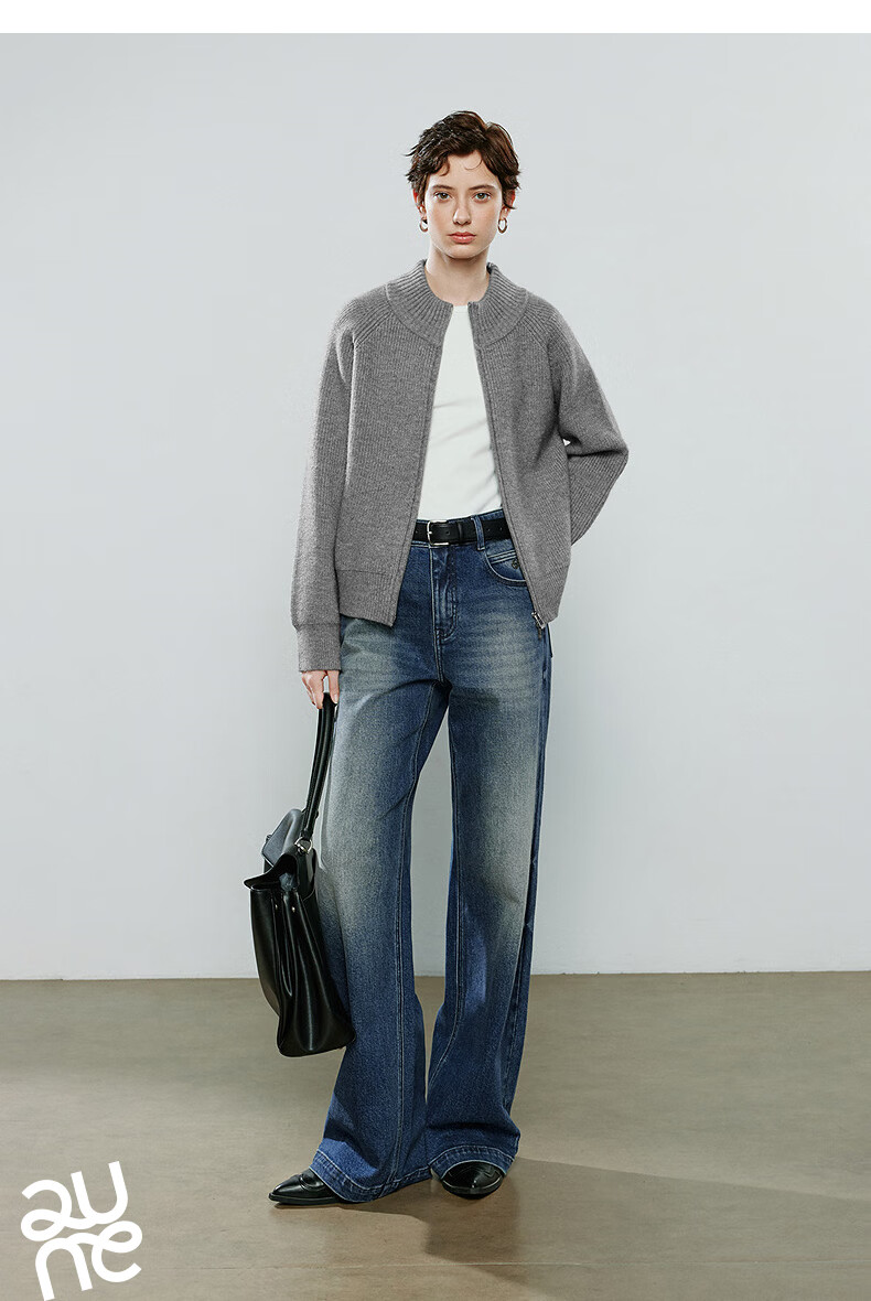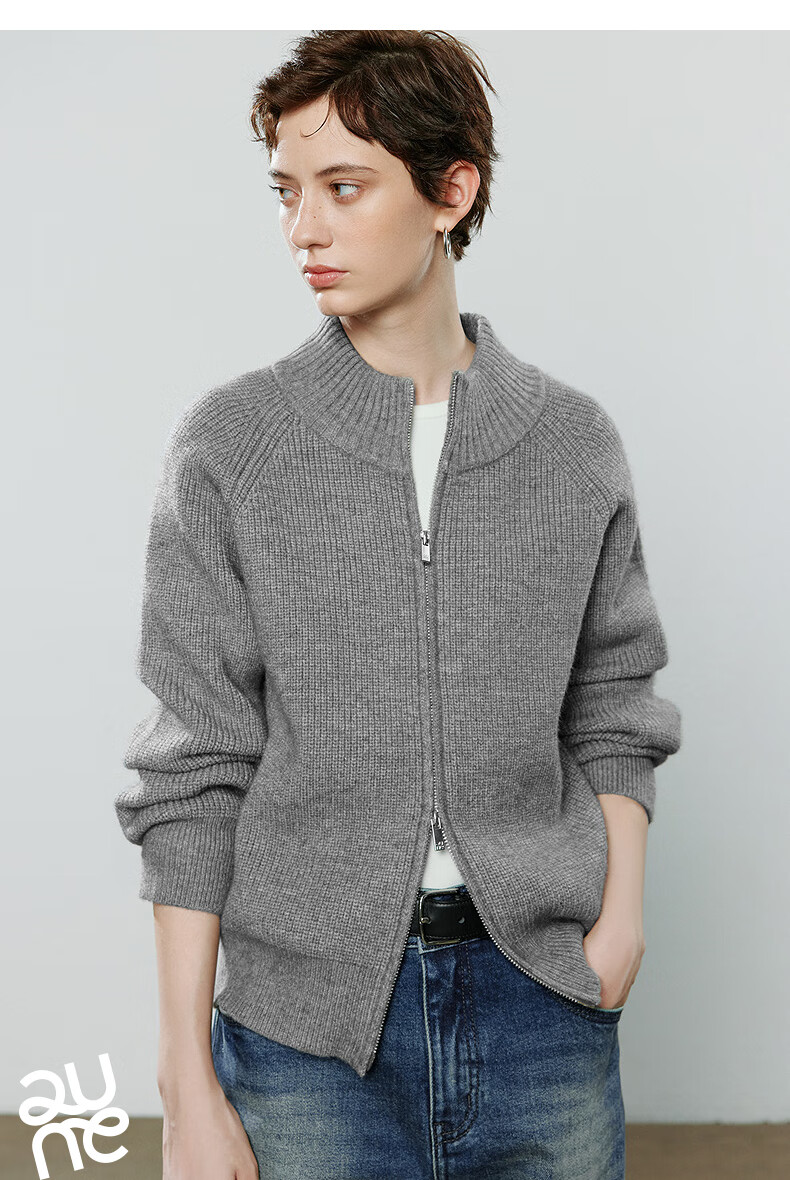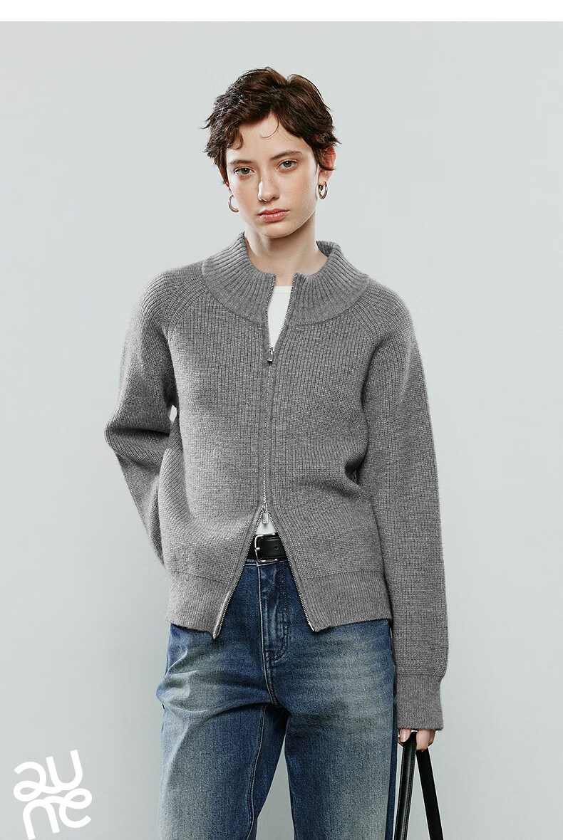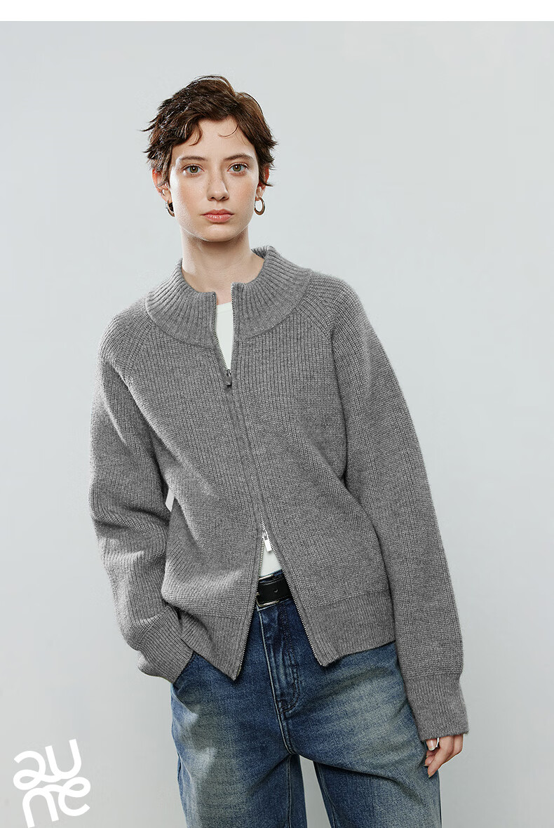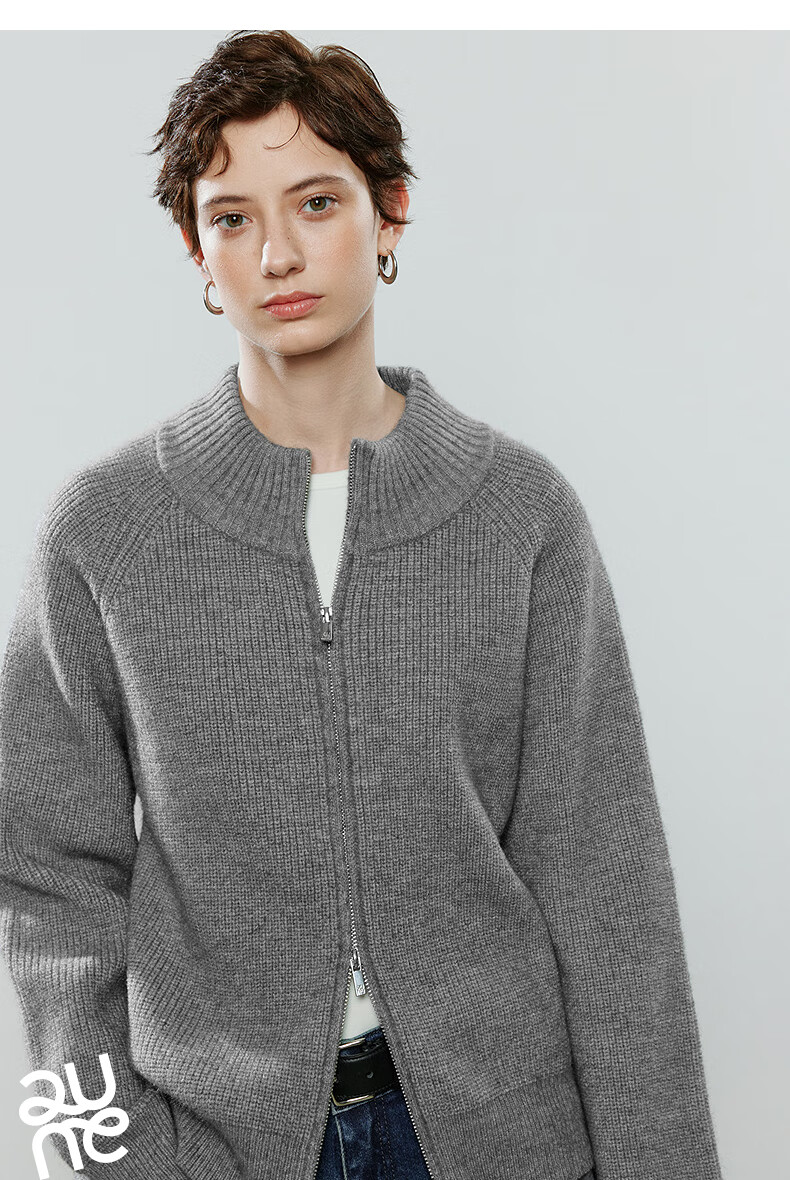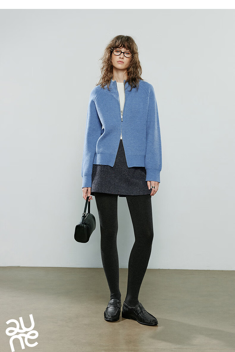初语毛衣女2025冬季新款拉链半高领复古轻运动软糯北极绒开衫外套 夹花蓝MXL预售10-15 L