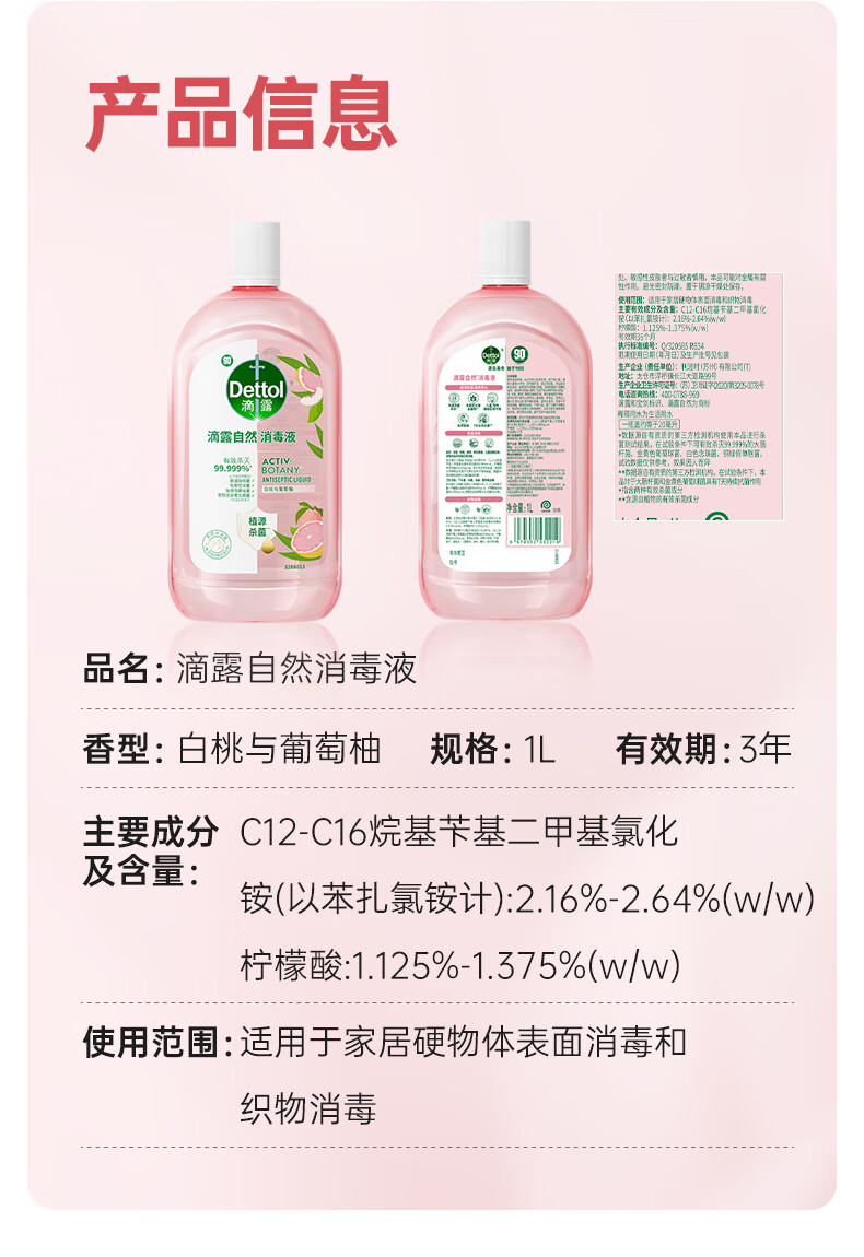 滴露衣物消毒除菌液 高效杀菌除螨除味内衣裤清洁 可配洗衣液消毒液用 【店长推荐】 柠檬3L*2大瓶