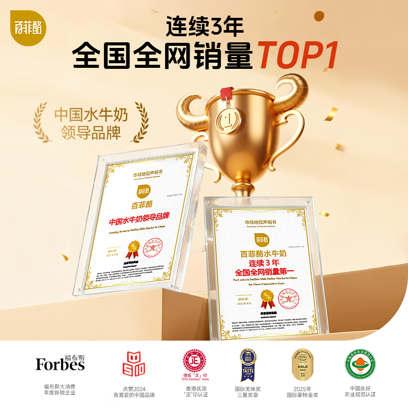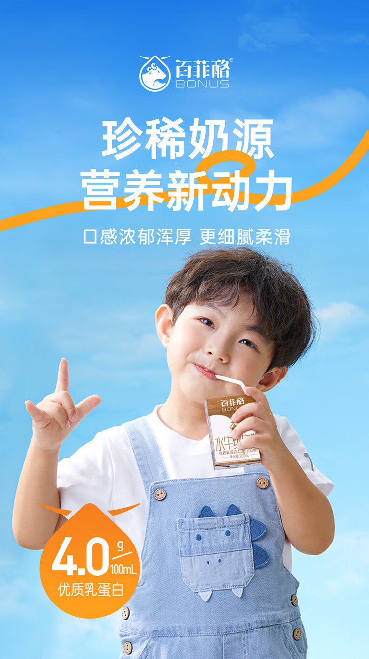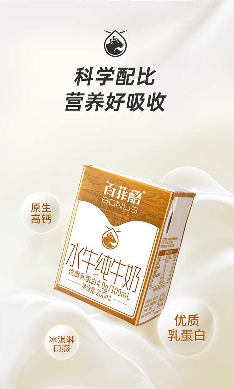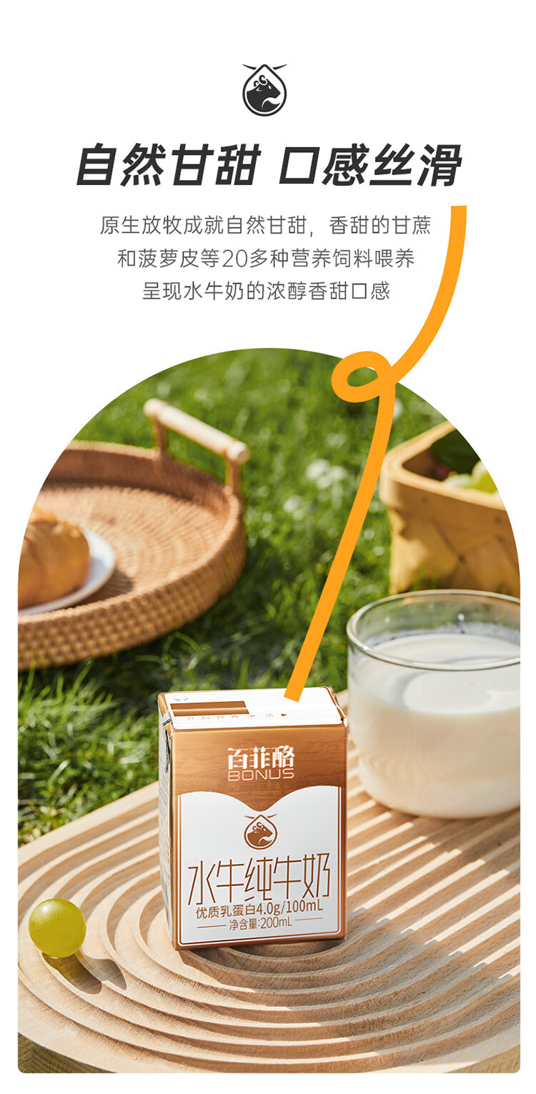 百菲酪水牛纯牛奶200ml*20盒 4.0g优质乳蛋白 礼盒装