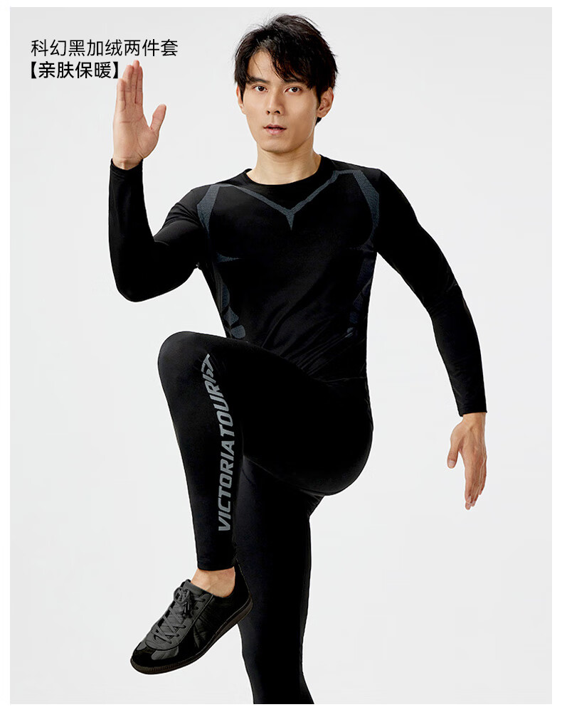VICTORIATOURIST运动套装男士跑步速干衣紧身健身服篮球训练服打底羽毛球服