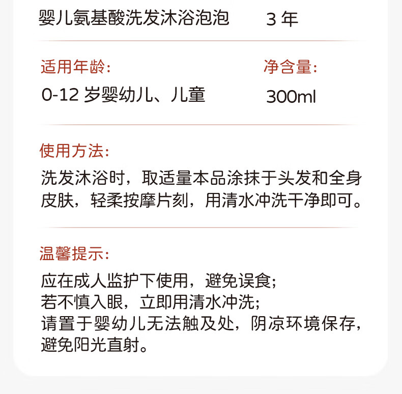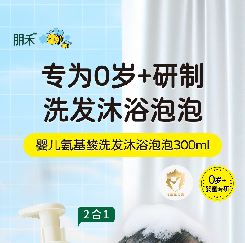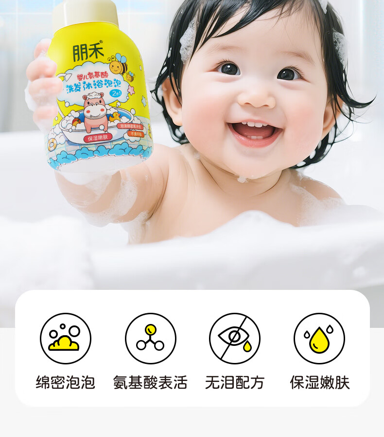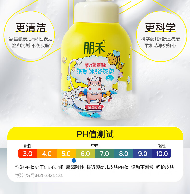 朋禾儿童氨基酸洗发沐浴泡泡二合一宝宝洗发水沐浴露清洁保湿沐浴露 【洗发沐浴露】二合一300ml