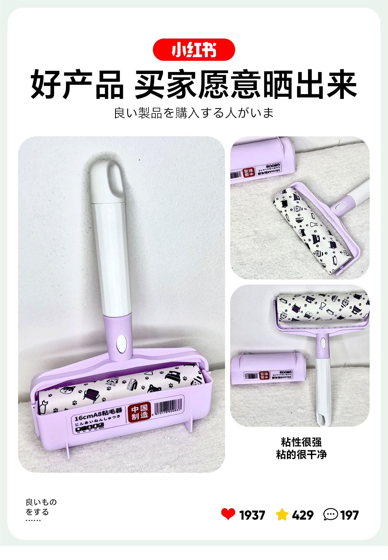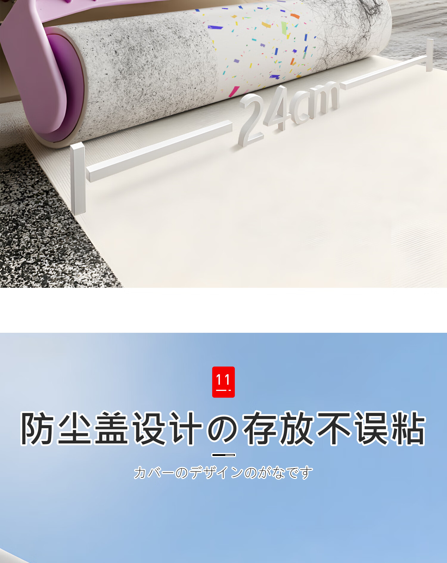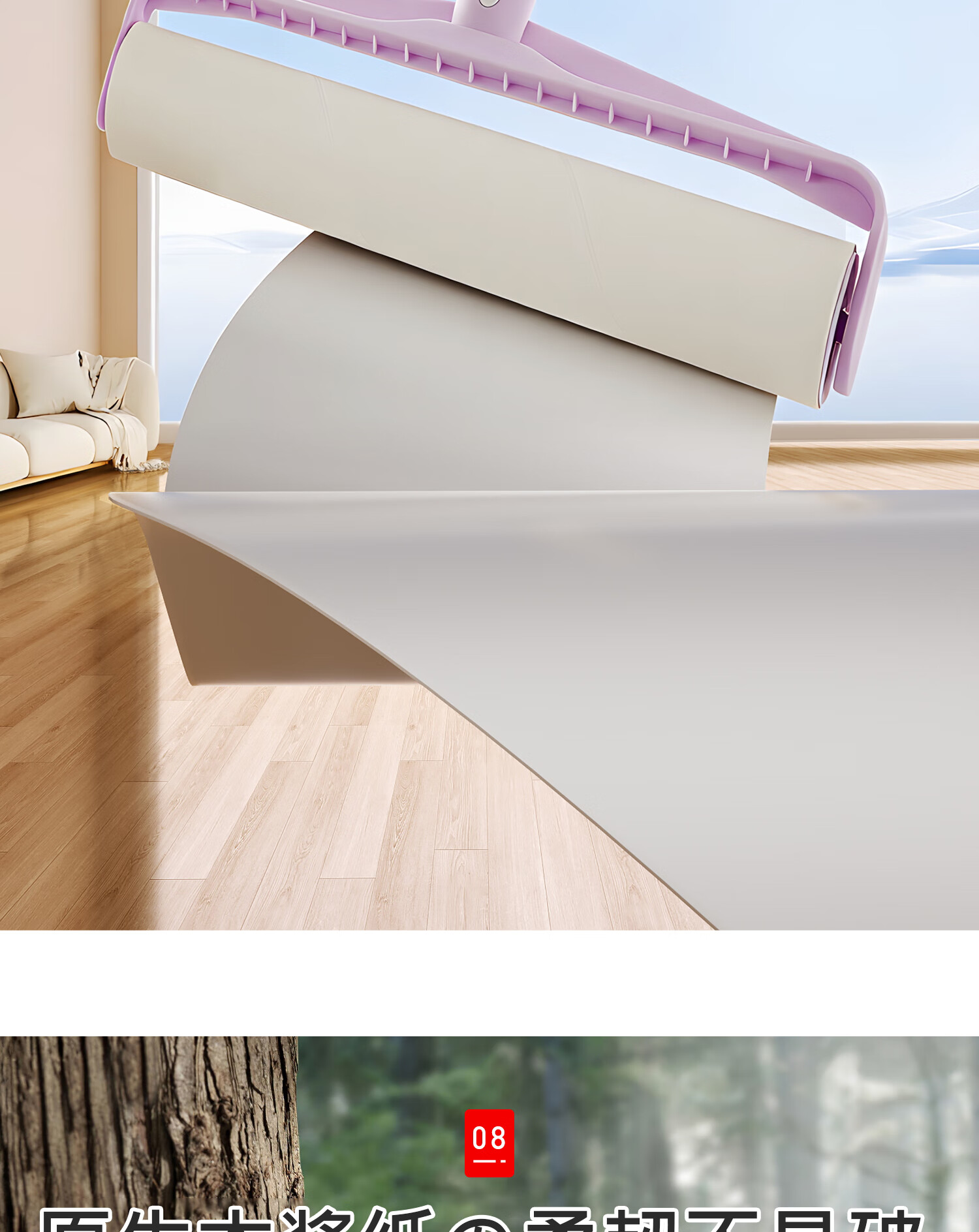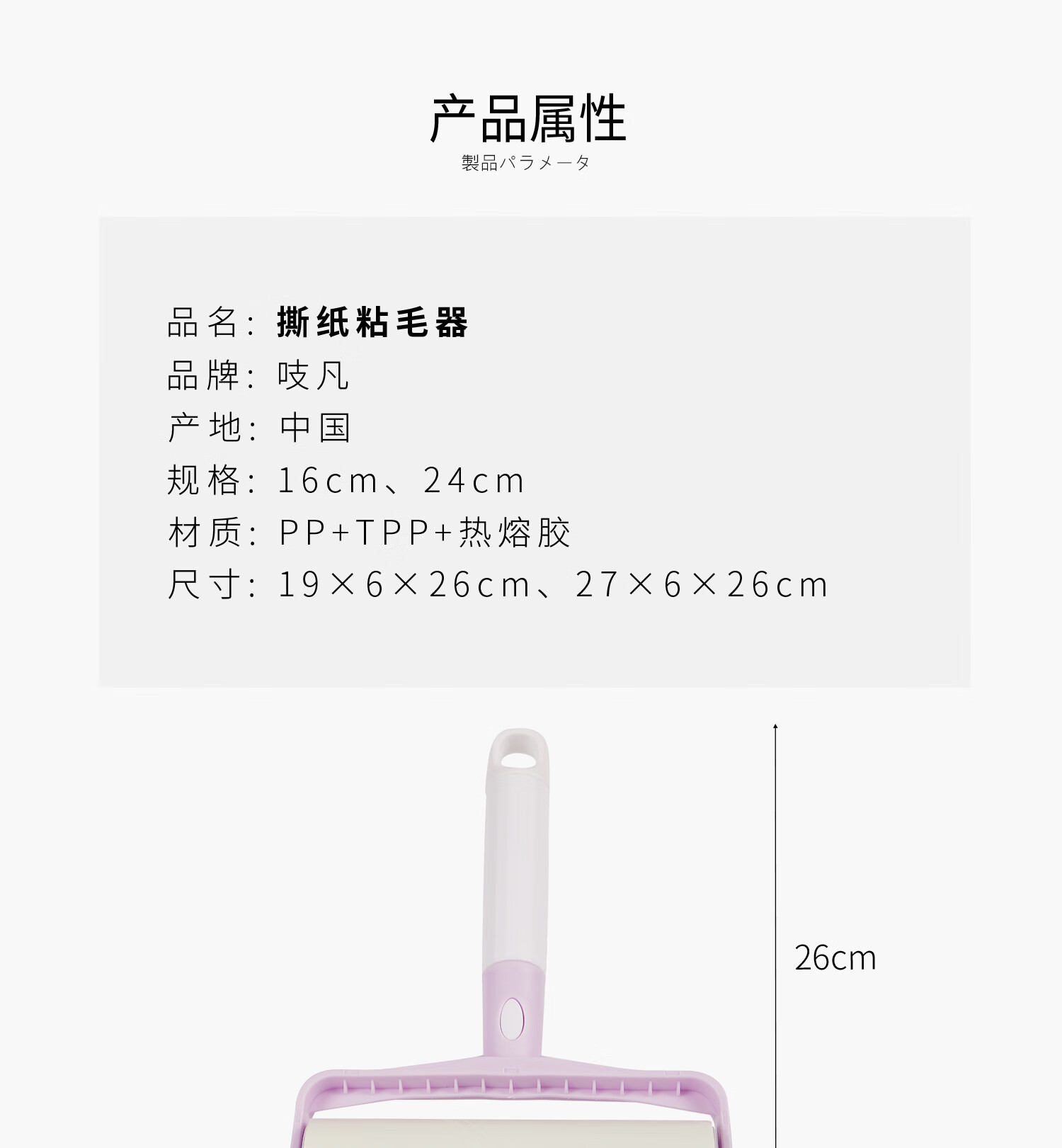 吱凡日本粘毛器滚筒替换可撕式纸沾毛床上去毛滚刷毡粘衣服神器黏头发 【24cm】+9卷纸【420撕】送挂钩