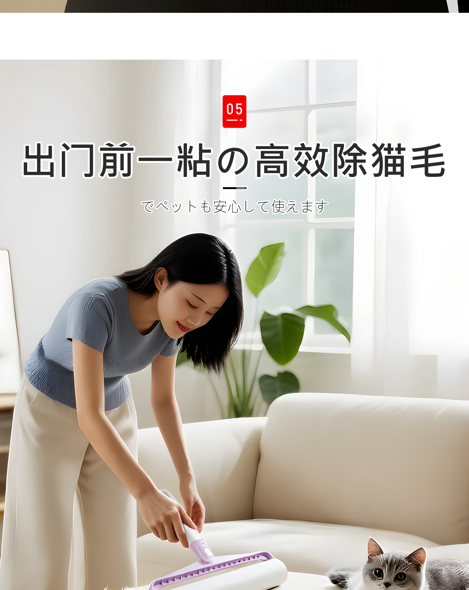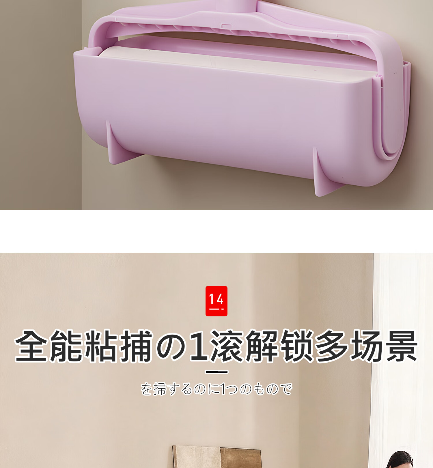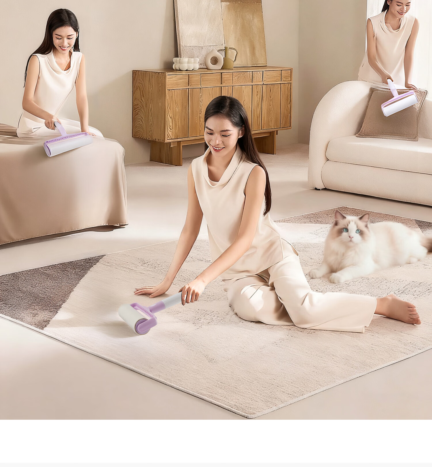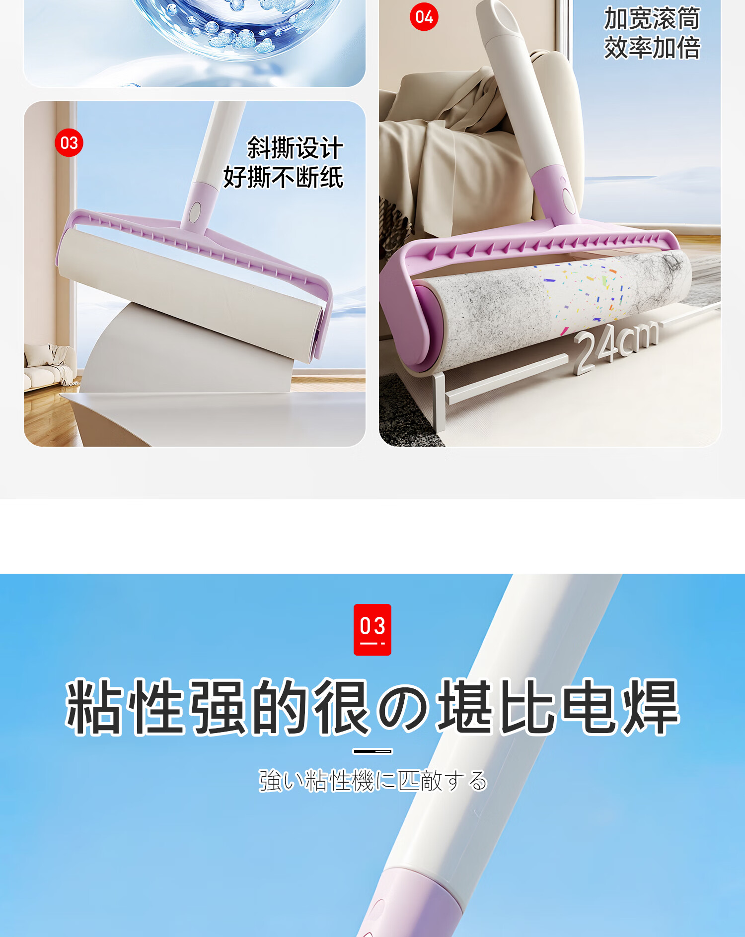 吱凡日本粘毛器滚筒替换可撕式纸沾毛床上去毛滚刷毡粘衣服神器黏头发 【24cm】+9卷纸【420撕】送挂钩