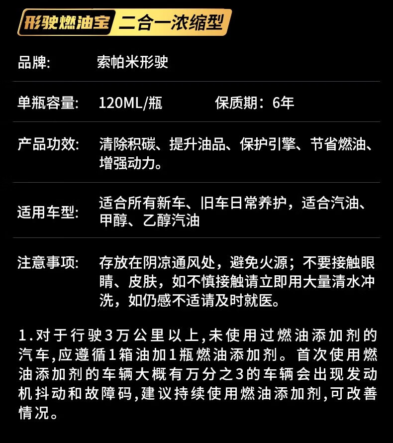 索帕米SOPAMI形驶二合一燃油宝三元催化器清洗剂发动机免拆除积碳添加剂 【10万公里以上】养护二合一*8