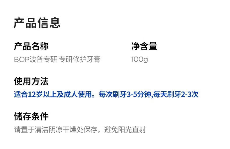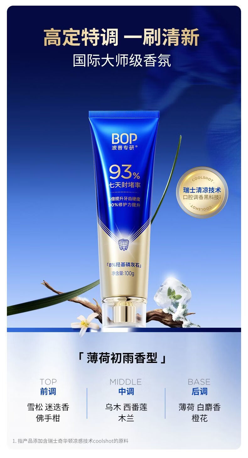 bop羟基磷灰石牙膏【热巴同款】波普专研修护牙釉质牙膏抗敏感 【1支】羟基磷灰石牙膏100g 【正品保障,现货速发】