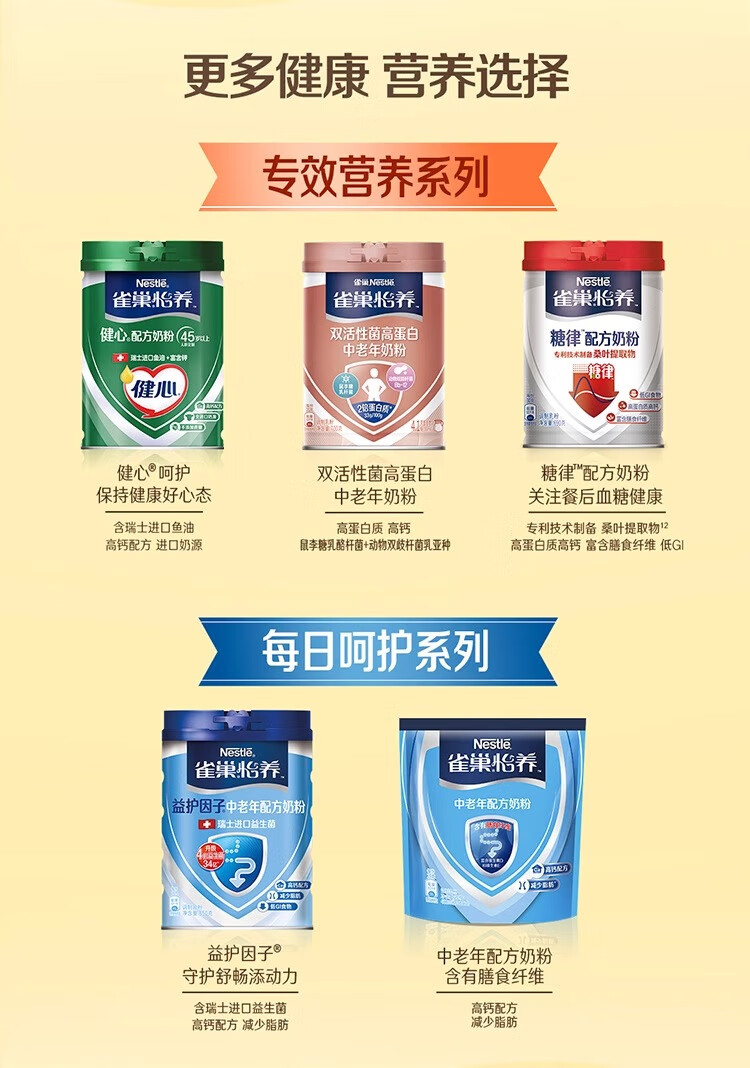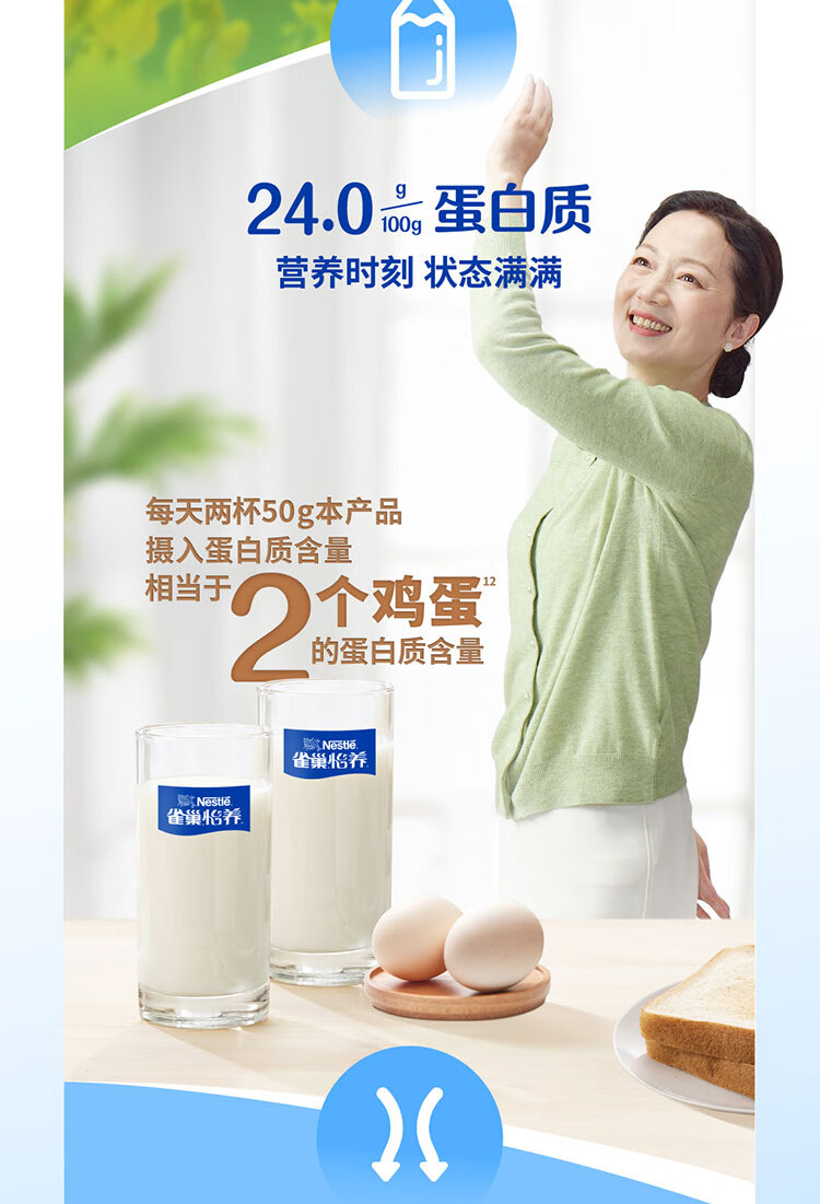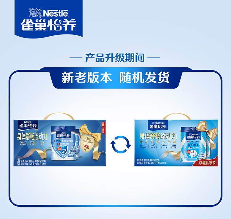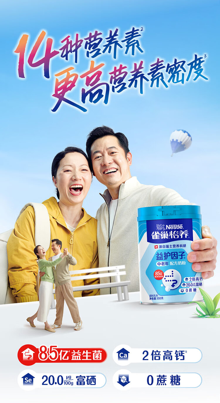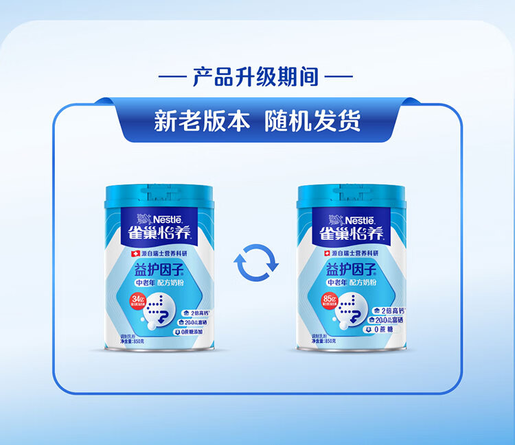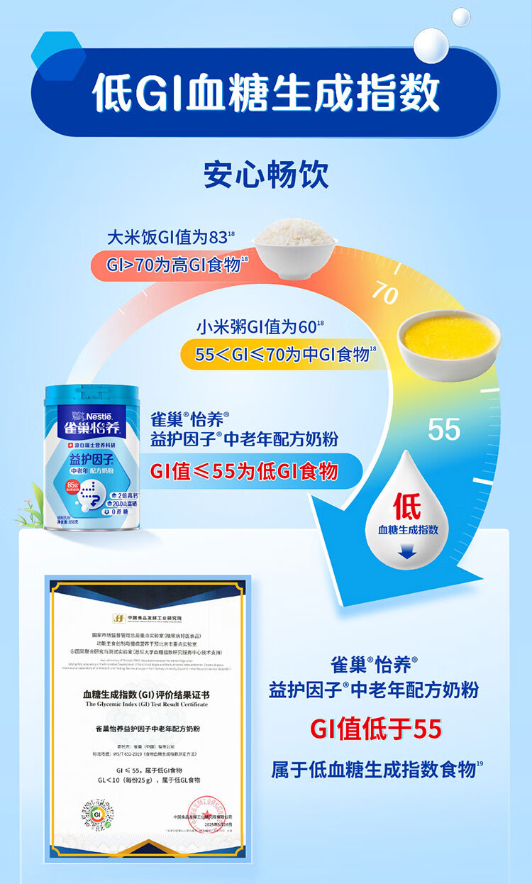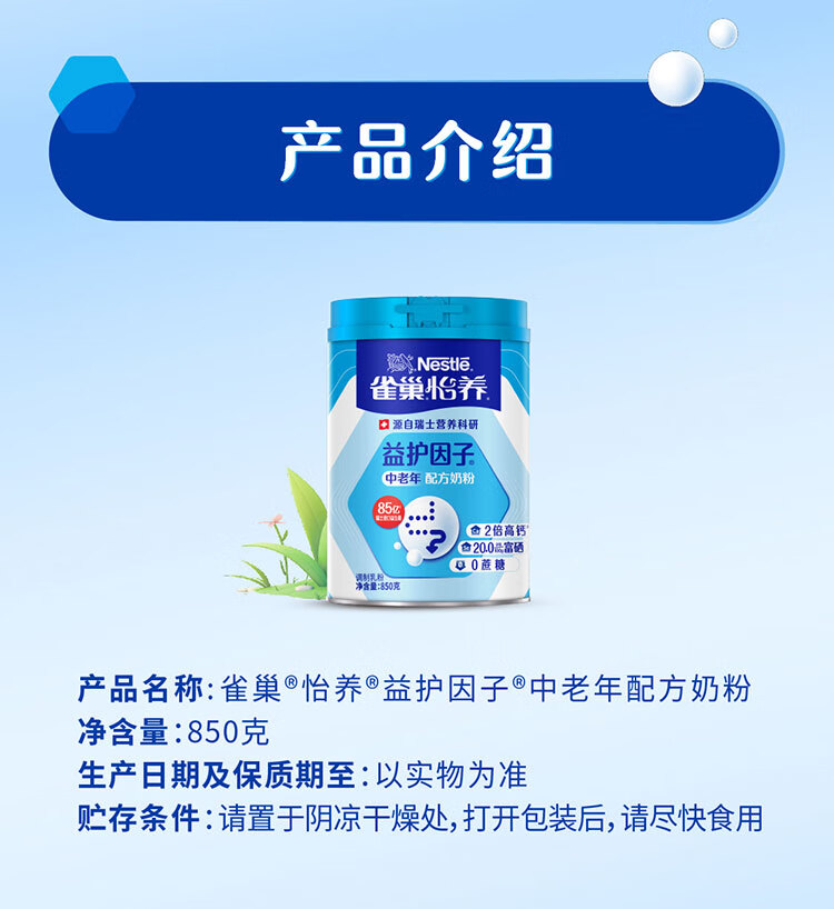 雀巢(Nestle)奶粉怡养中老年奶粉 膳食纤维不添加蔗糖 送老人 益护因子中老年850g*2罐 礼盒