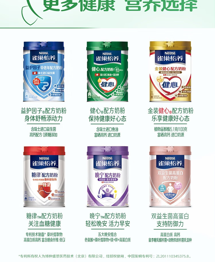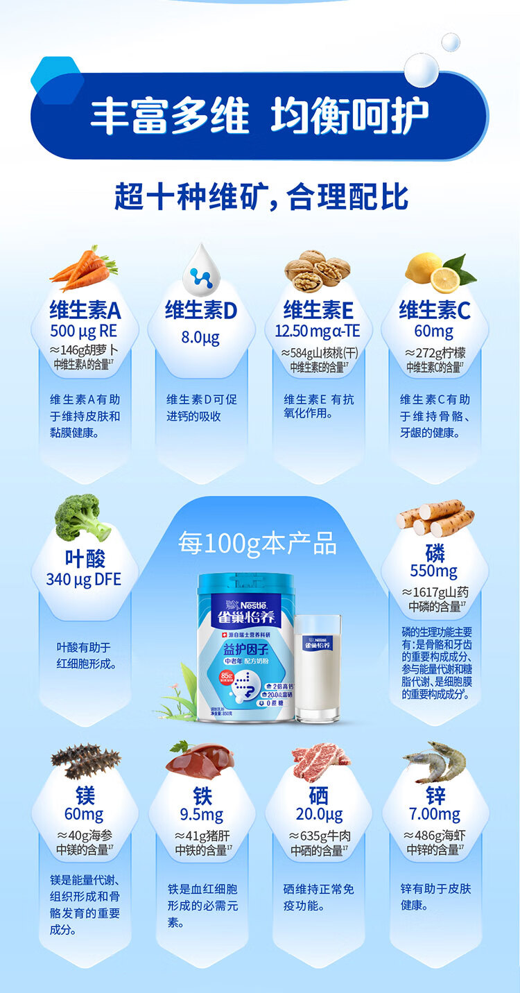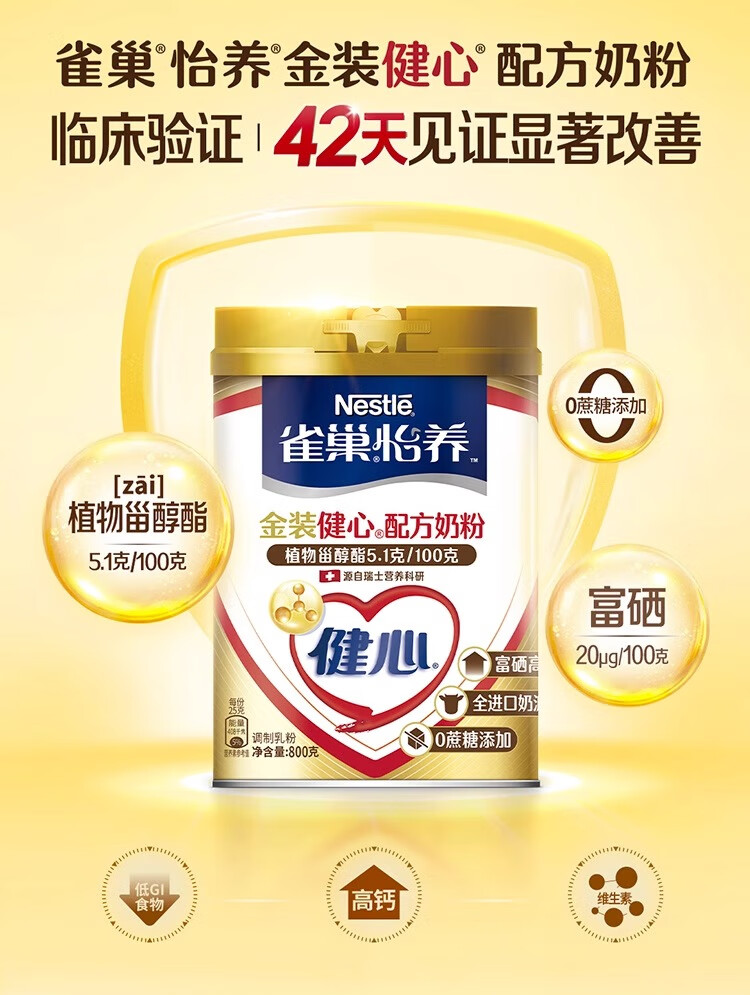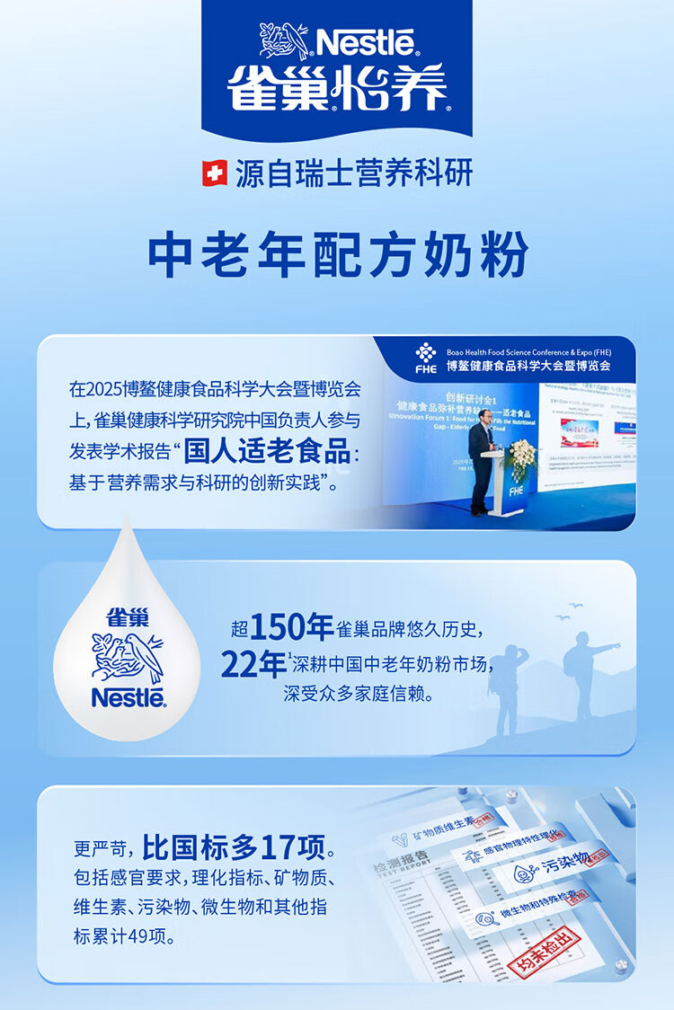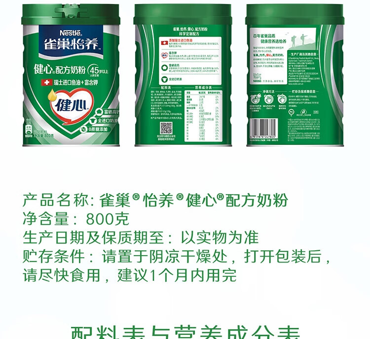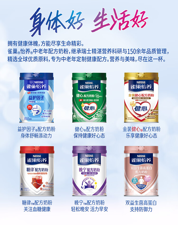 雀巢(Nestle)奶粉怡养中老年奶粉 膳食纤维不添加蔗糖 送老人 益护因子中老年850g*2罐 礼盒