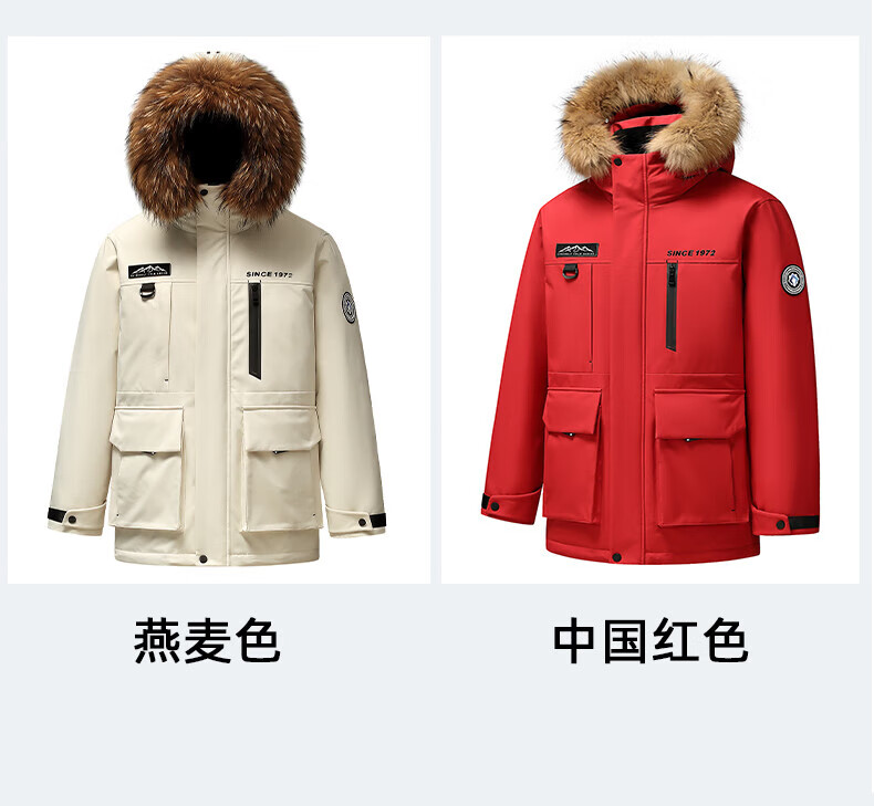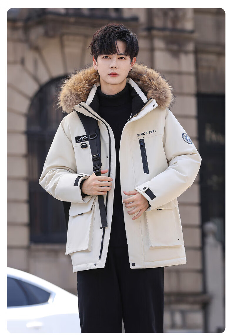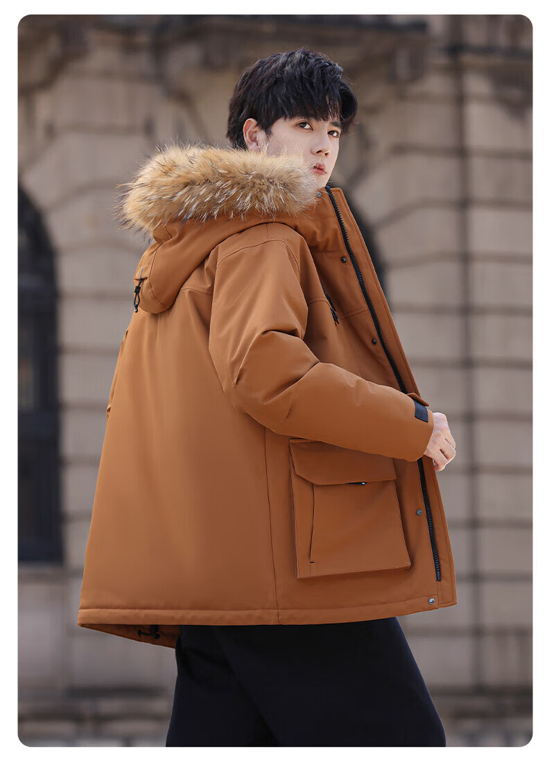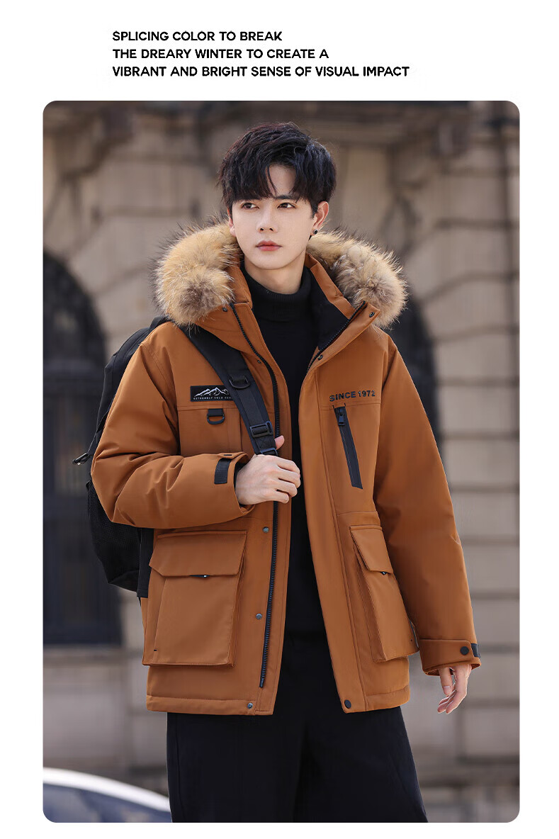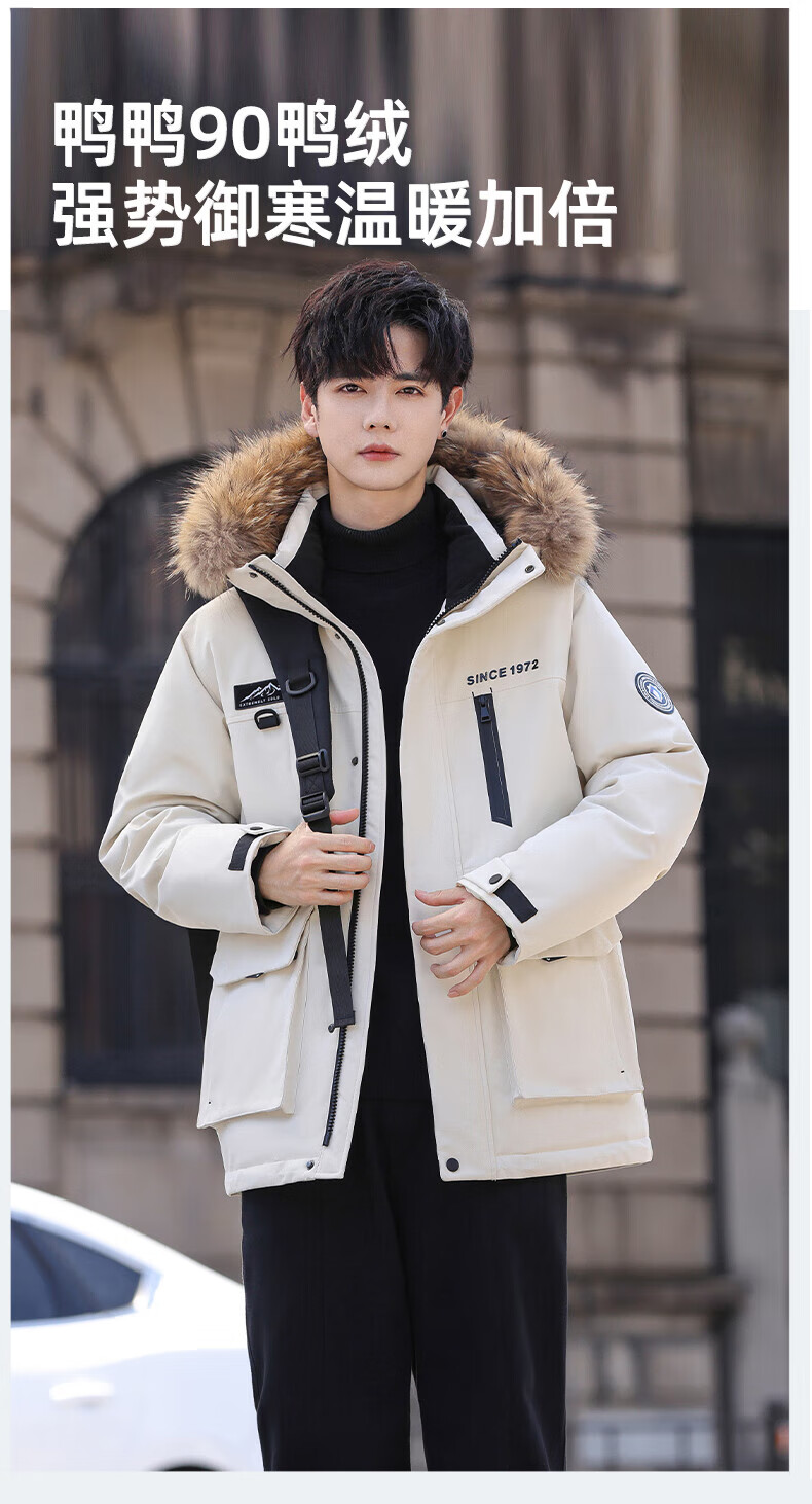 鸭鸭梓渝同款羽绒服男士短款2025冬季新款连帽加厚户外貉子毛领外套DY 中国红色 L 175/92A