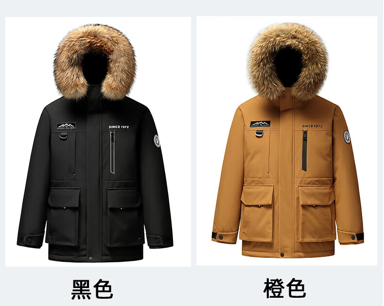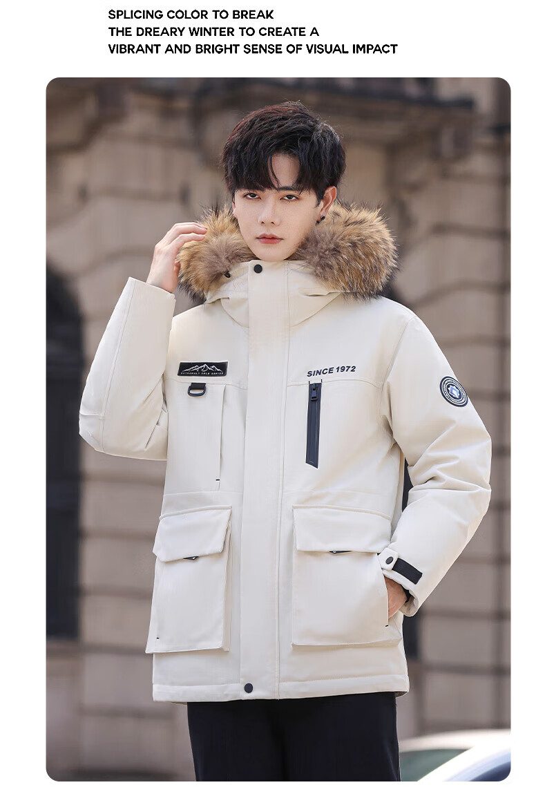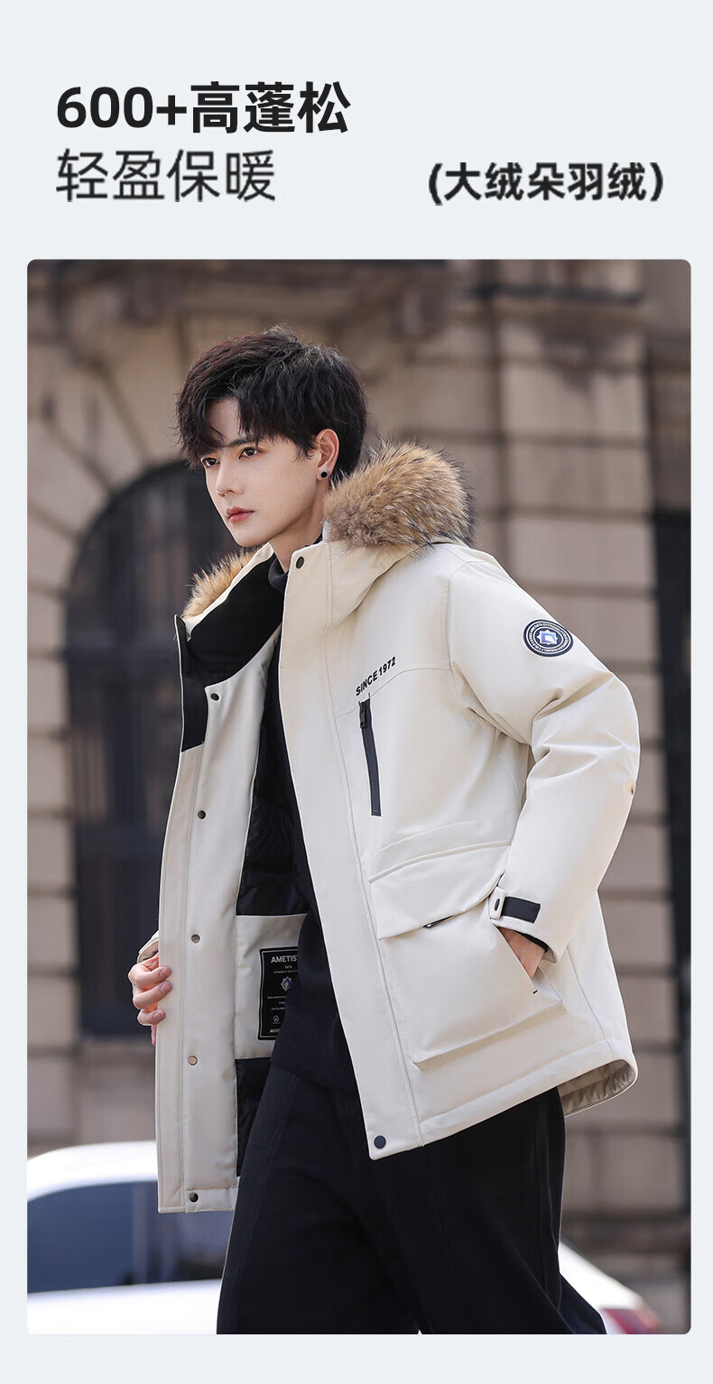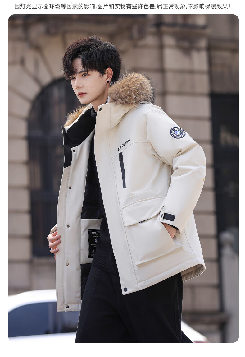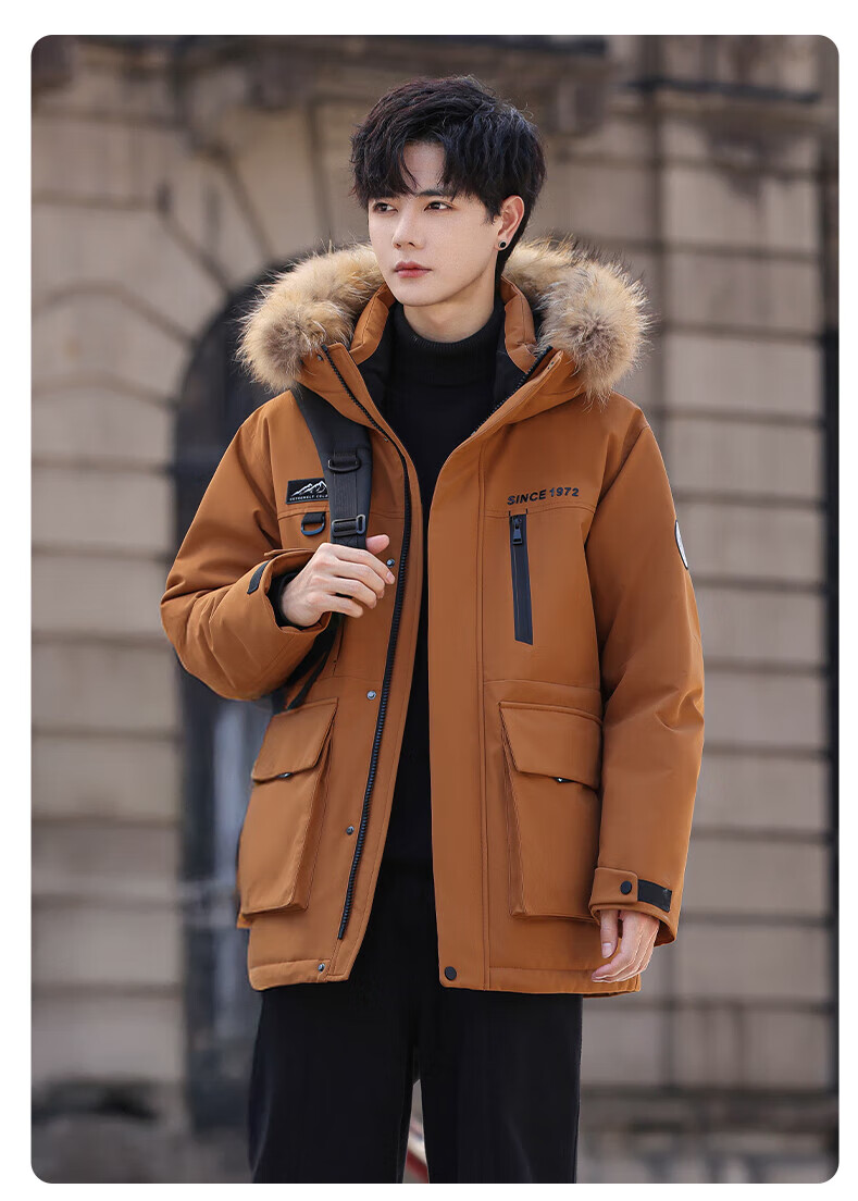鸭鸭梓渝同款羽绒服男士短款2025冬季新款连帽加厚户外貉子毛领外套DY 中国红色 L 175/92A