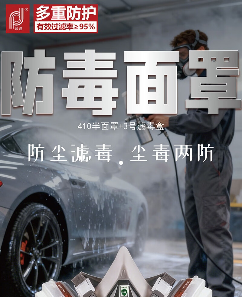 普达防毒面具活性炭口罩防粉尘/甲苯/荃/醇有机气体喷漆印刷防毒面罩FD-410配3号滤毒盒