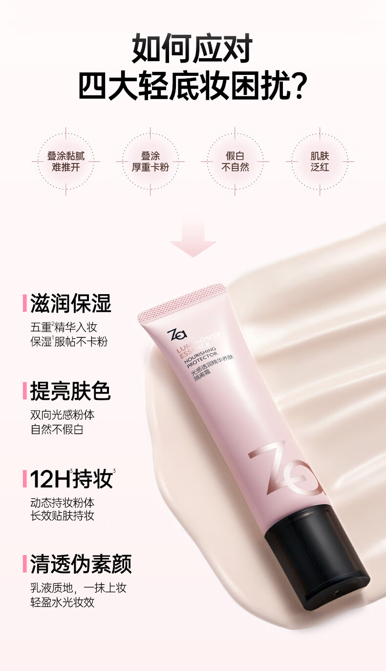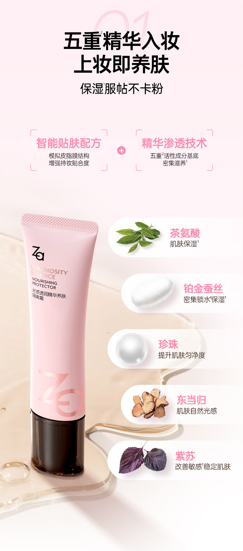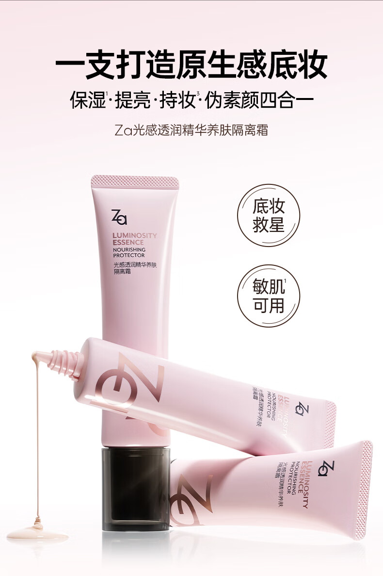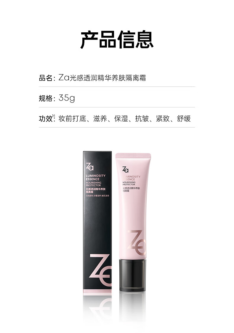姬芮(ZA)光感透润精华养肤妆前乳 素颜霜隔离 提亮滋润妆前打底隐匿毛孔 35g