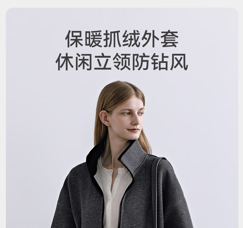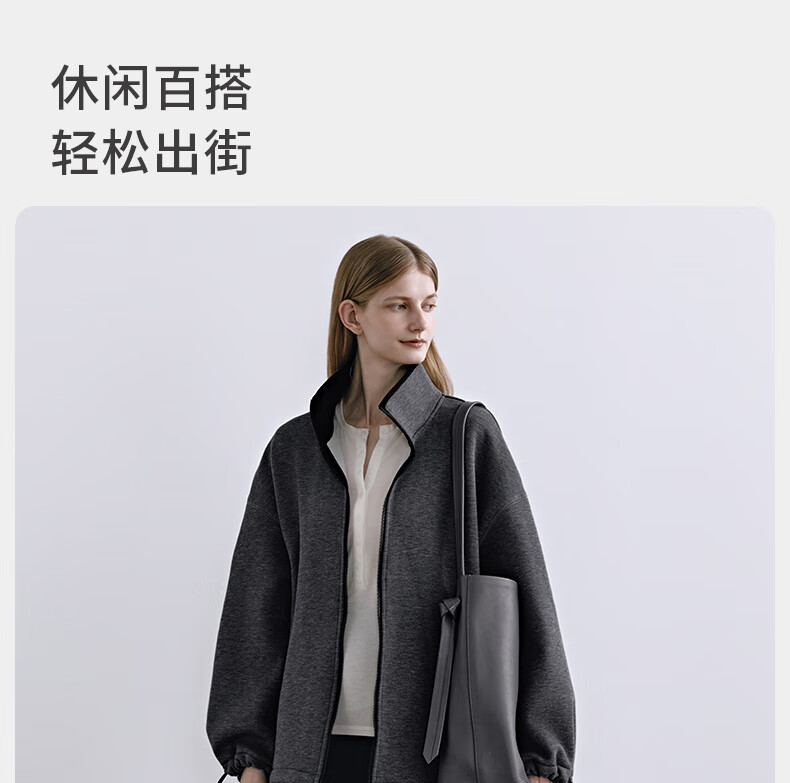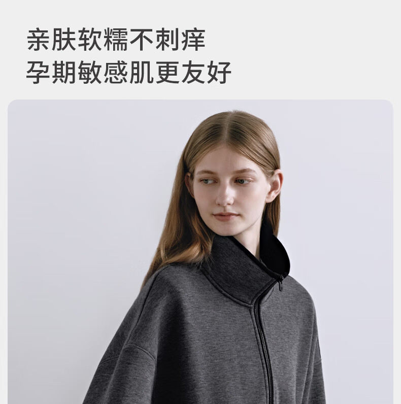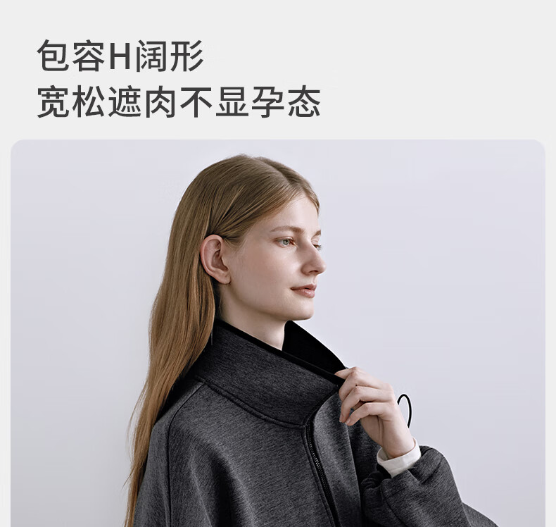 嫚熙(EMXEE)孕妇外套轻盈保暖抓绒立领开衫宽松不显孕肚秋装通勤2025新款 深花灰 M