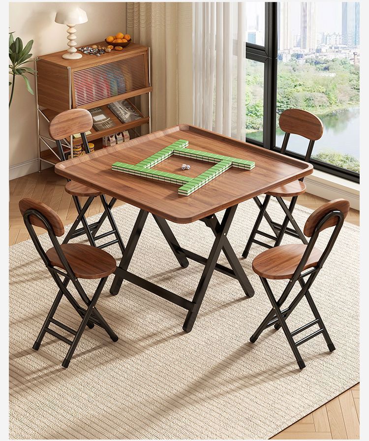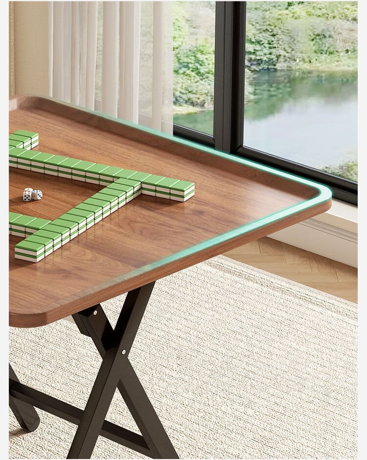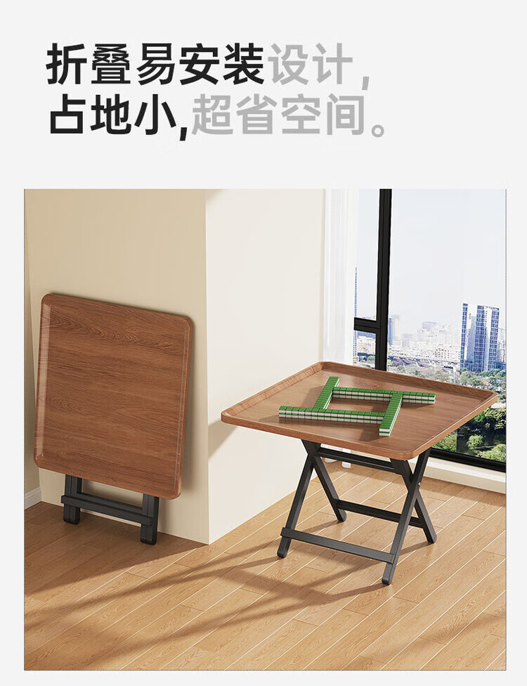 弘星隆麻将桌家用可折叠手搓型多功能手动棋牌桌简易吃饭餐桌方形麻雀台 胡桃木纹【60*55矮桌】 麻将桌餐桌两用折叠桌--安装简单