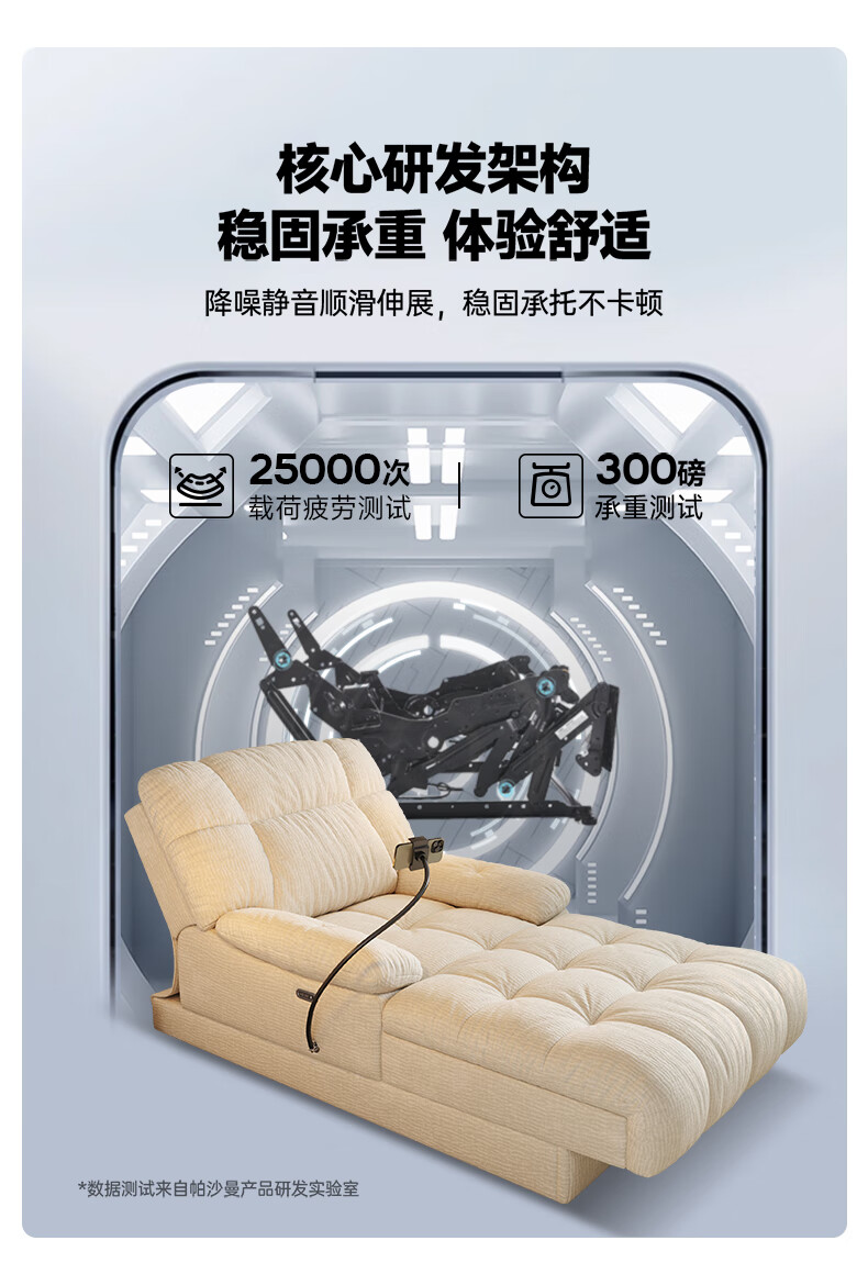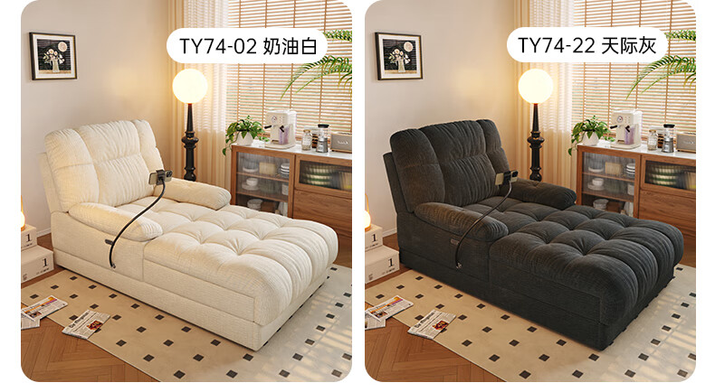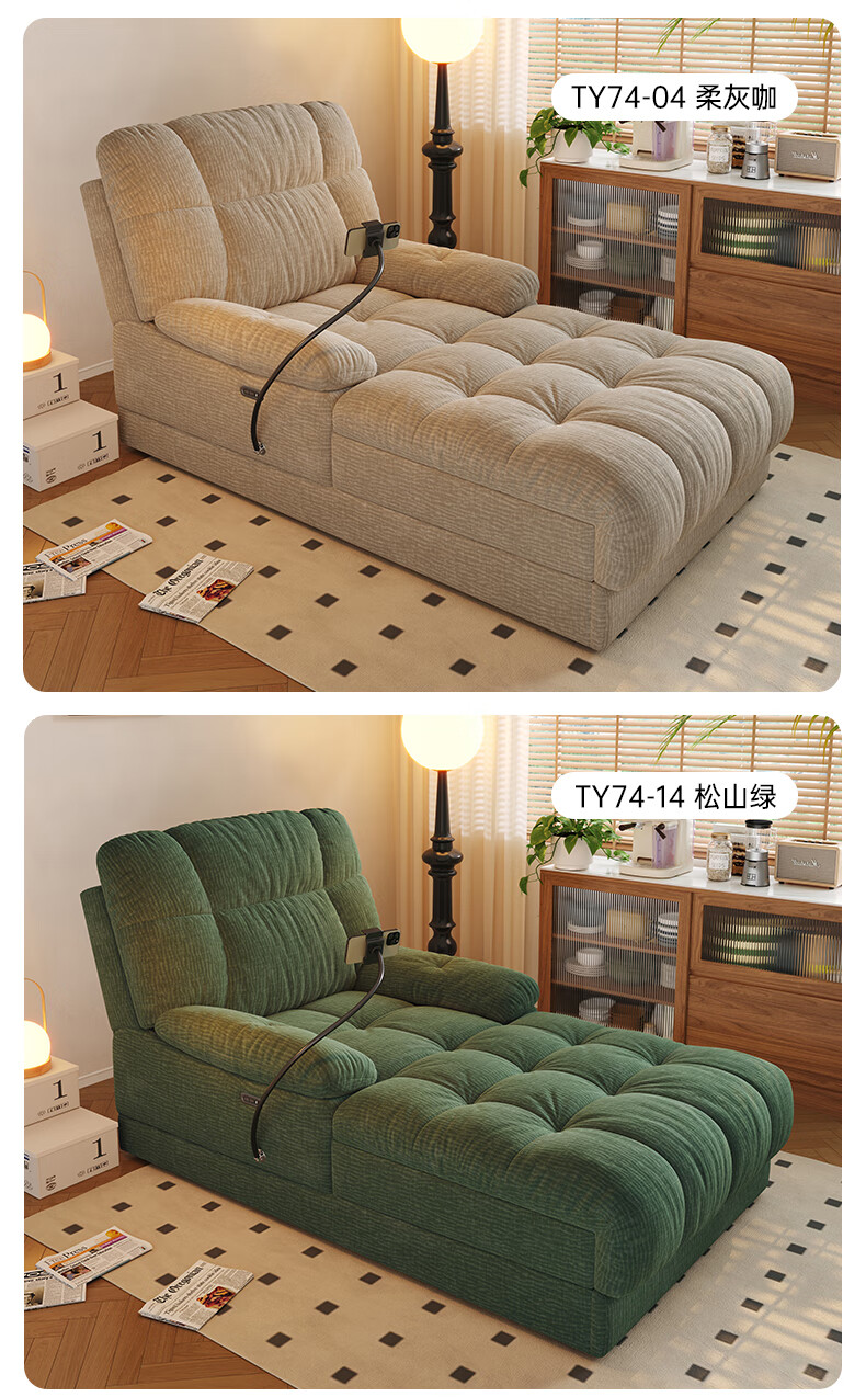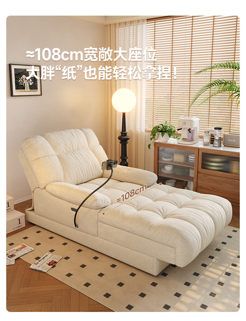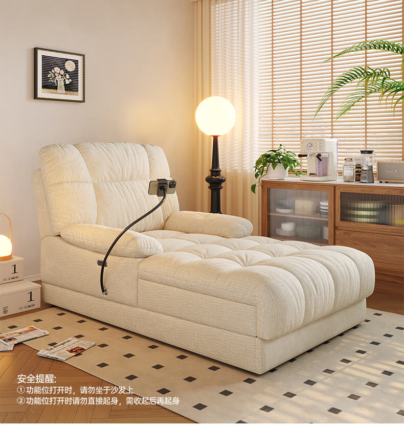 帕沙曼电动沙发椅客厅阳台伸缩两用单人沙发床人类狗窝贵妃躺椅2892ZF 雪尼尔TY74·多功能贵妃椅 【多功能调节 自带手机支架】
