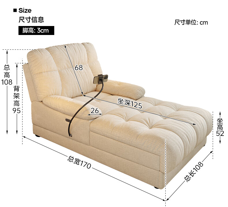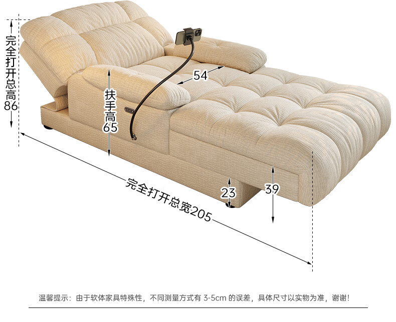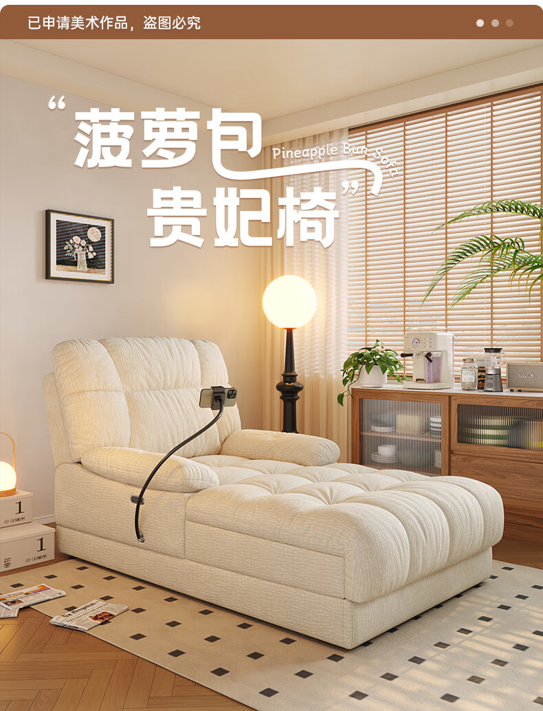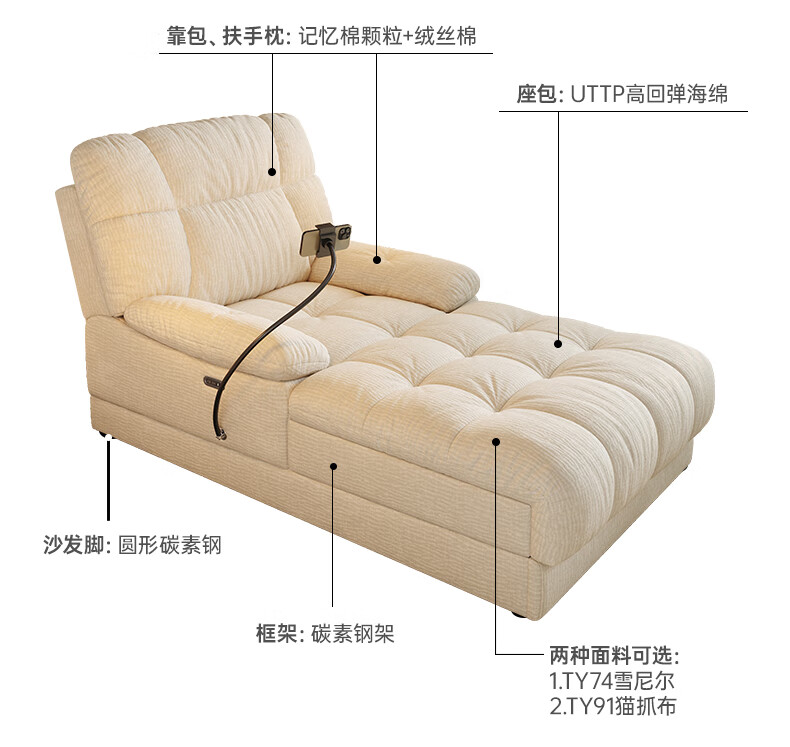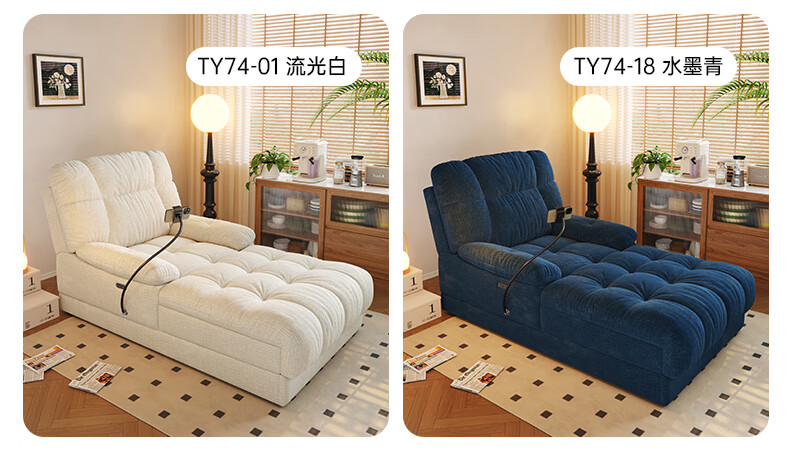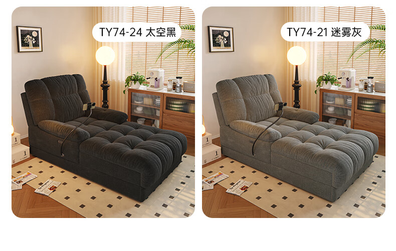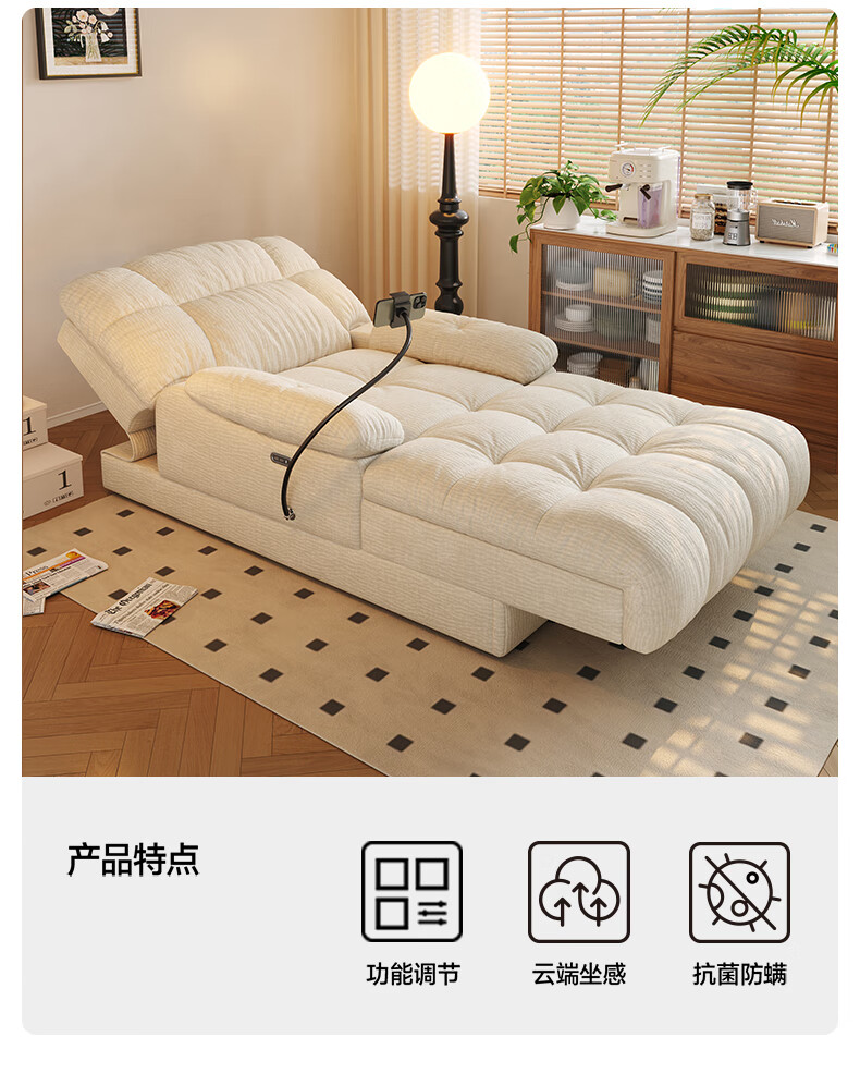 帕沙曼电动沙发椅客厅阳台伸缩两用单人沙发床人类狗窝贵妃躺椅2892ZF 雪尼尔TY74·多功能贵妃椅 【多功能调节 自带手机支架】