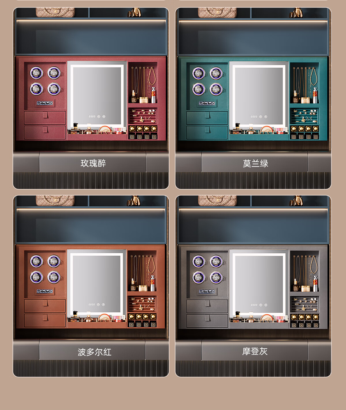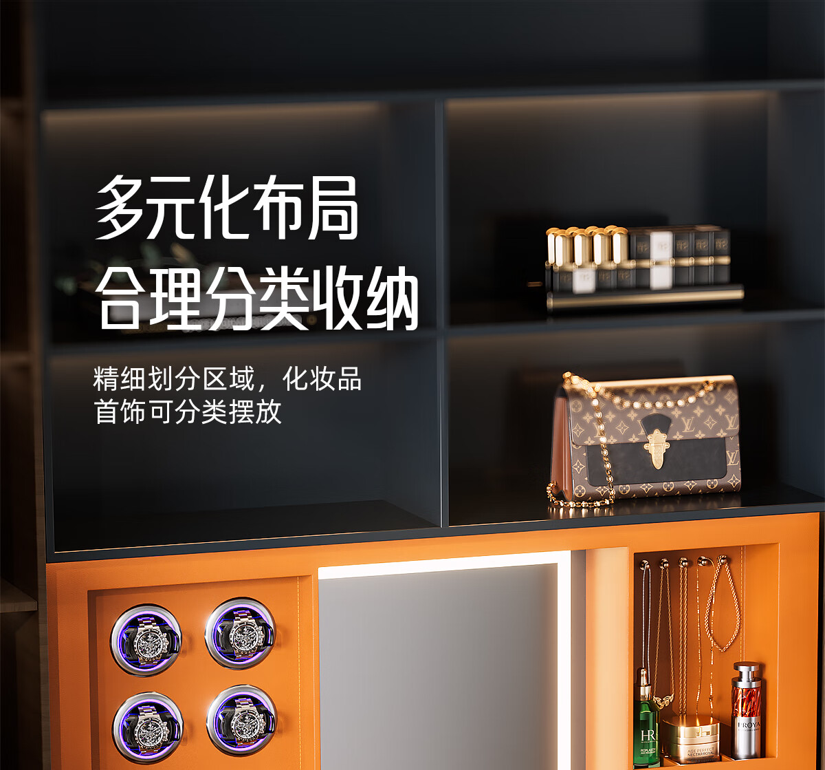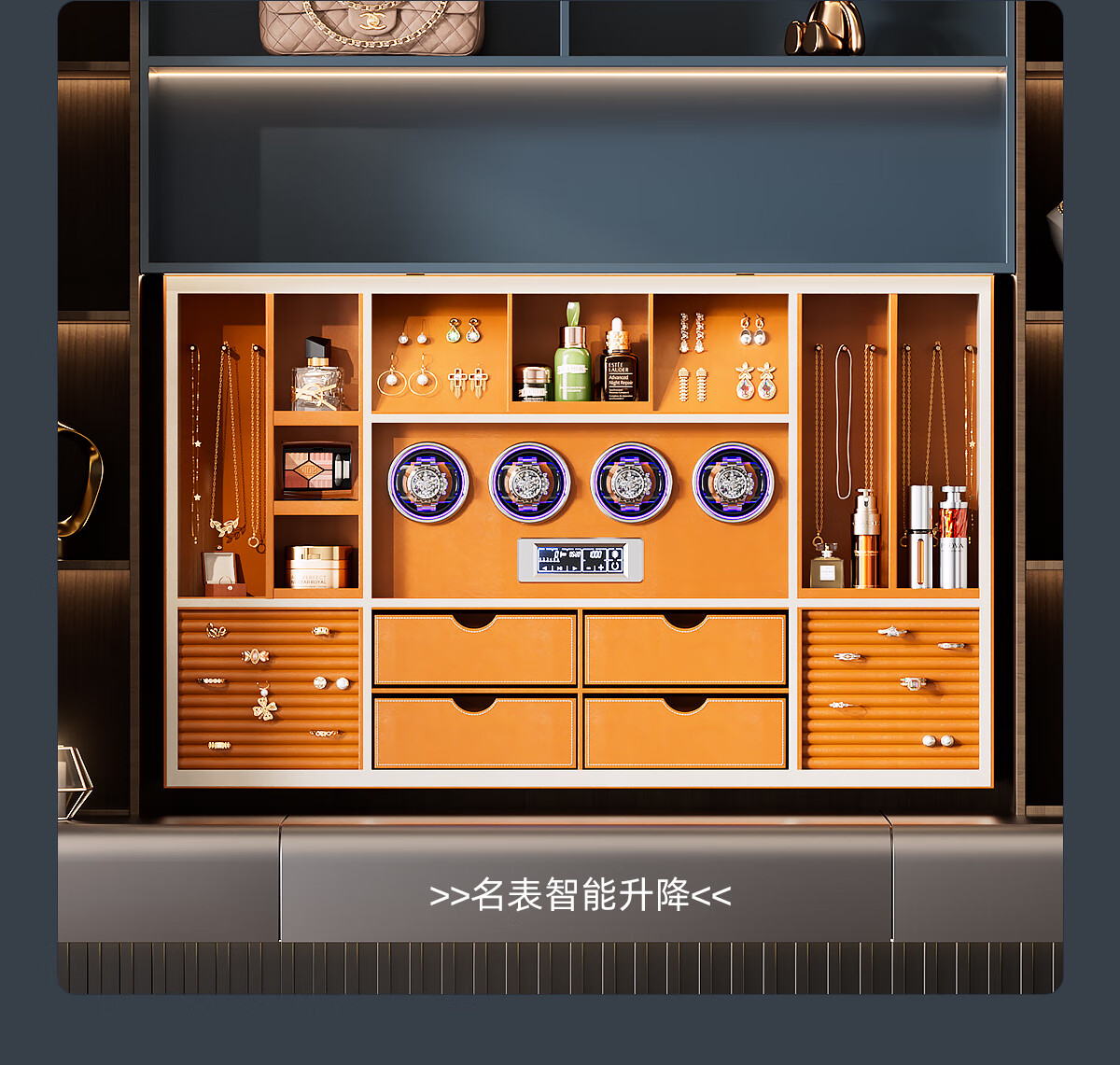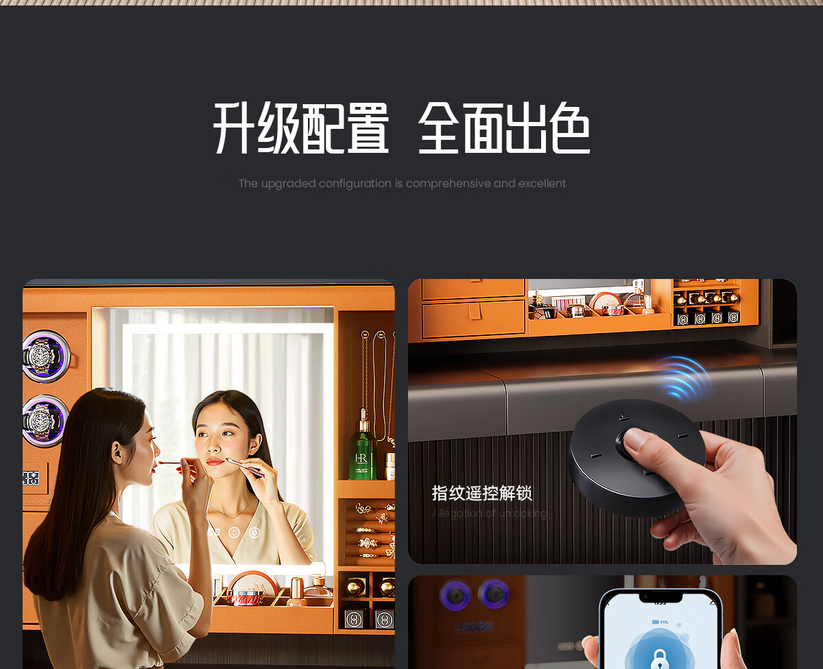德米莫衣帽间智能电动收纳升降梳妆台化妆镜子隐形摇腕表器高端皮革 慕颜1300柜-指纹遥控+涂鸦智能【15天发】