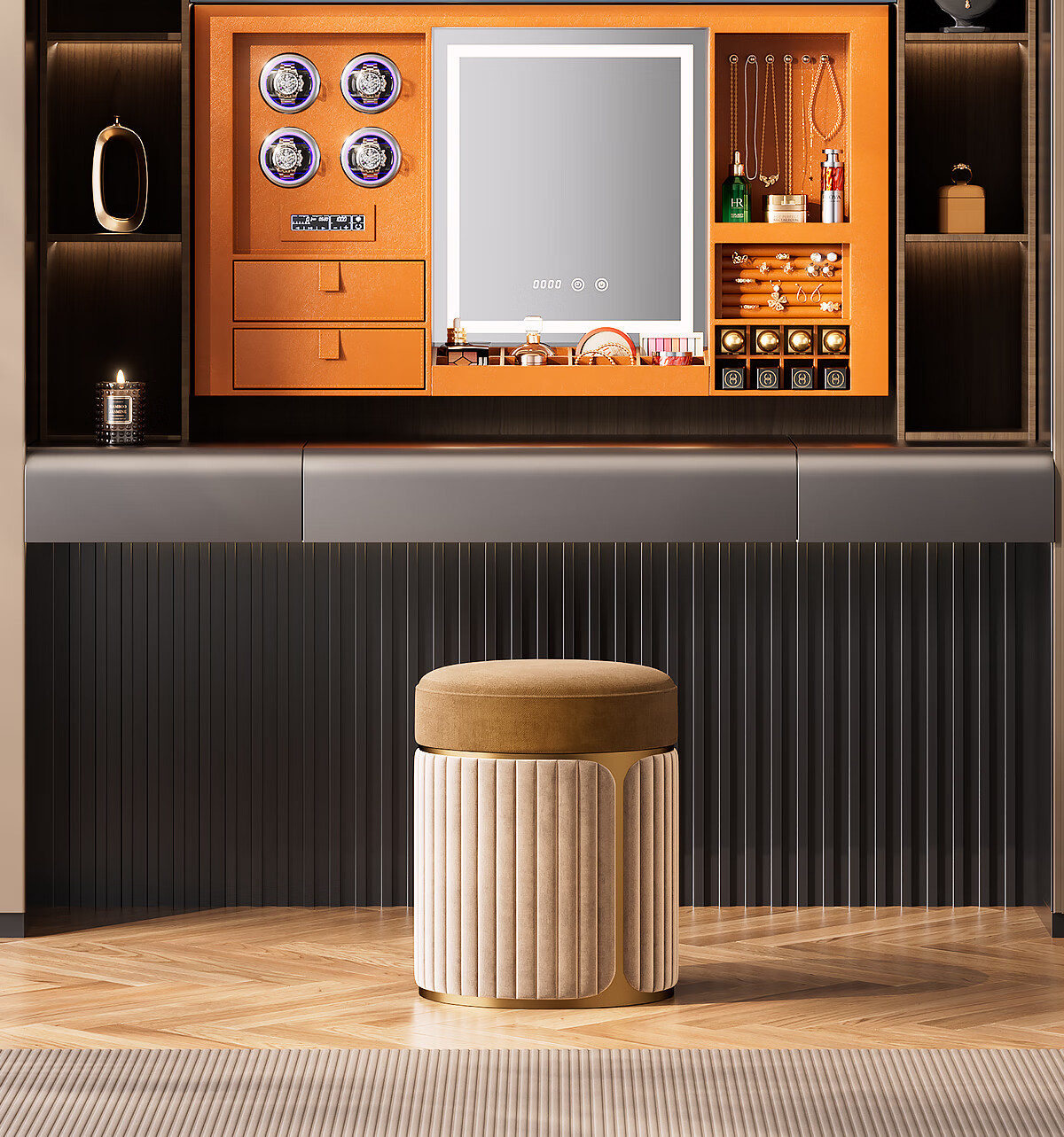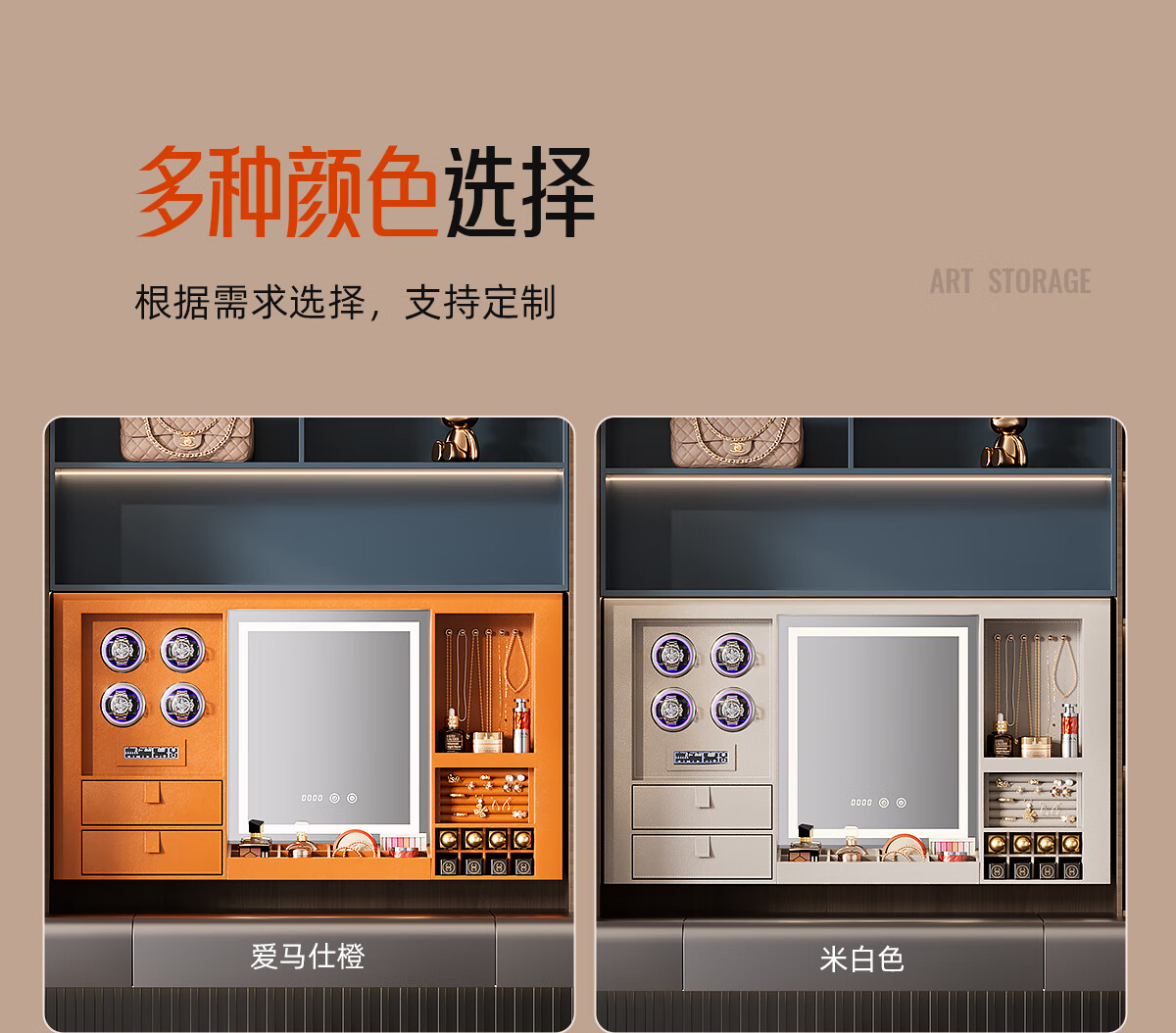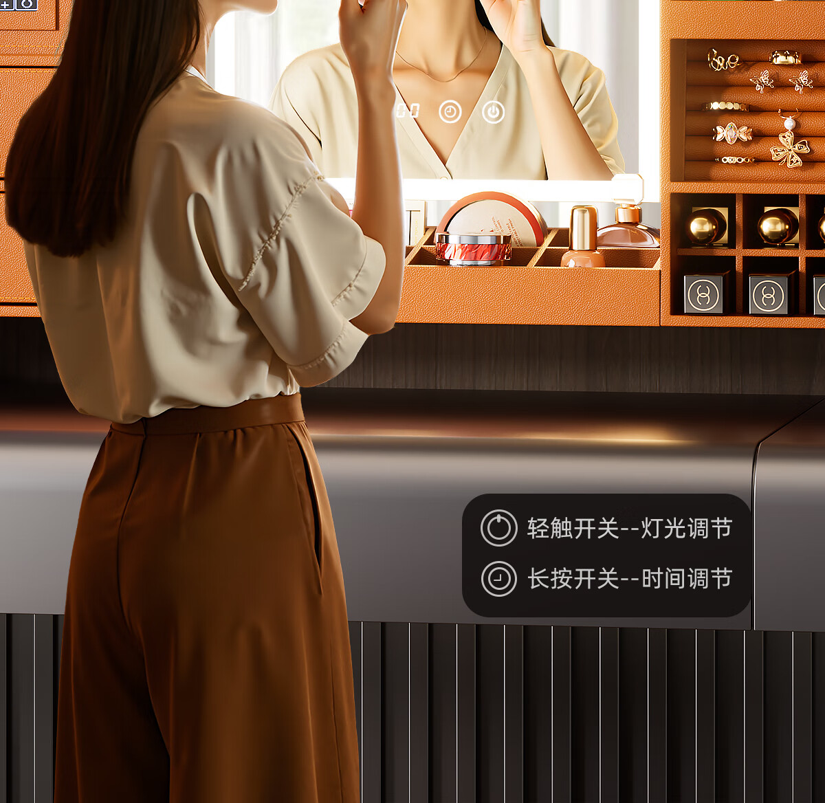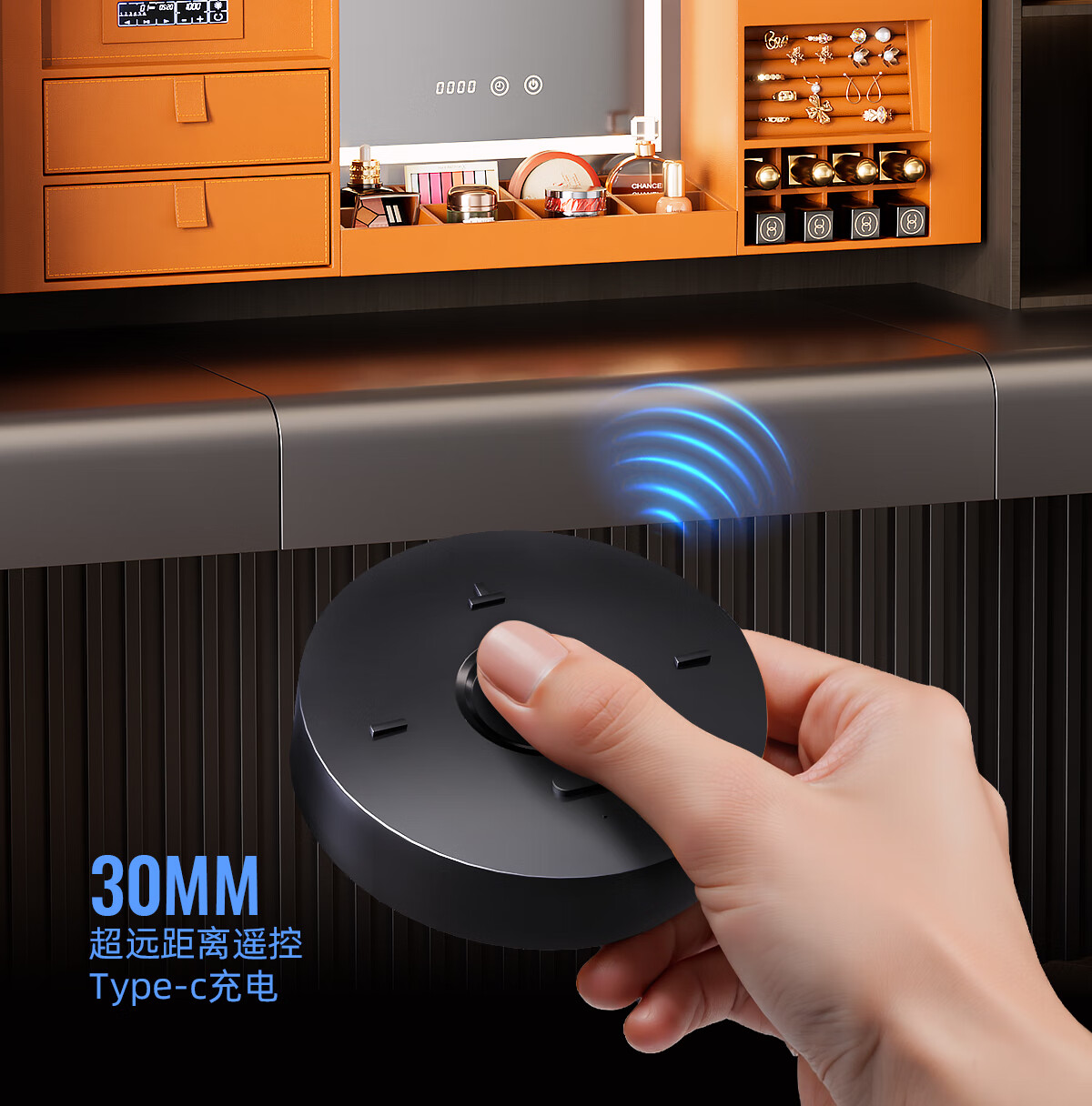 德米莫衣帽间智能电动收纳升降梳妆台化妆镜子隐形摇腕表器高端皮革 慕颜1300柜-指纹遥控+涂鸦智能【15天发】