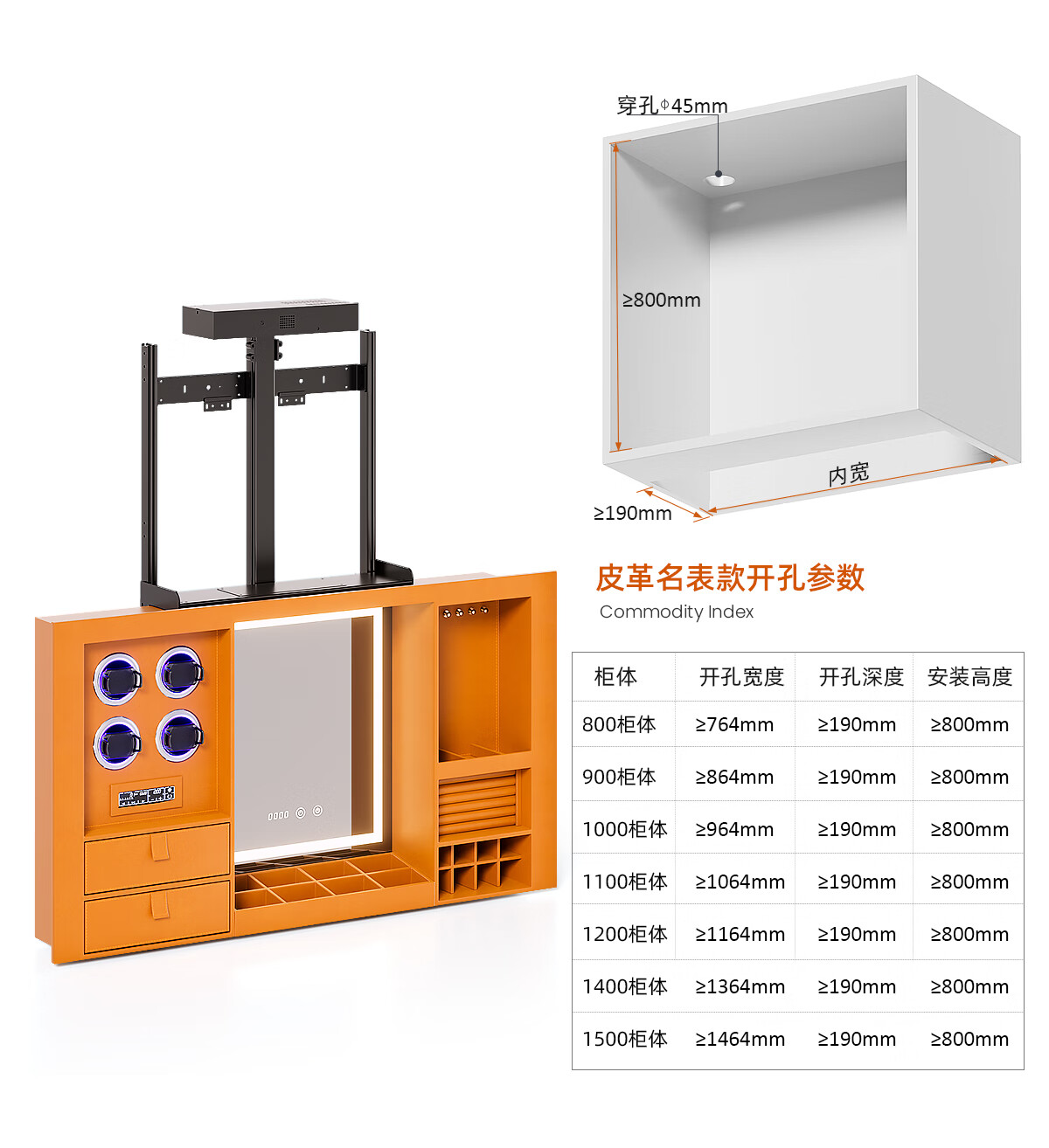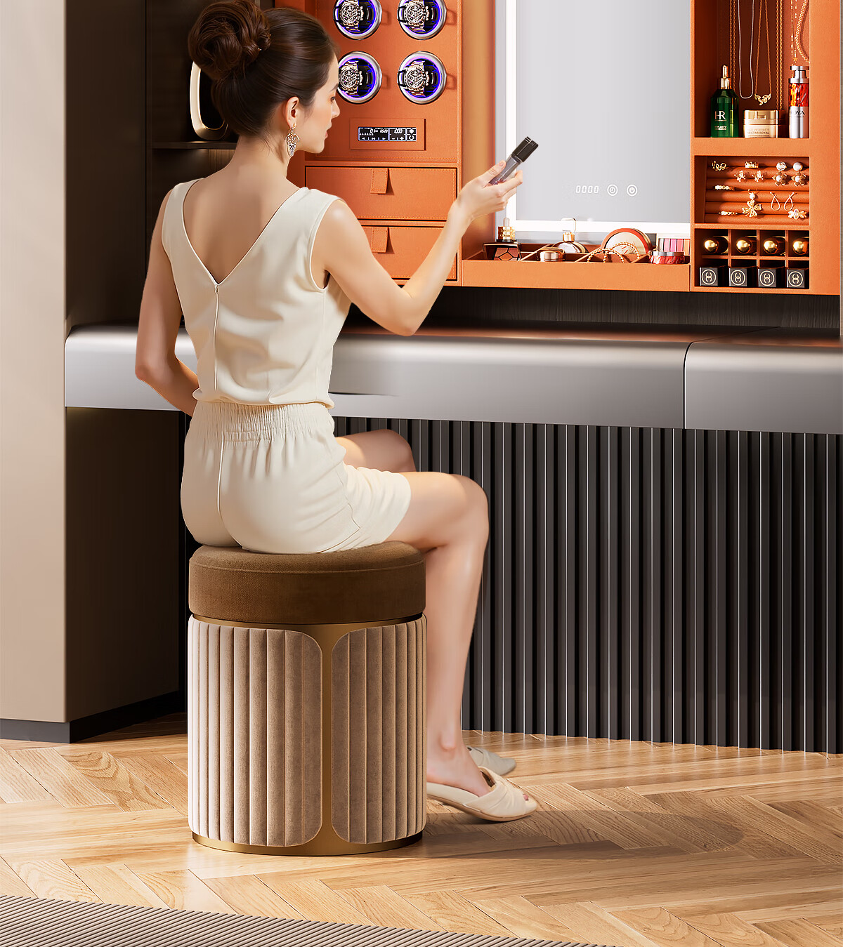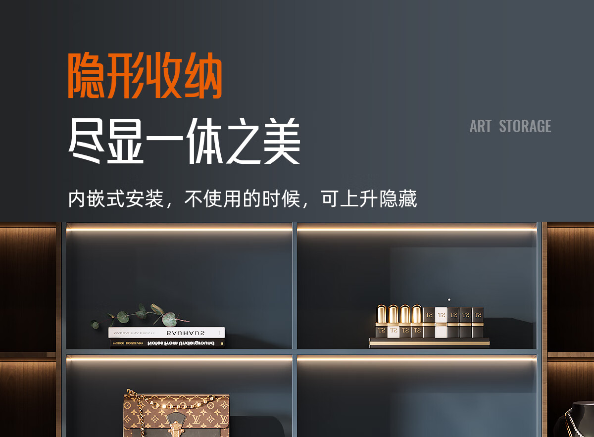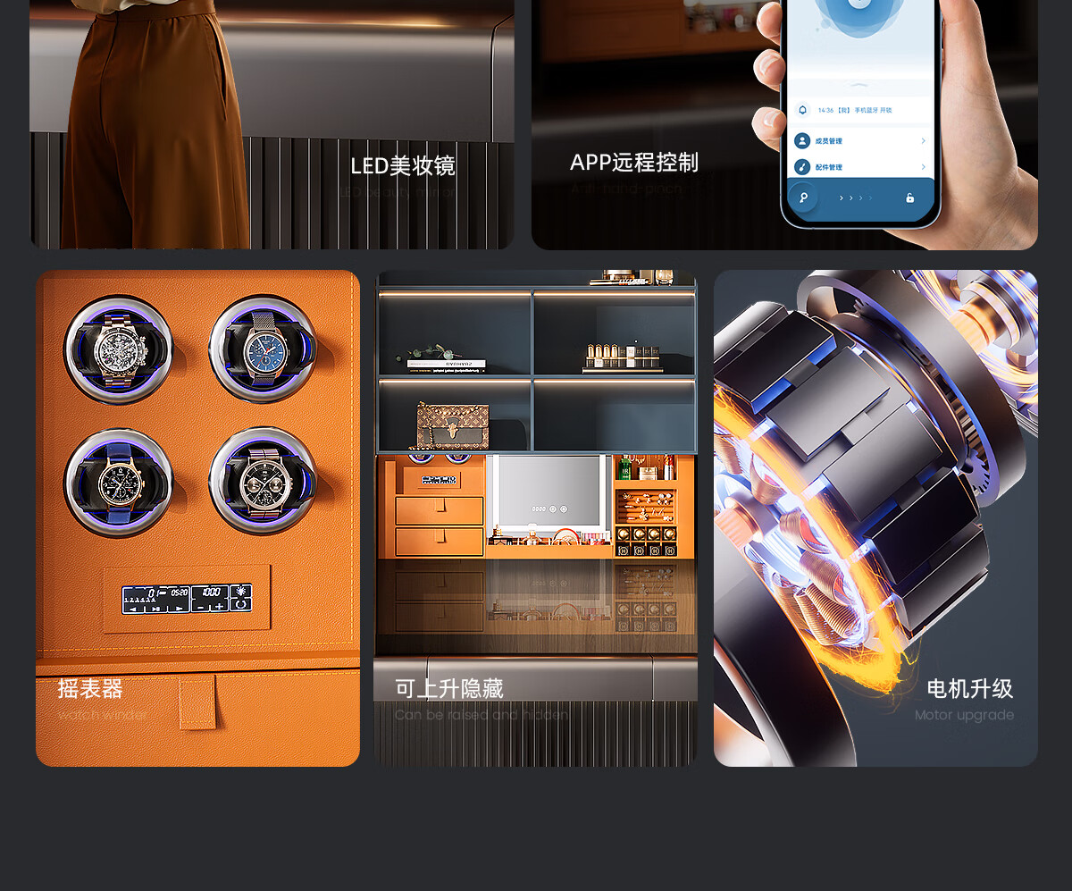 德米莫衣帽间智能电动收纳升降梳妆台化妆镜子隐形摇腕表器高端皮革 慕颜1300柜-指纹遥控+涂鸦智能【15天发】