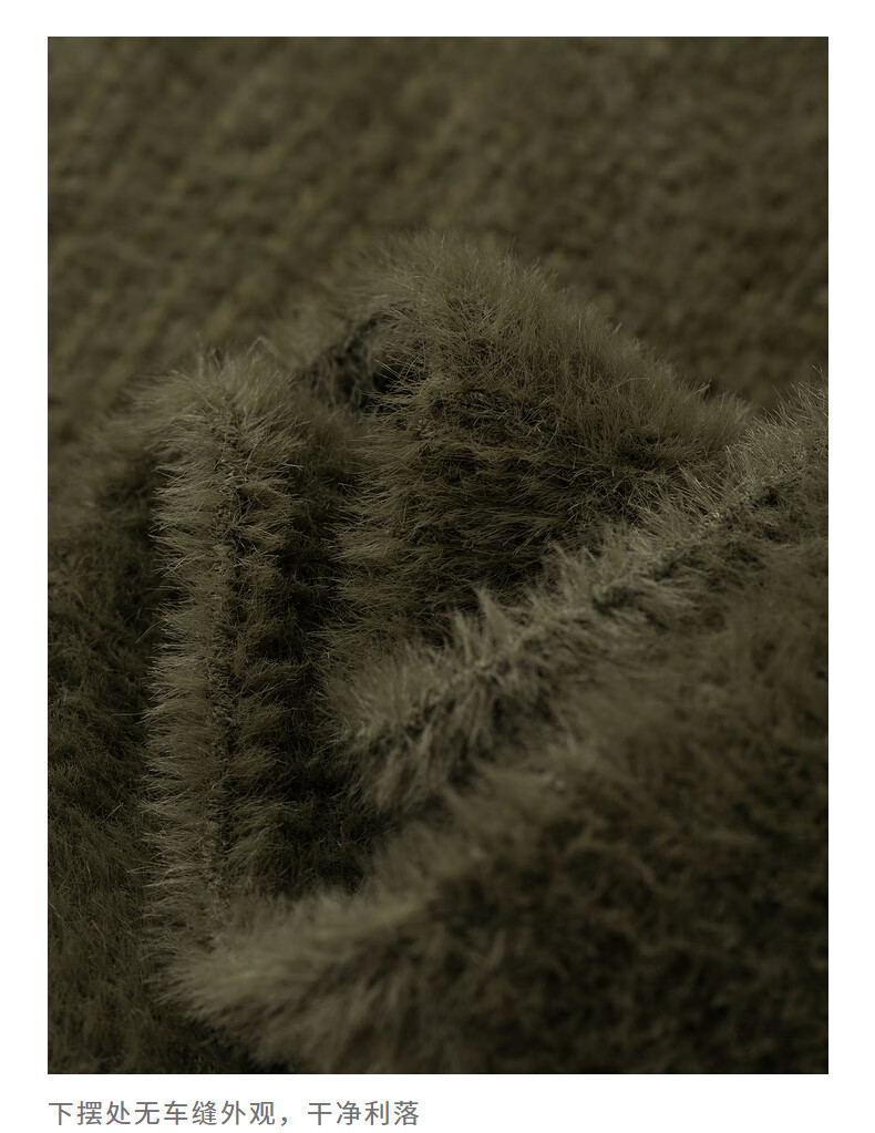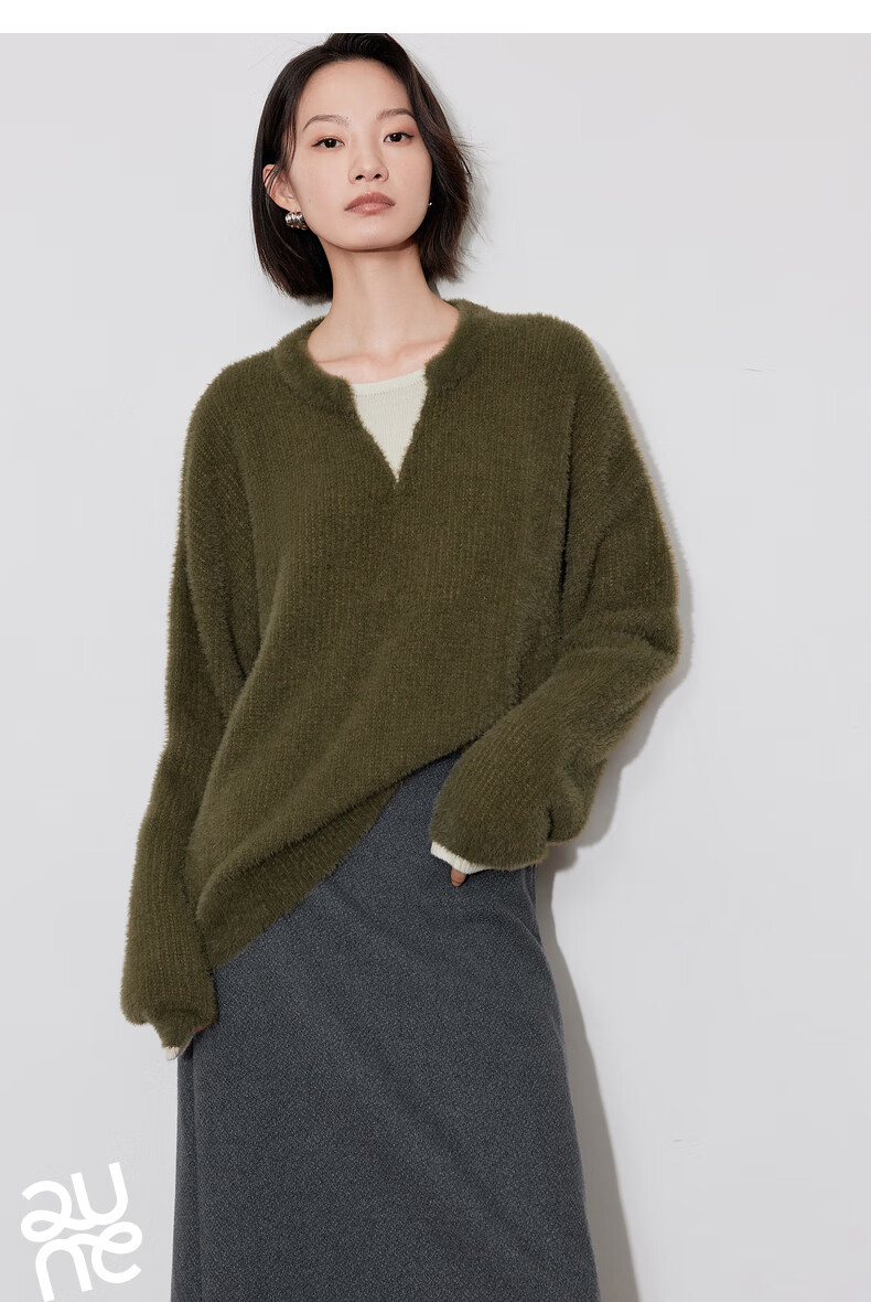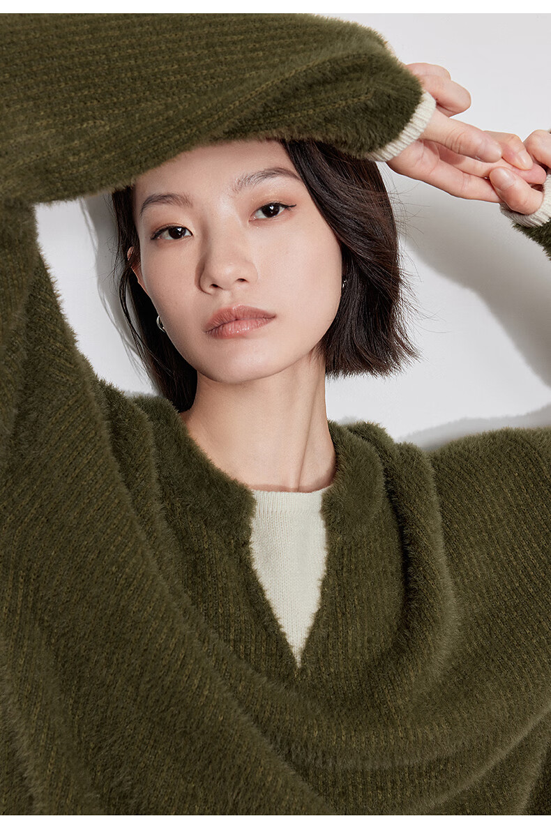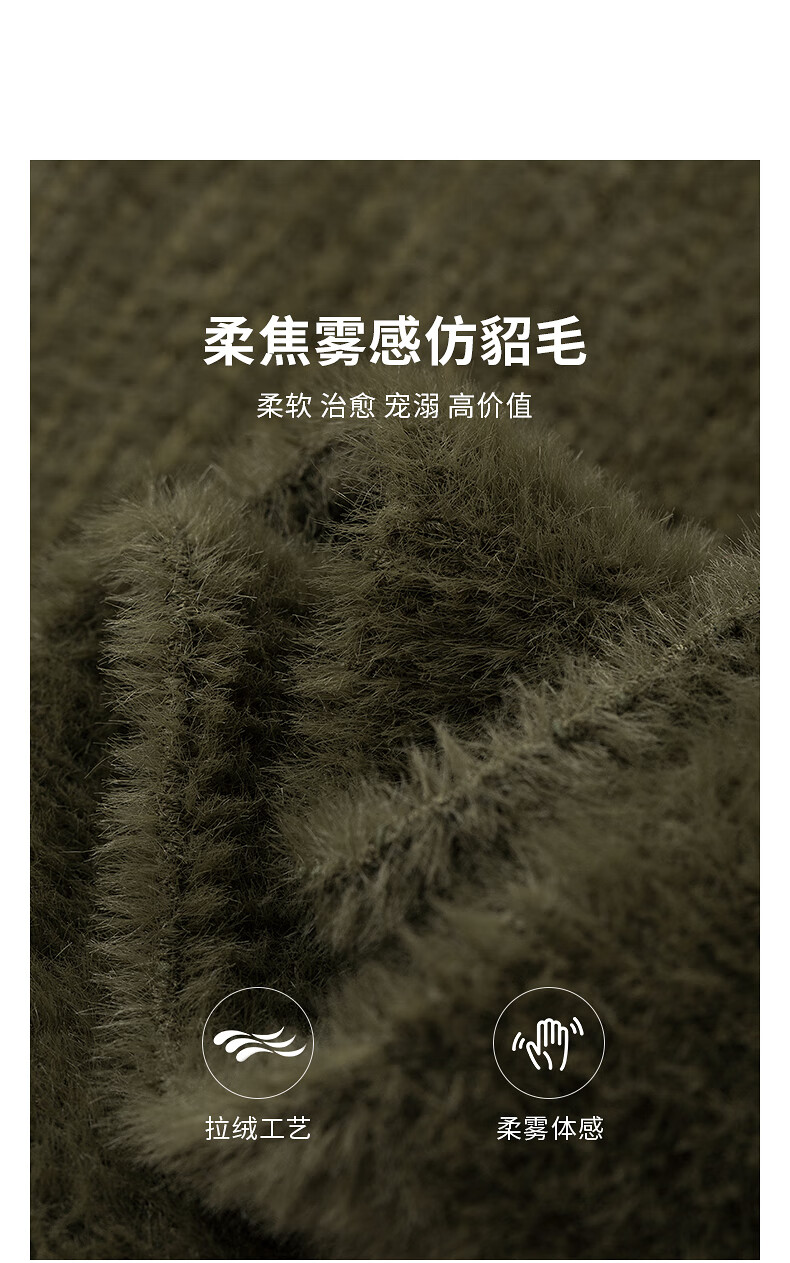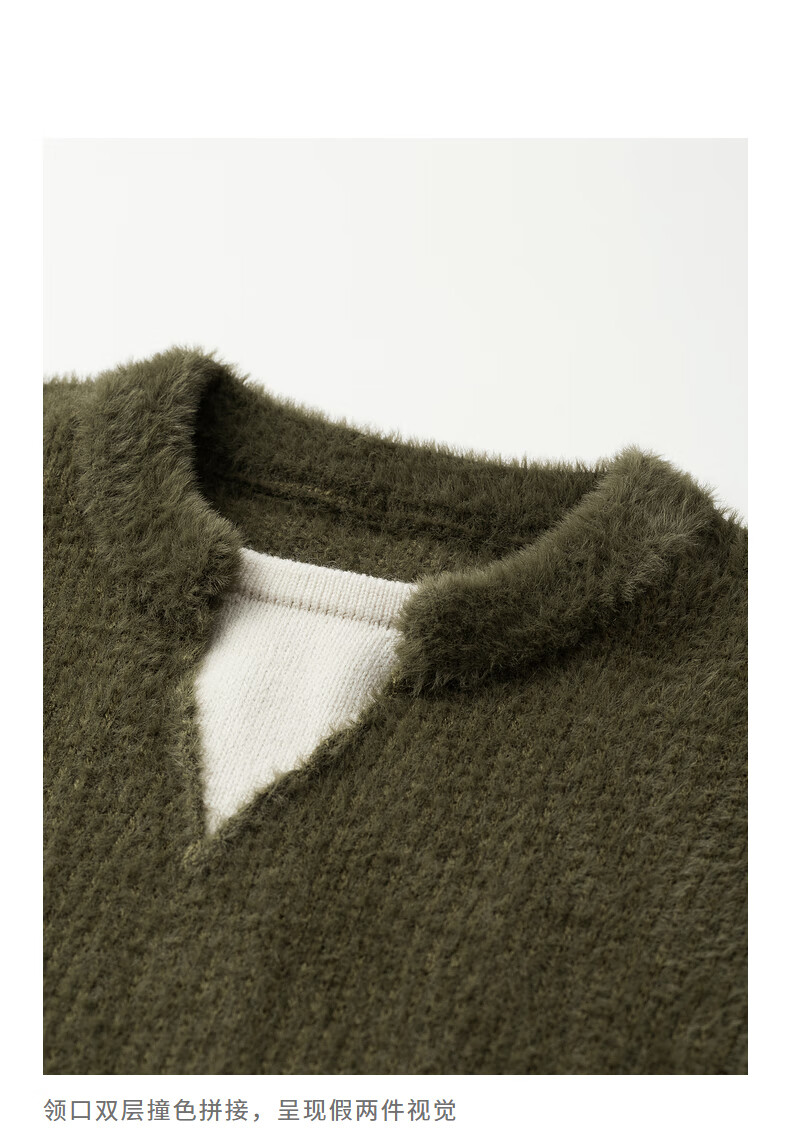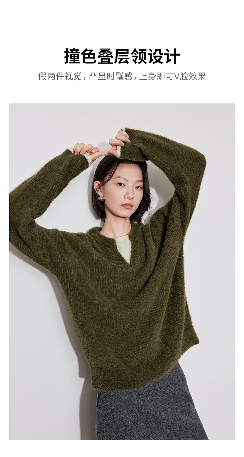 初语蓬松云朵仿貂绒毛衣女2024秋冬新款绿色假两件柔软毛织上衣 苔藓绿 M