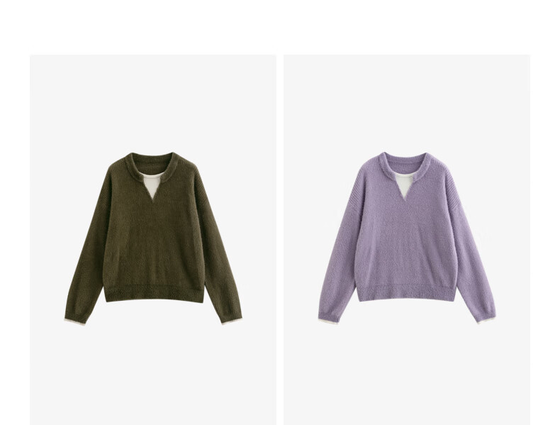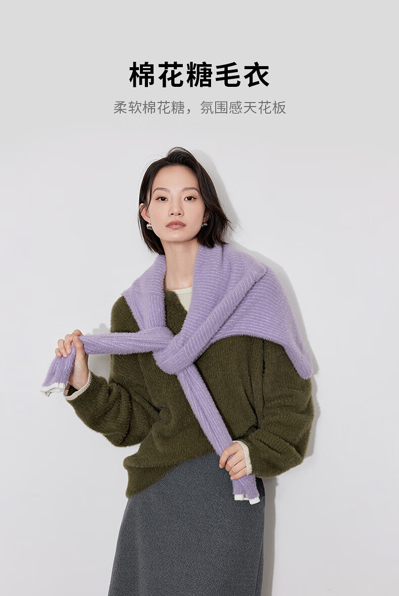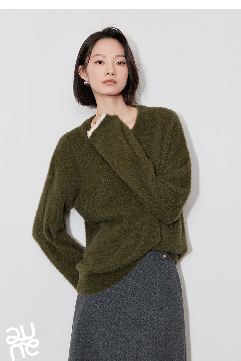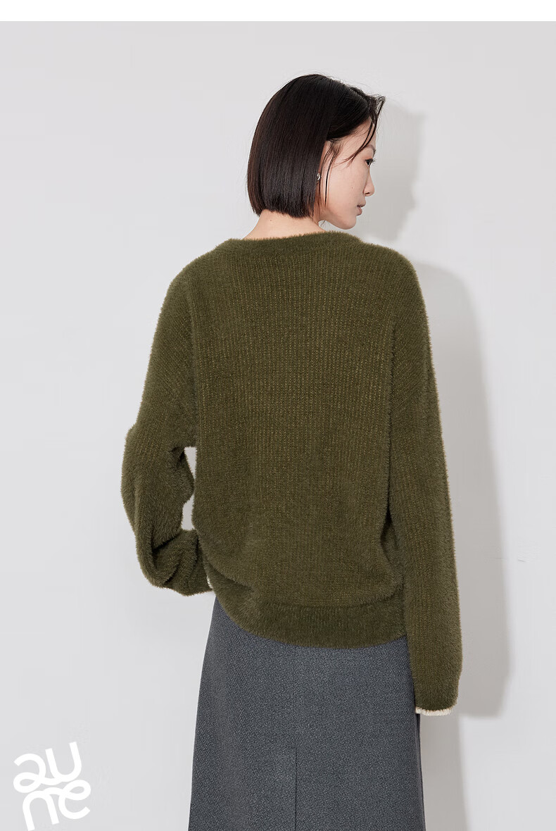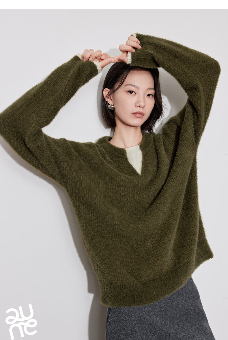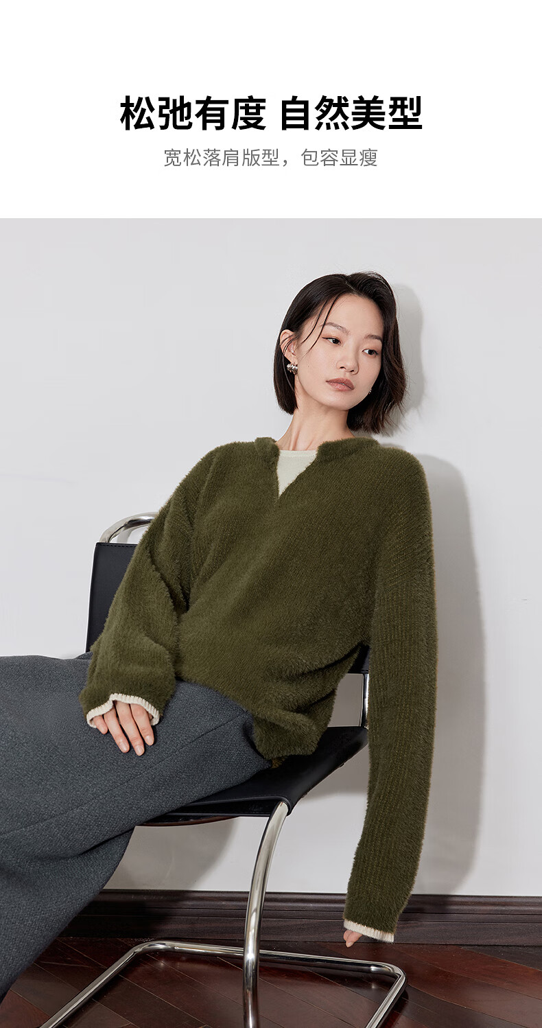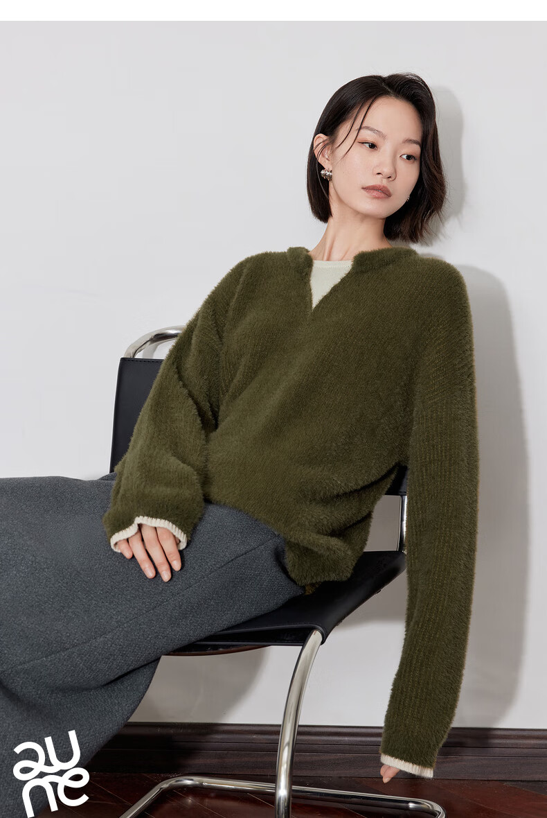 初语蓬松云朵仿貂绒毛衣女2024秋冬新款绿色假两件柔软毛织上衣 苔藓绿 M