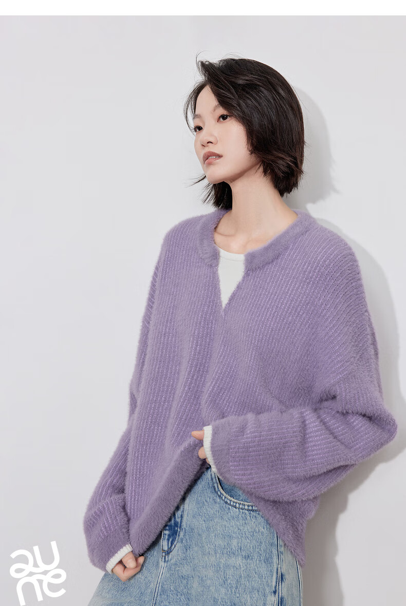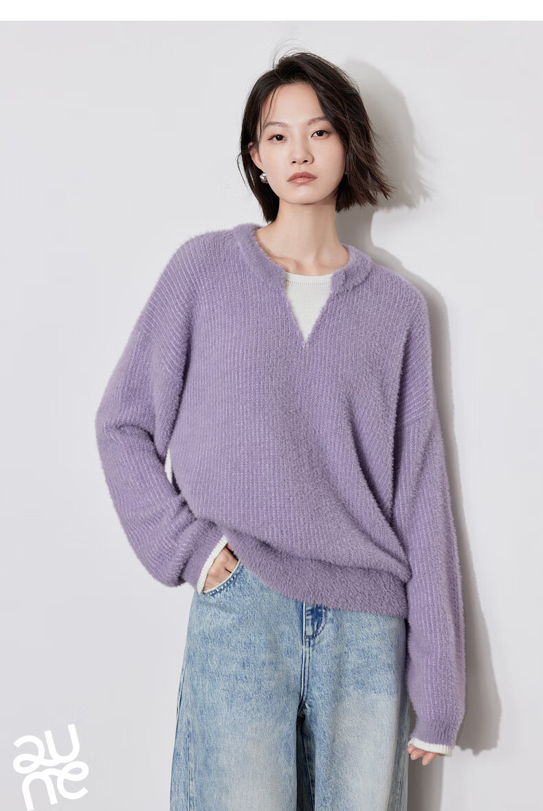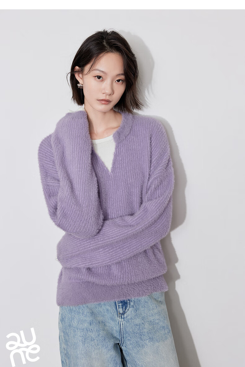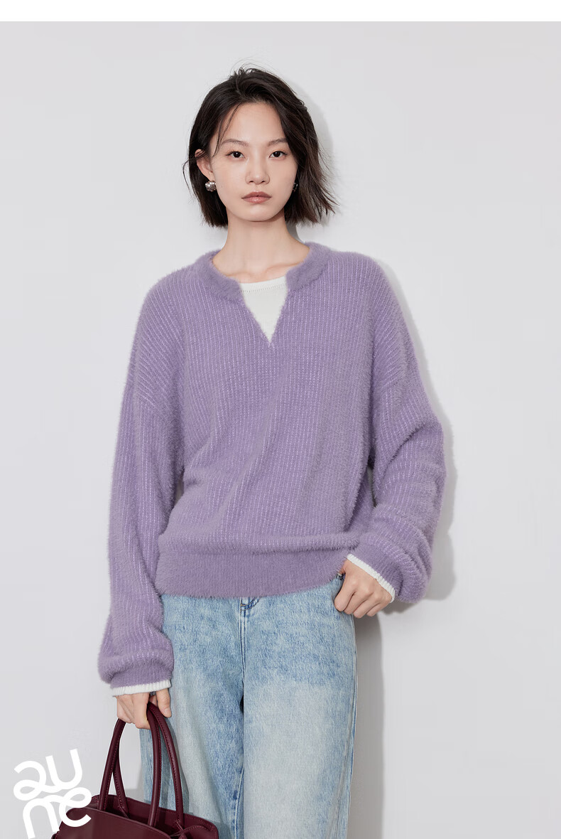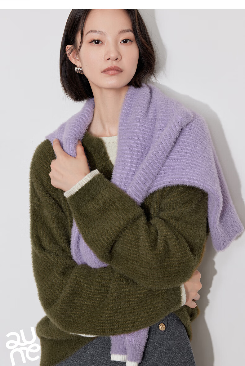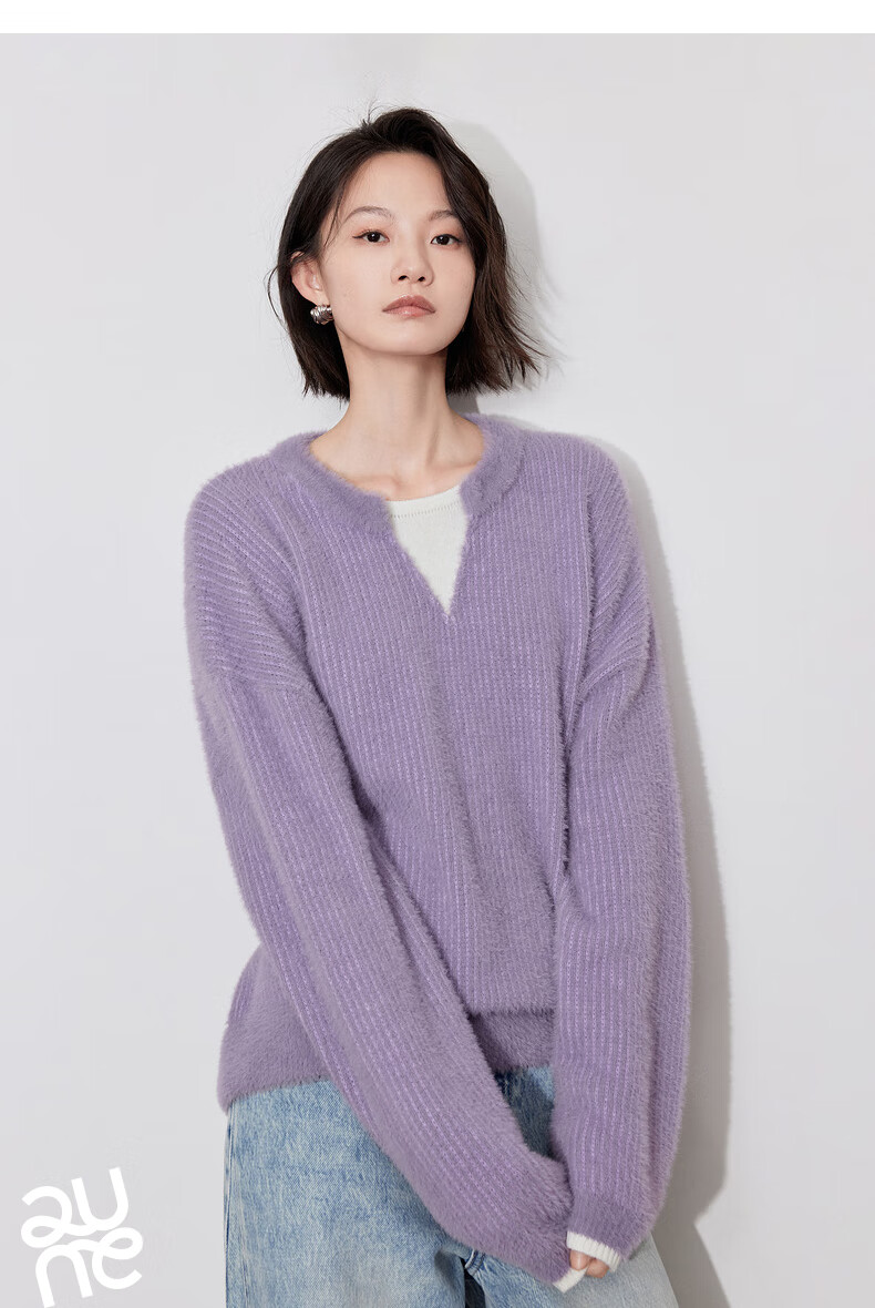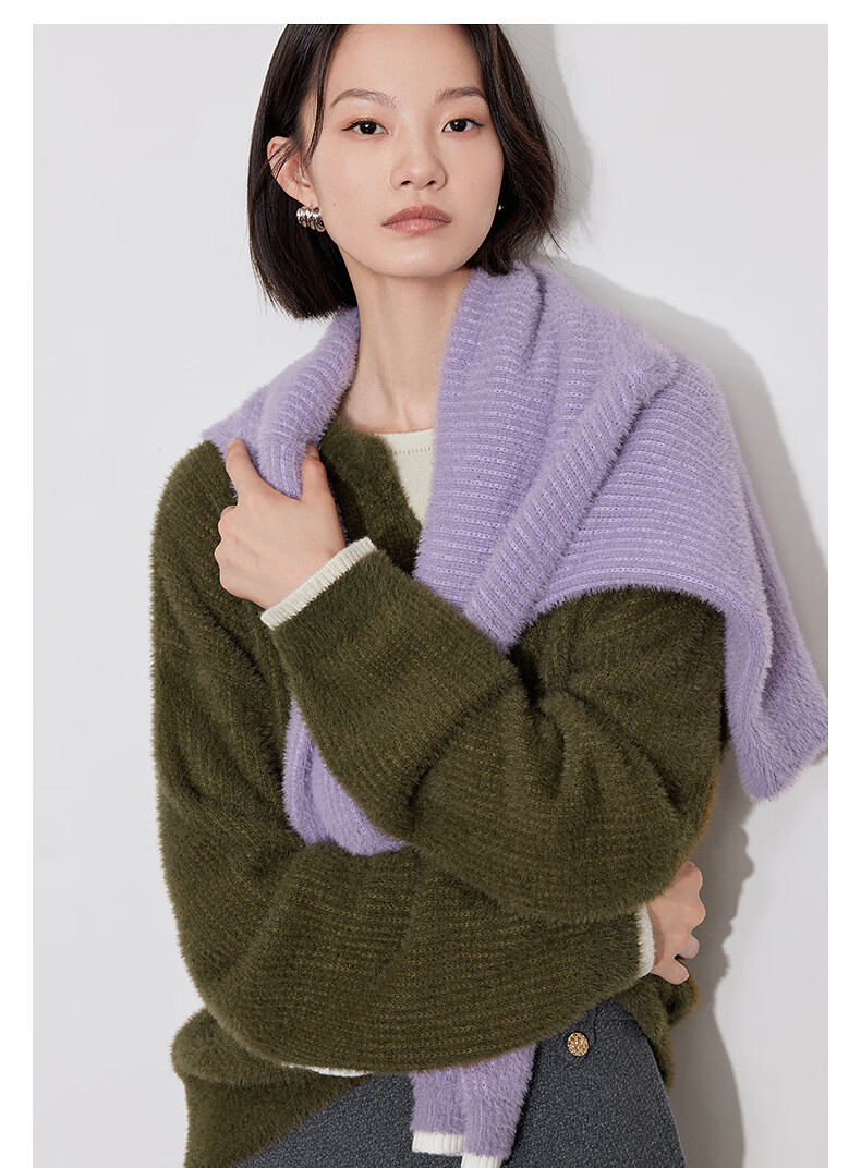初语蓬松云朵仿貂绒毛衣女2024秋冬新款绿色假两件柔软毛织上衣 苔藓绿 M
