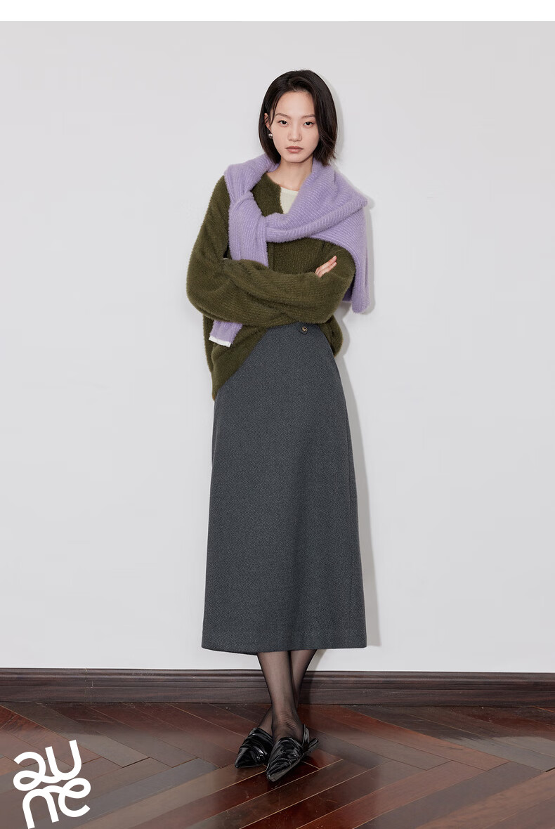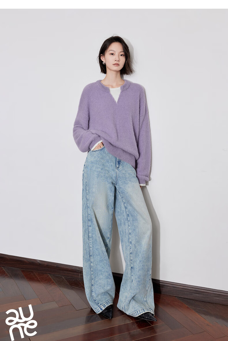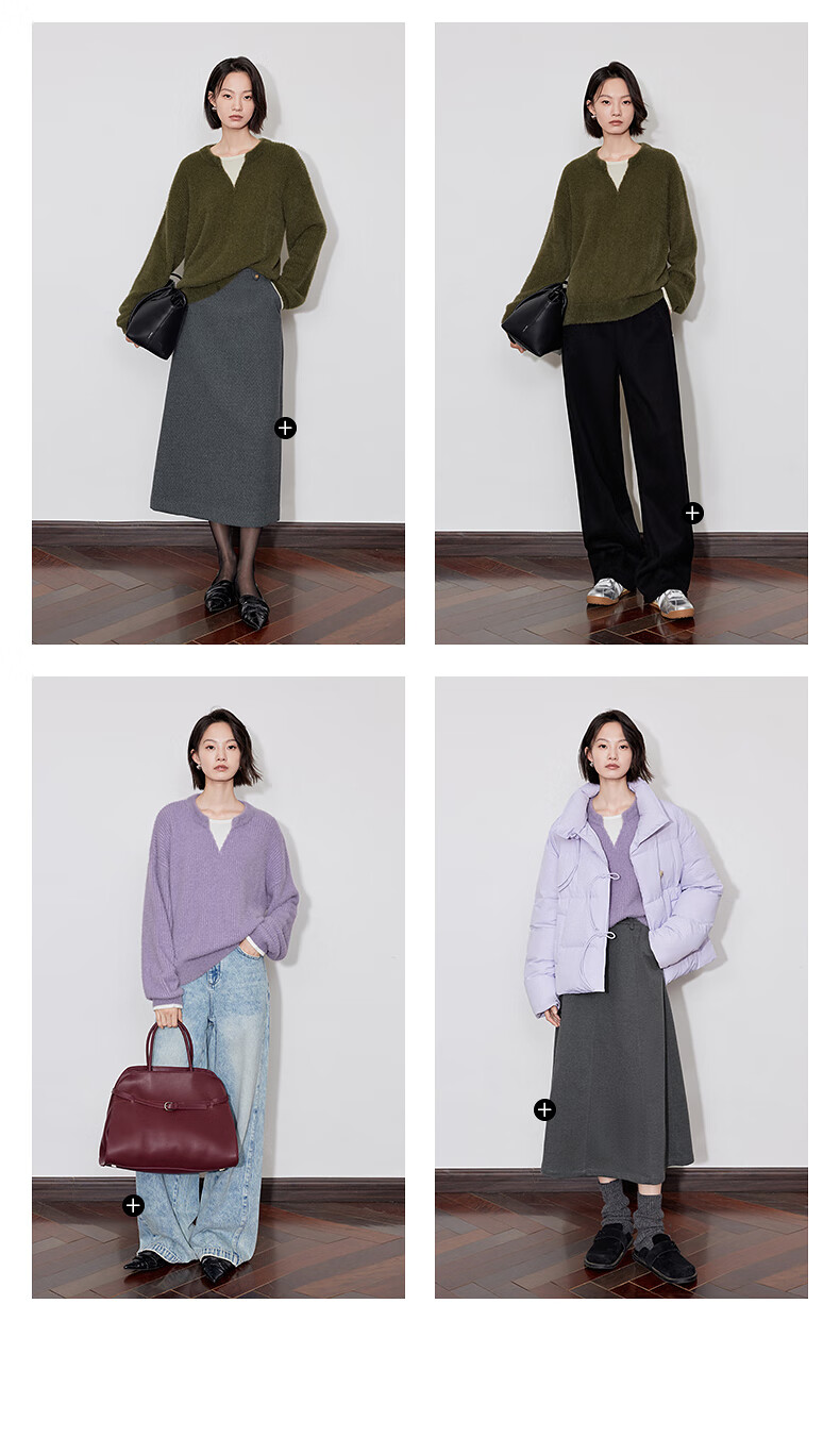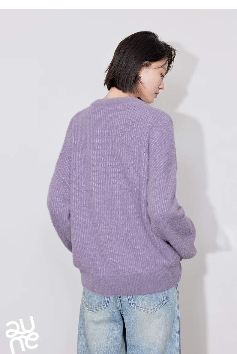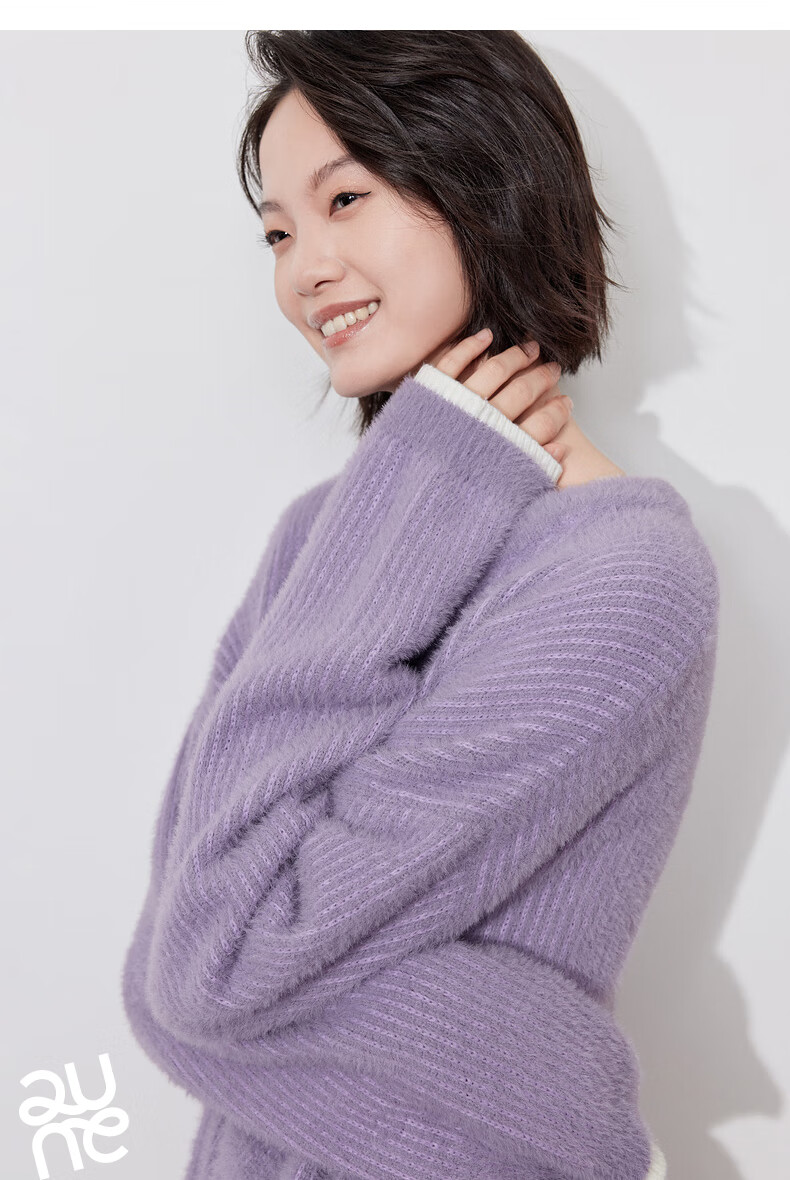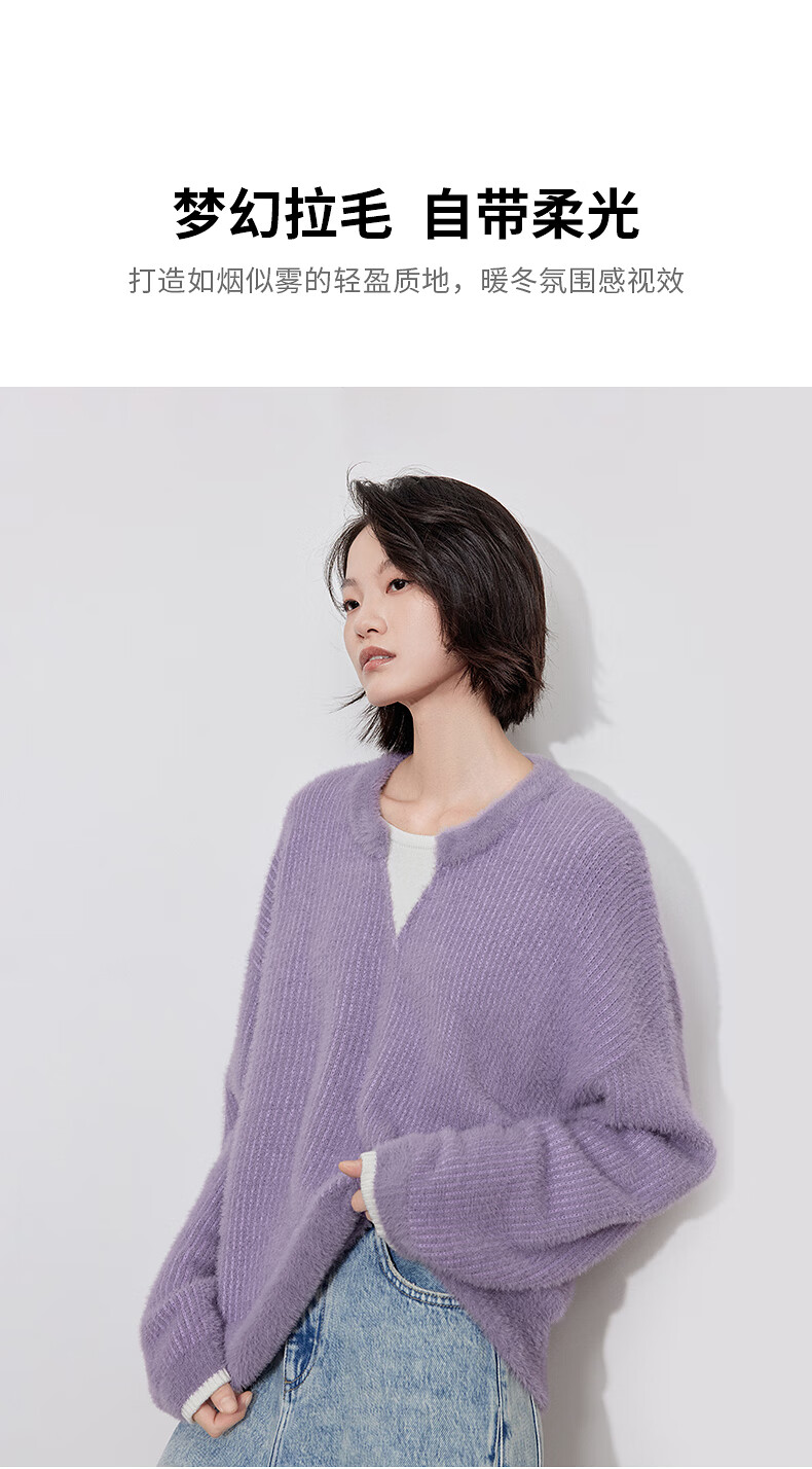 初语蓬松云朵仿貂绒毛衣女2024秋冬新款绿色假两件柔软毛织上衣 苔藓绿 M