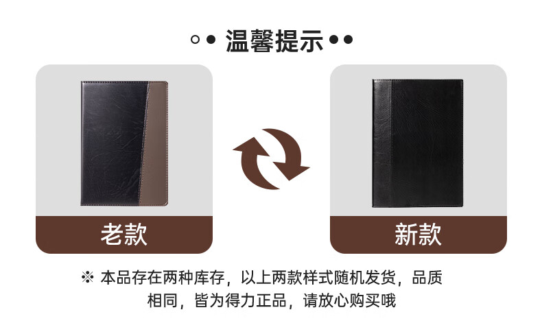 得力(deli)16K120张大号时尚撞色商务皮面本 会议记事本日记本笔记本子文具办公用品 7910