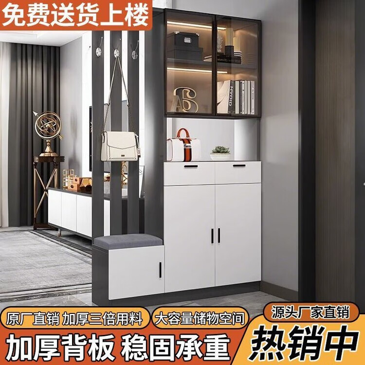 欣慕雅意式轻奢玄关柜鞋柜一体现代简约客厅屏风玄关隔断柜换鞋凳酒柜 【轻奢灰】左右随意安装长80CM 【升级加厚板材+送货上楼】
