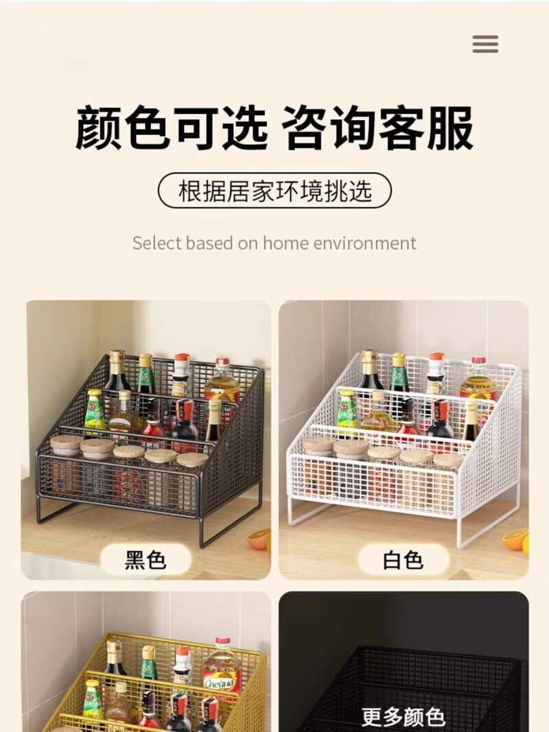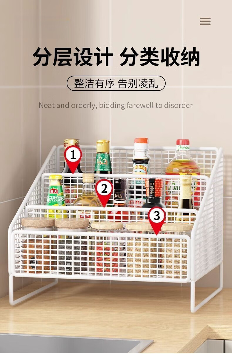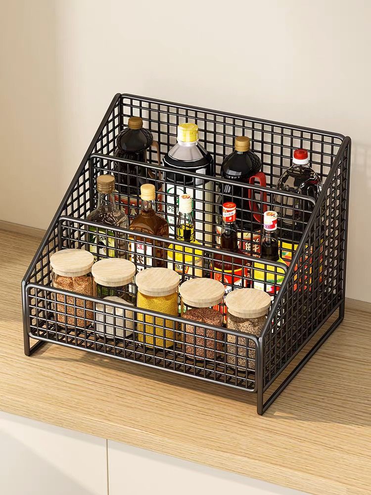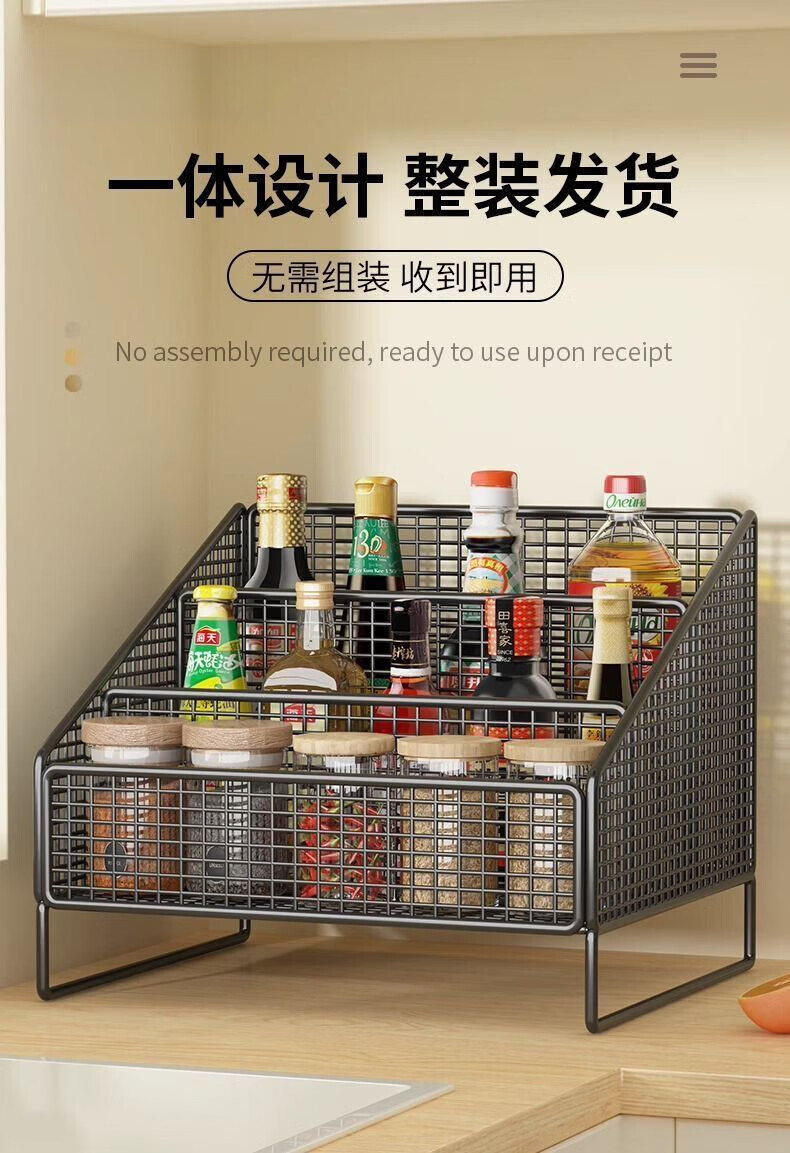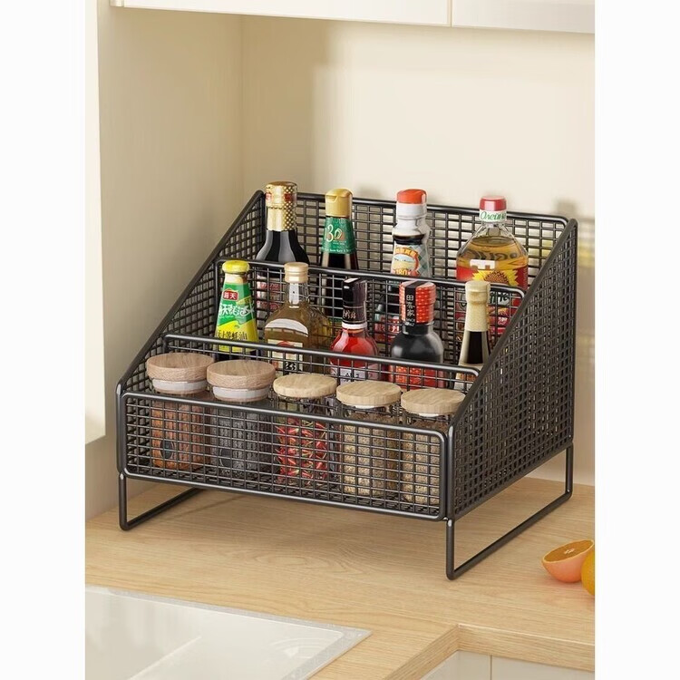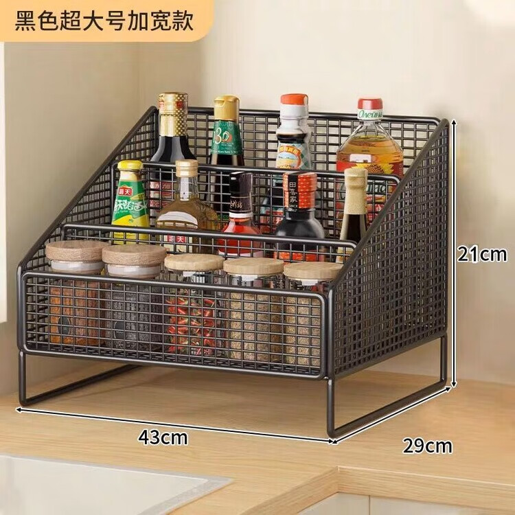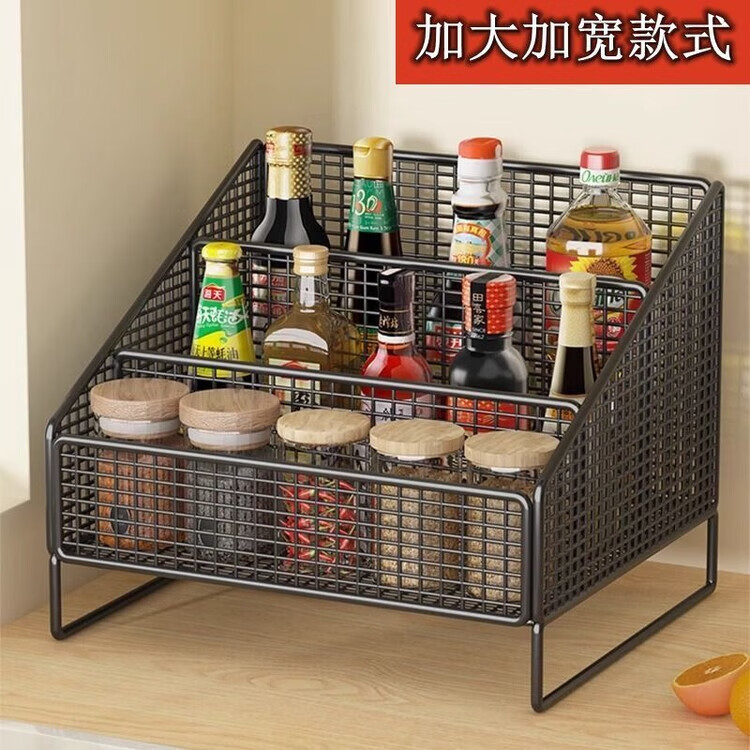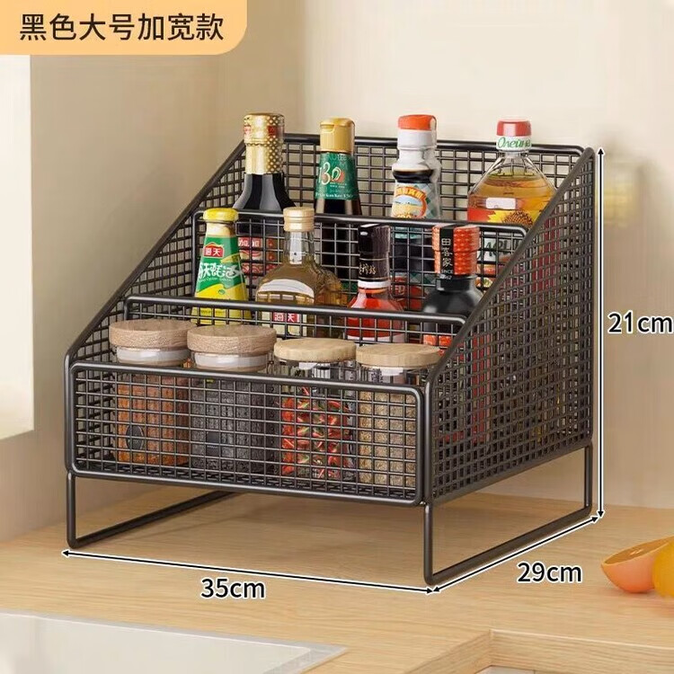 简漾加宽型厨房置物架调料品多功能收纳架多层调味品架子桌面收纳盒 黑色中号