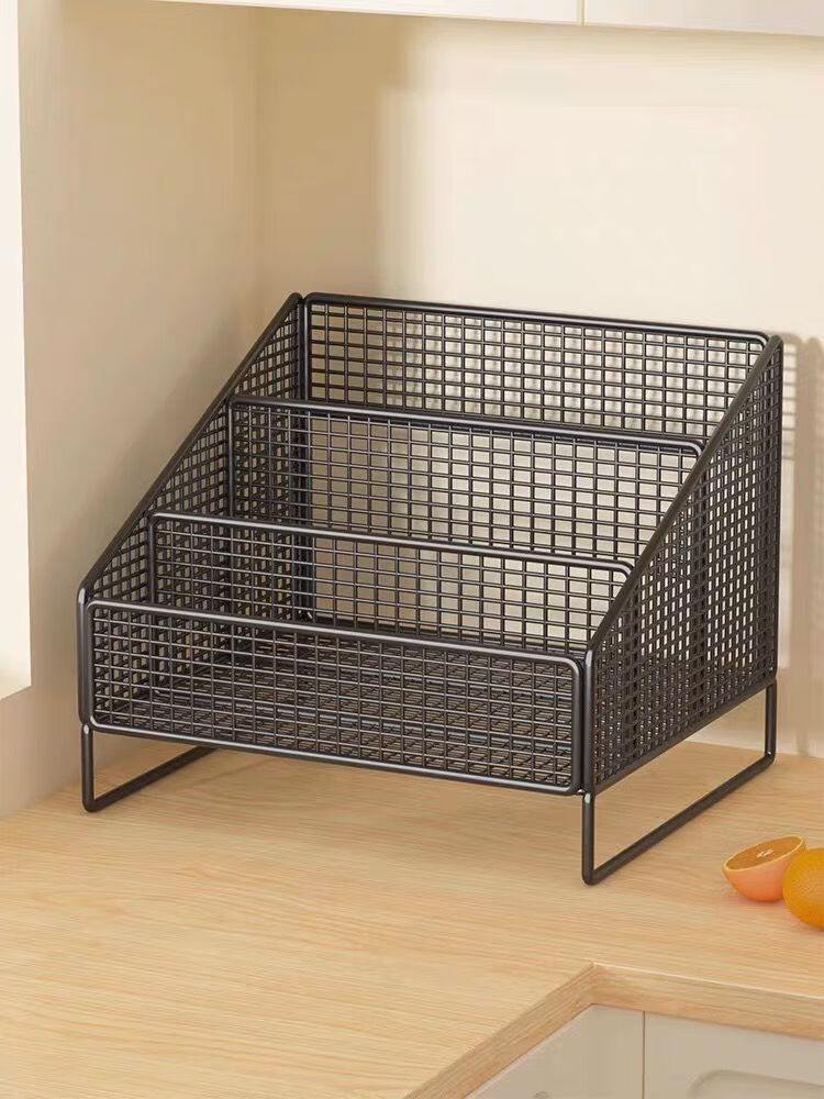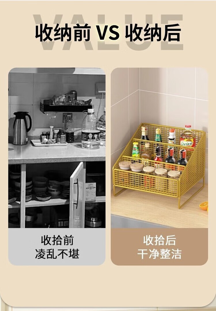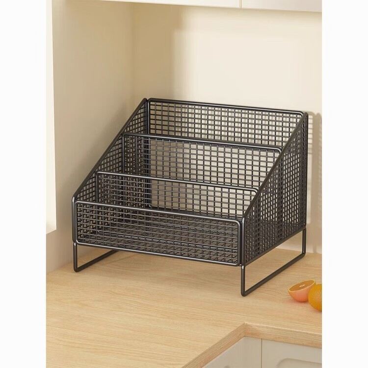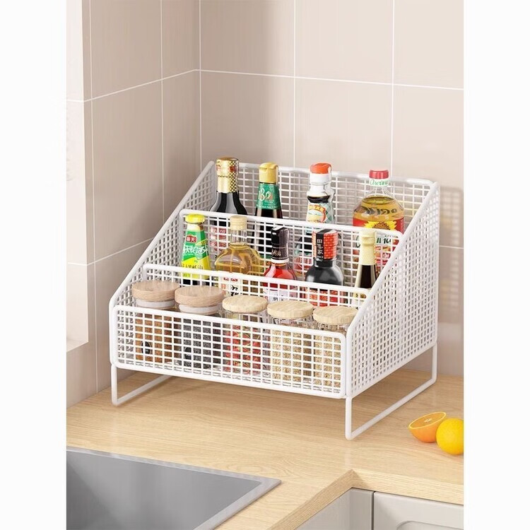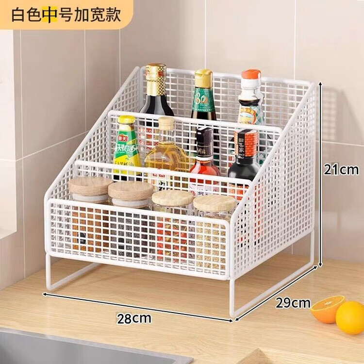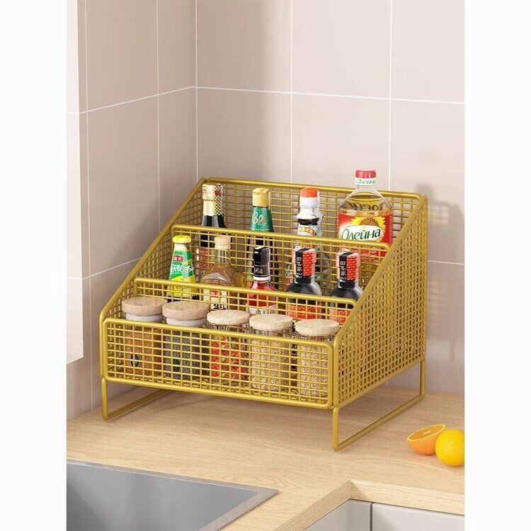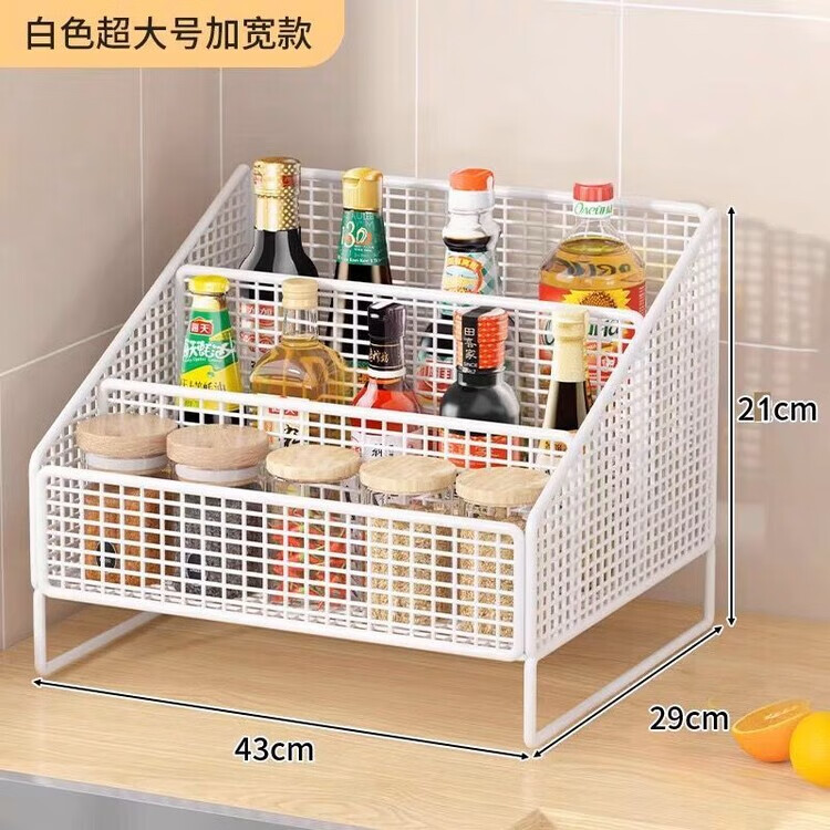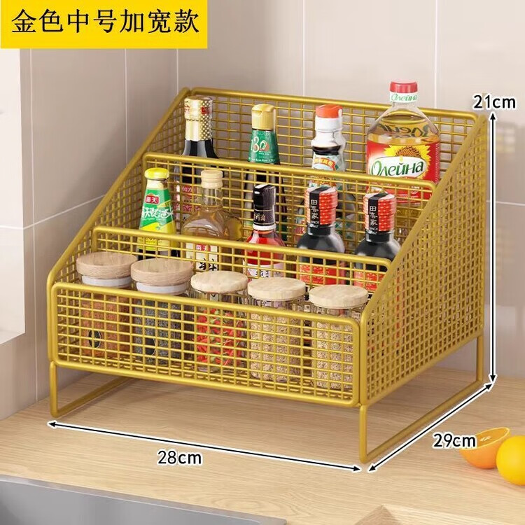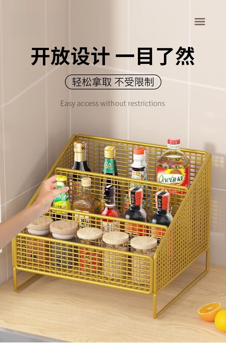 简漾加宽型厨房置物架调料品多功能收纳架多层调味品架子桌面收纳盒 黑色中号