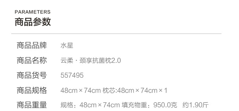 水星家纺枕头 A类抑菌人体工学舒颈枕 全枕可机洗双芯结构枕芯 单只 云柔·颈享抗菌枕2.0 14cm