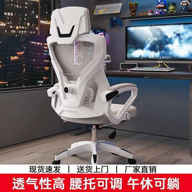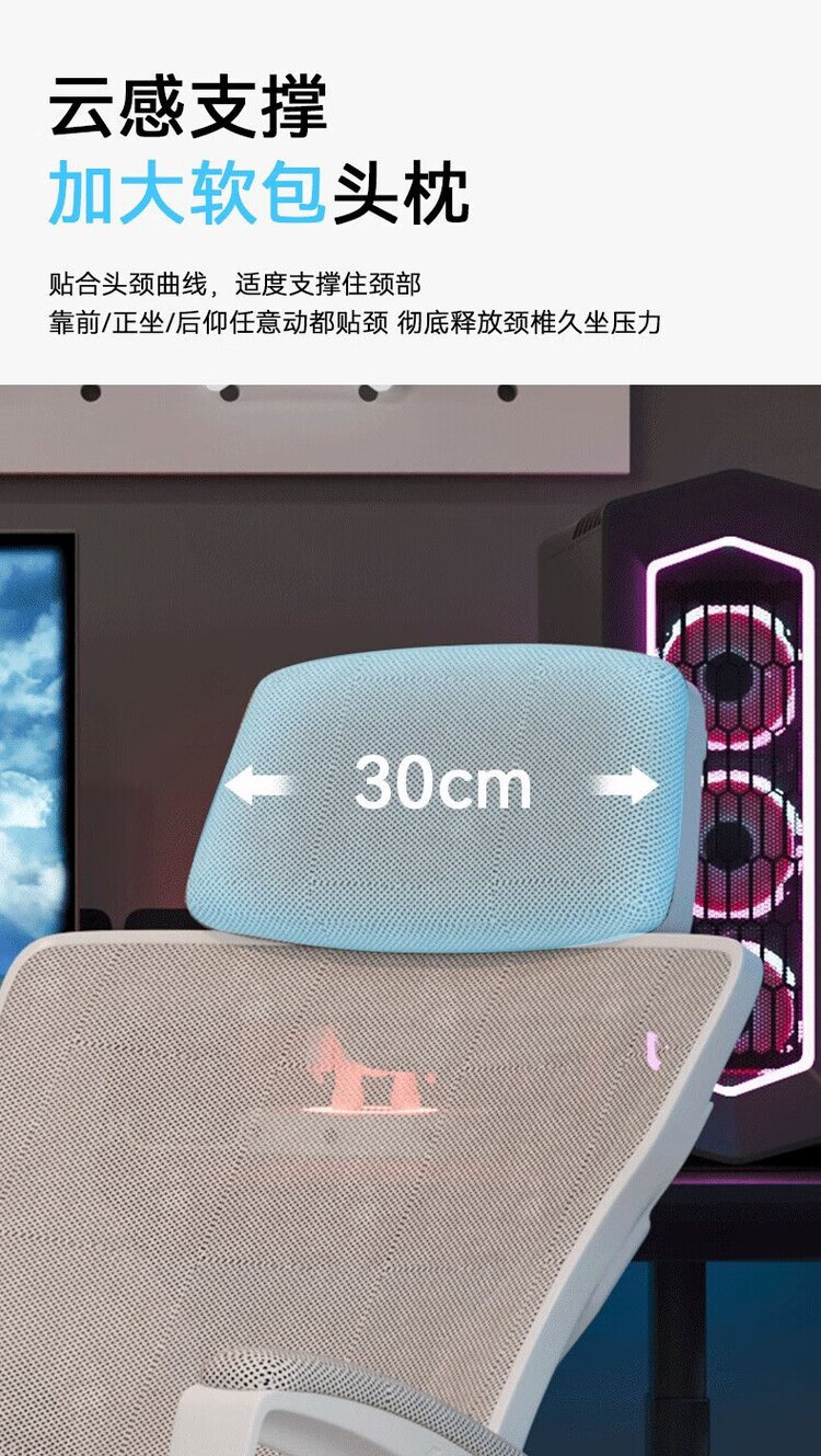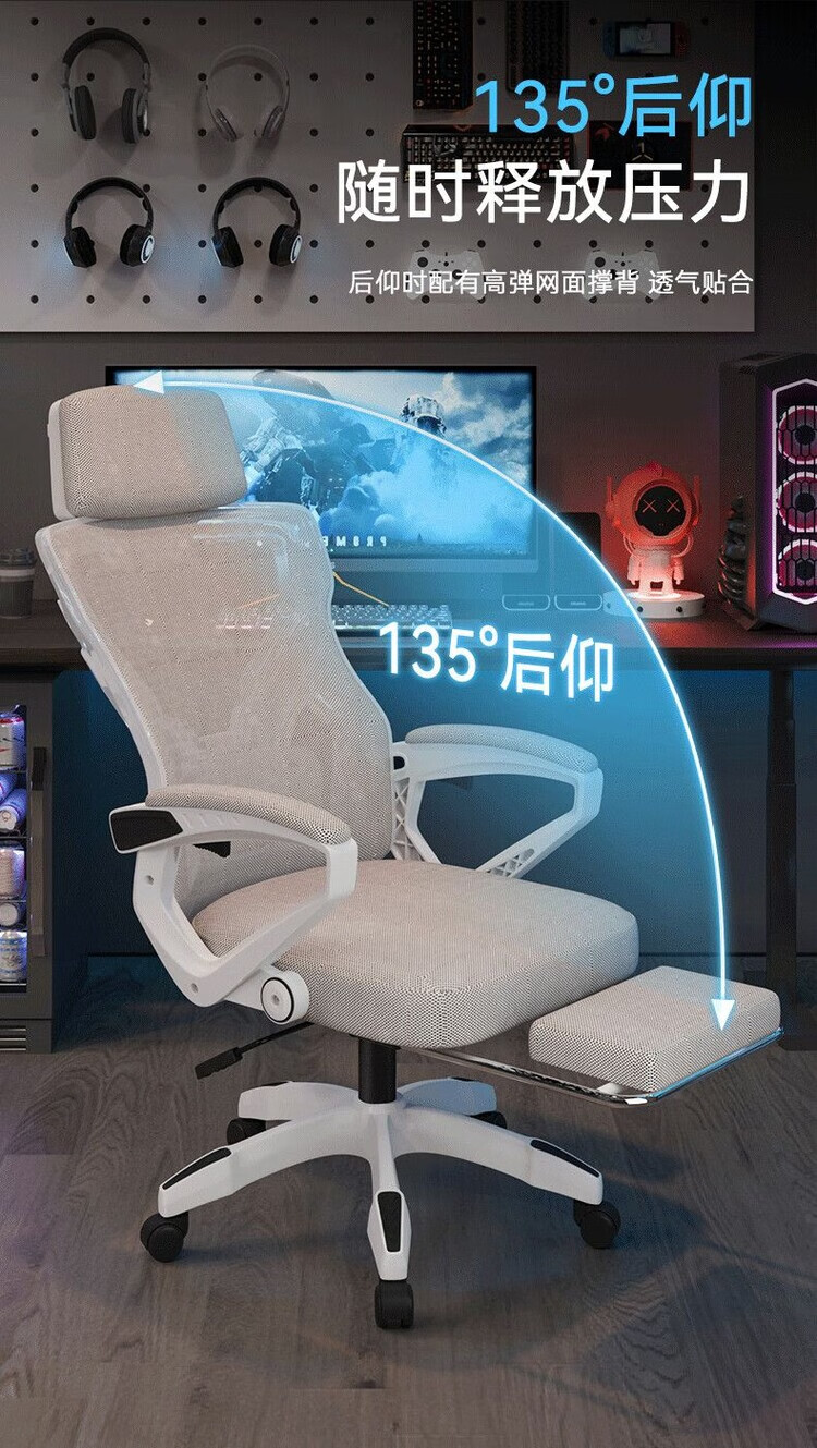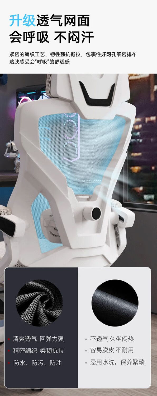欣慕雅电竞椅家用电脑椅透气人体工学椅舒适老板椅办公座椅沙发椅 【无搁脚款】白框灰网+加大头枕+三级防爆气杆