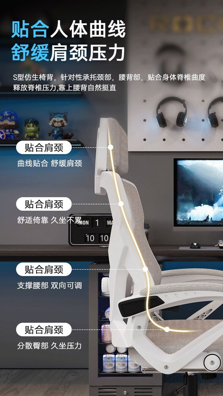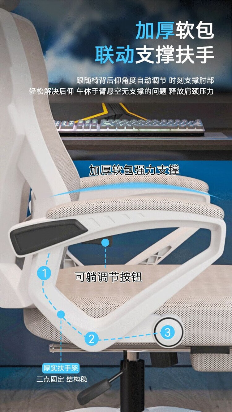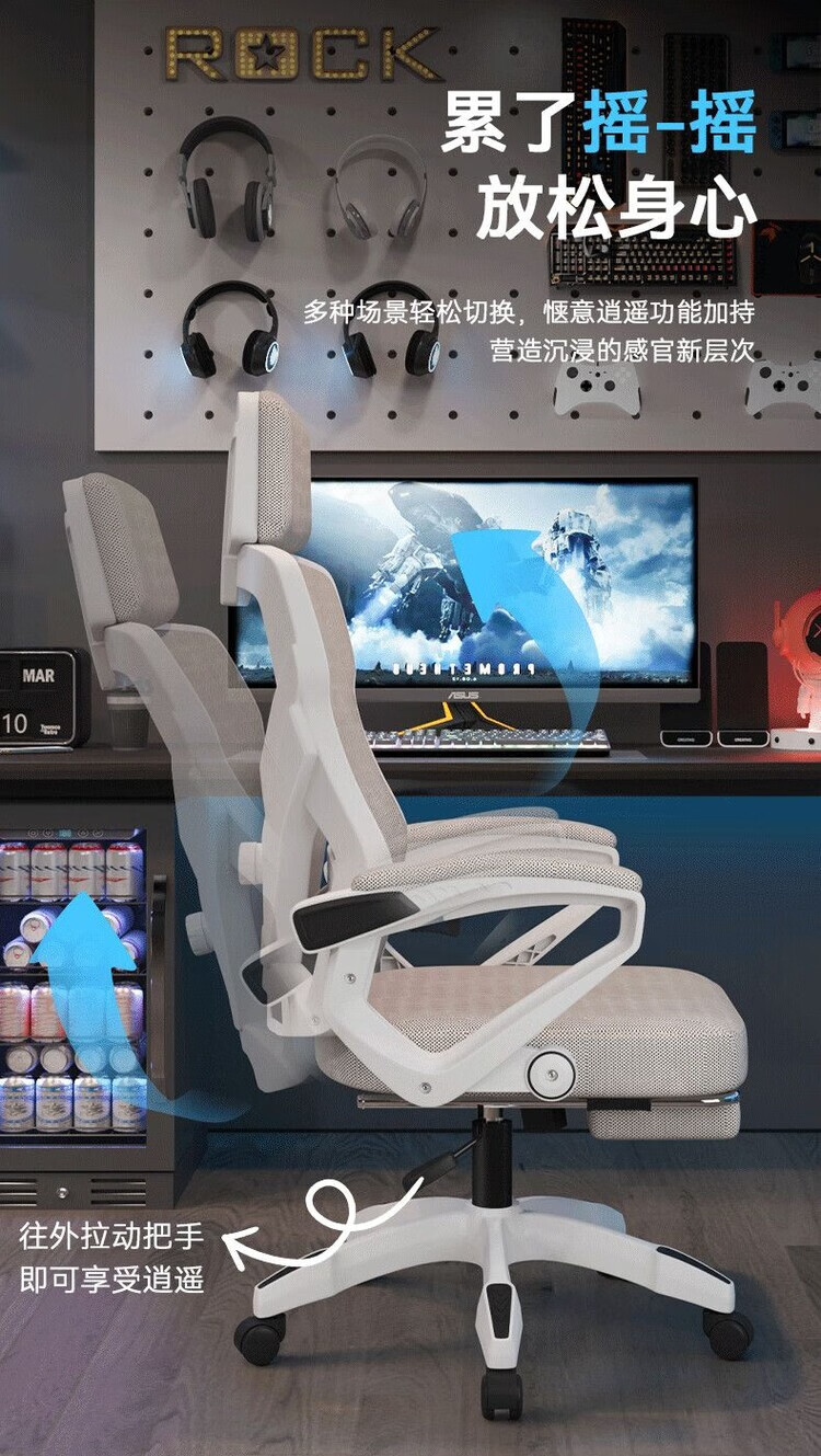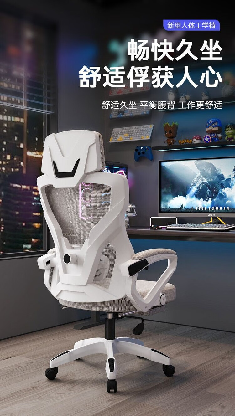 欣慕雅电竞椅家用电脑椅透气人体工学椅舒适老板椅办公座椅沙发椅 【无搁脚款】白框灰网+加大头枕+三级防爆气杆