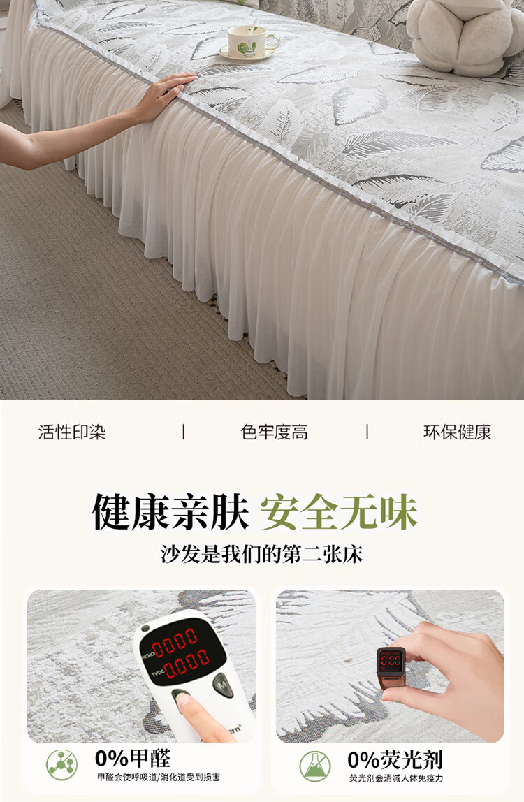 金拾美月防猫抓三座一贵妃沙发套全包万能罩四季通用坐垫笠沙发盖布巾 幸运小花-绿色 单人加大S宽65-85cm*长65-95cm