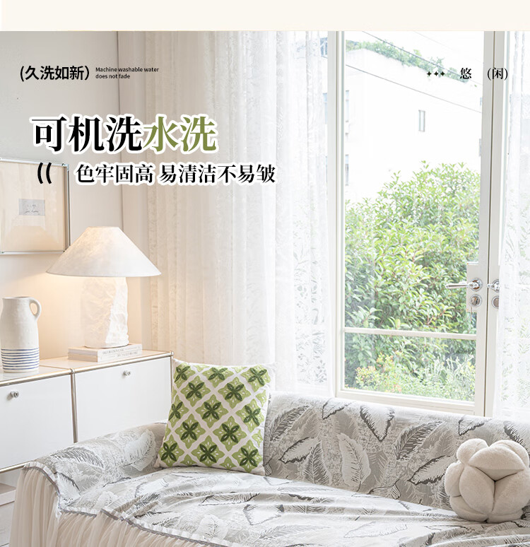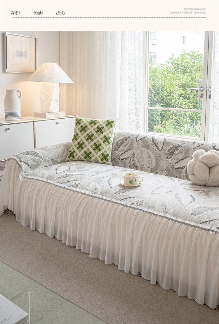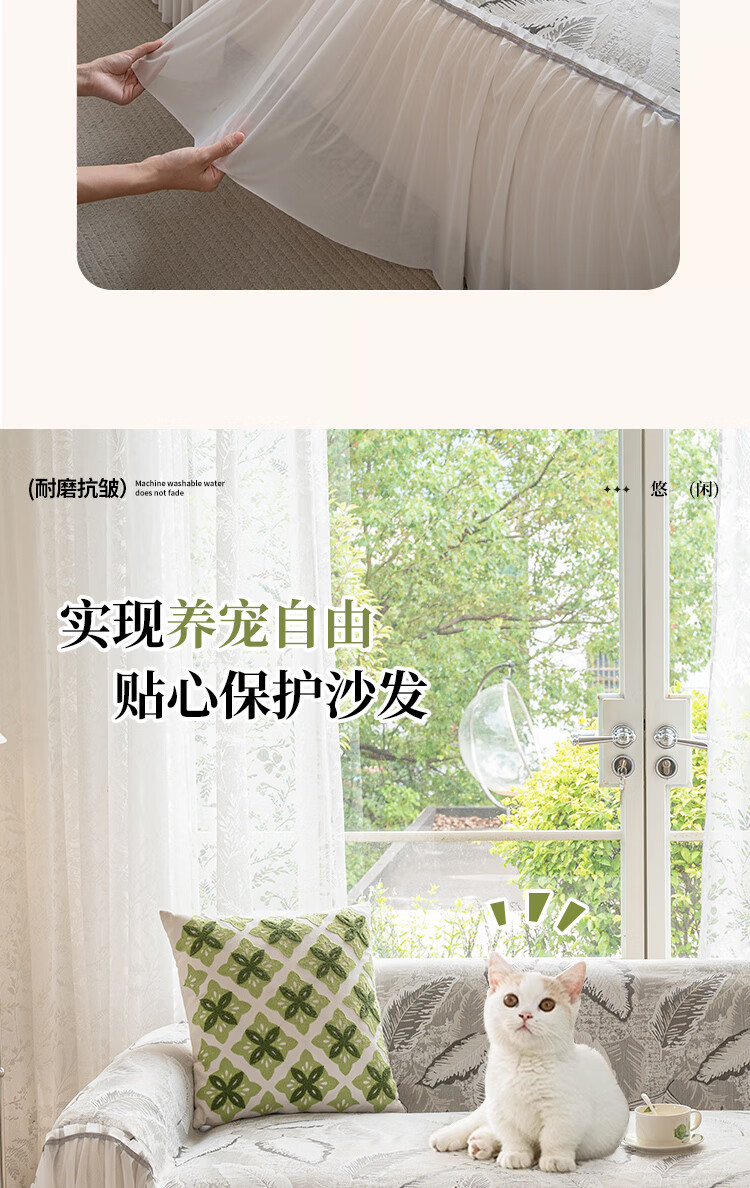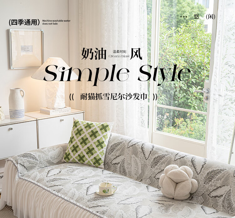 金拾美月防猫抓提花绒沙发套罩2025新款四季通用型坐垫笠全包万能盖布巾 樱花笠-米白 单人加大S宽65-85cm*长65-95cm