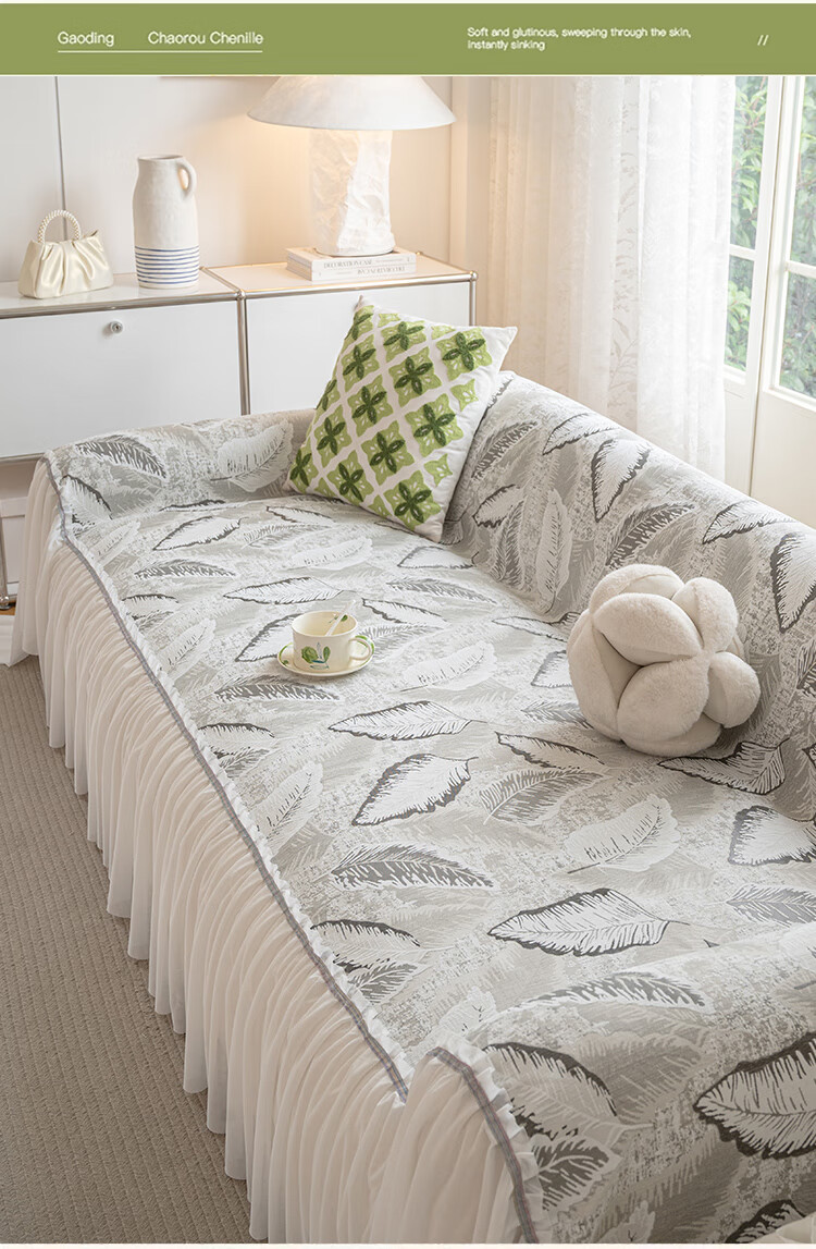 金拾美月2025新款雪尼尔沙发盖巾四季通用轻奢高级感防滑坐垫套防猫抓套 叶栖-灰色 180cm*130cm (适用于单人位/脚踏)