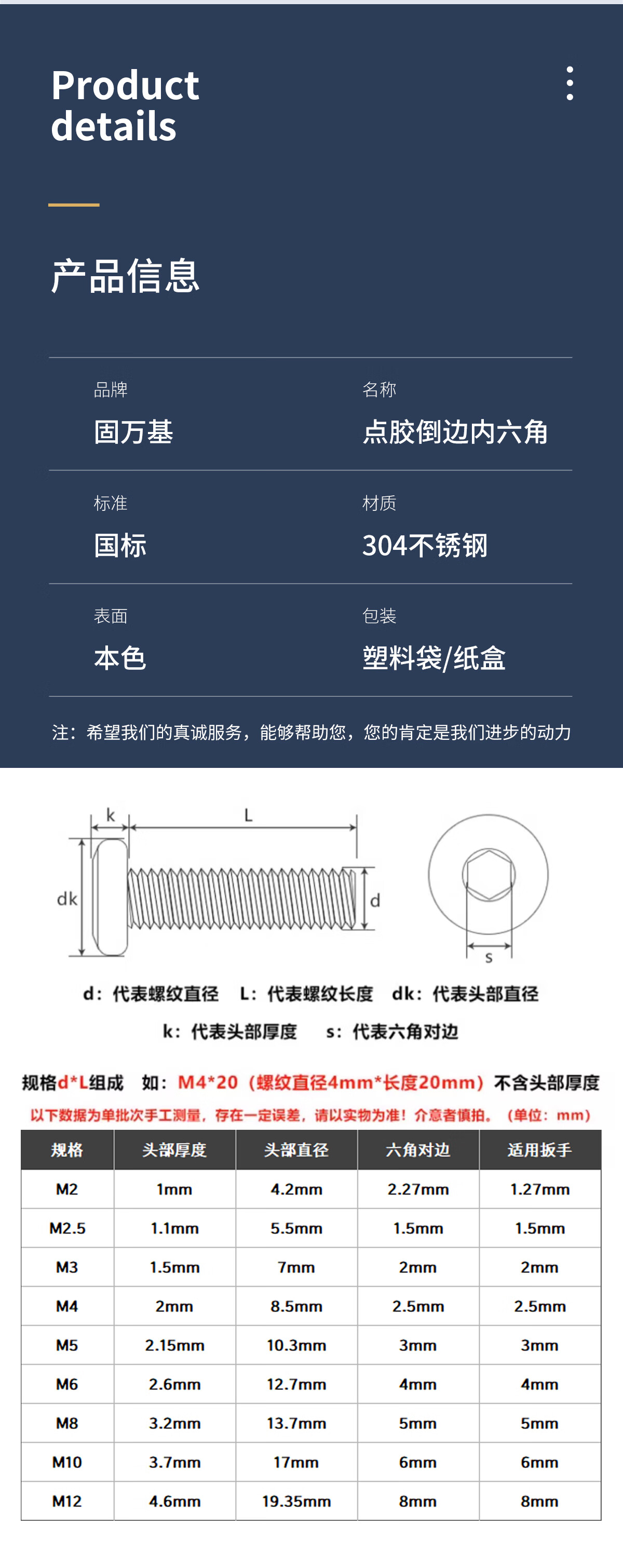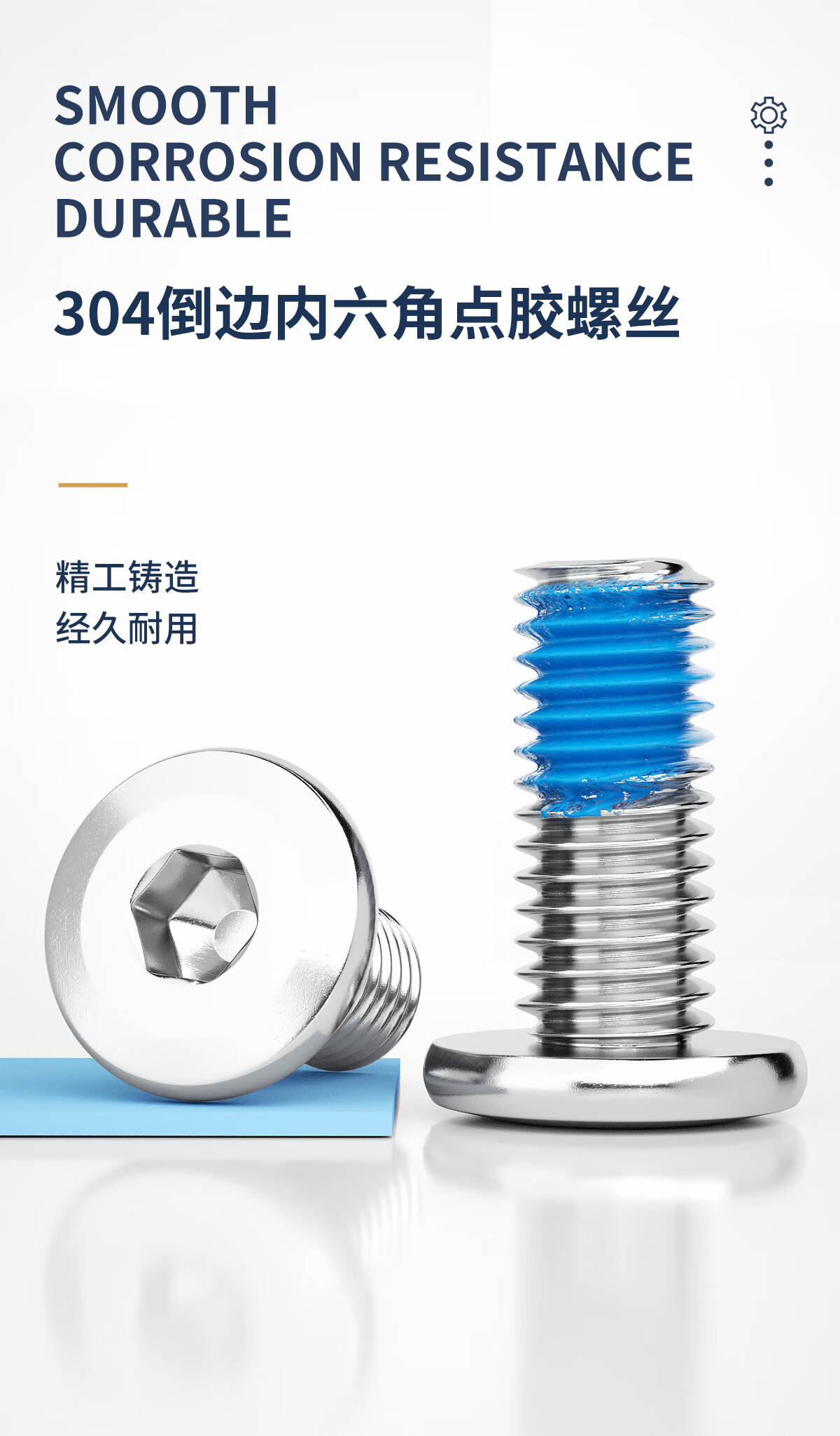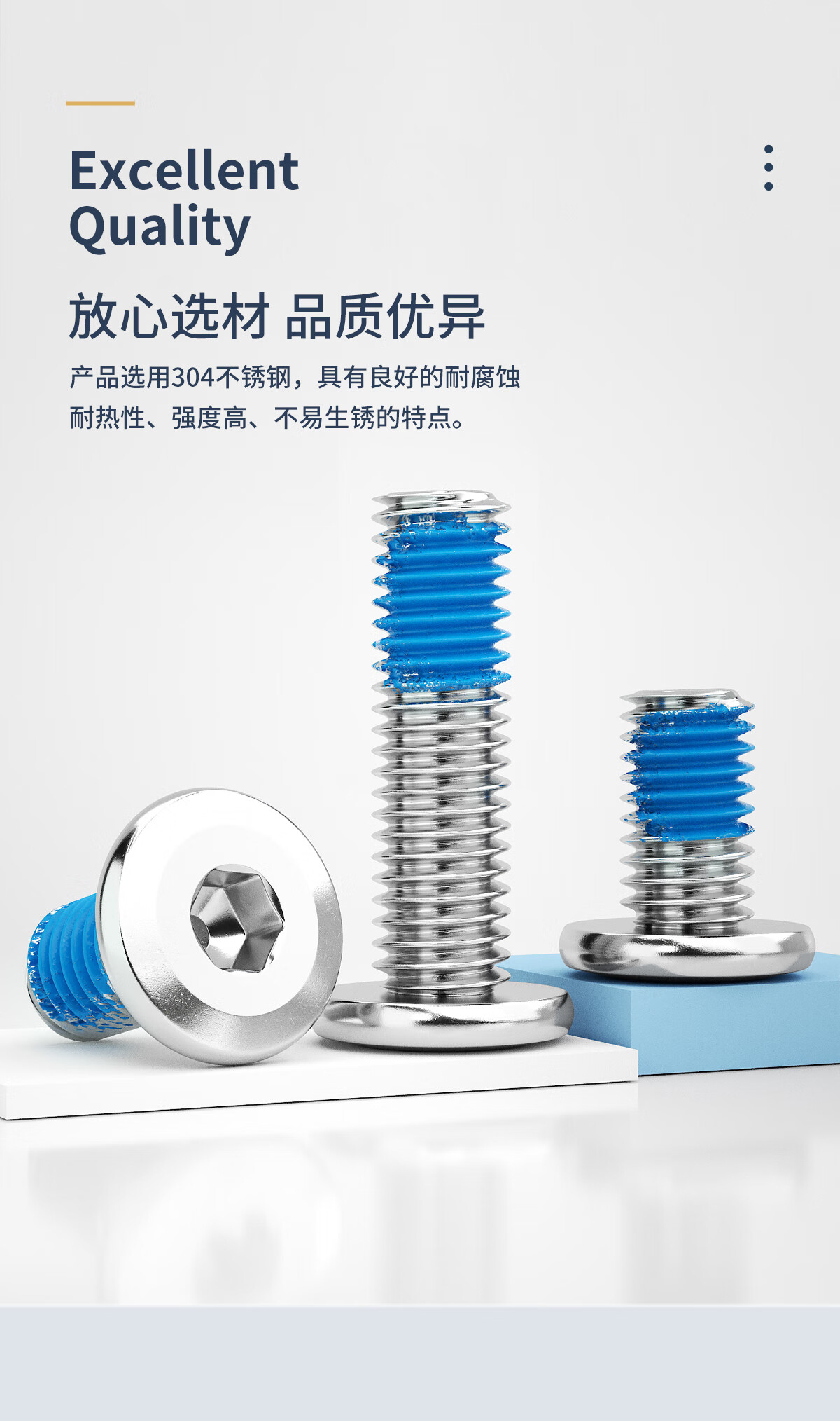 固万基(GUWANJI)304不锈钢大平头倒边内六角点胶螺丝斜边家具螺钉防松防脱 M4x10[100只]