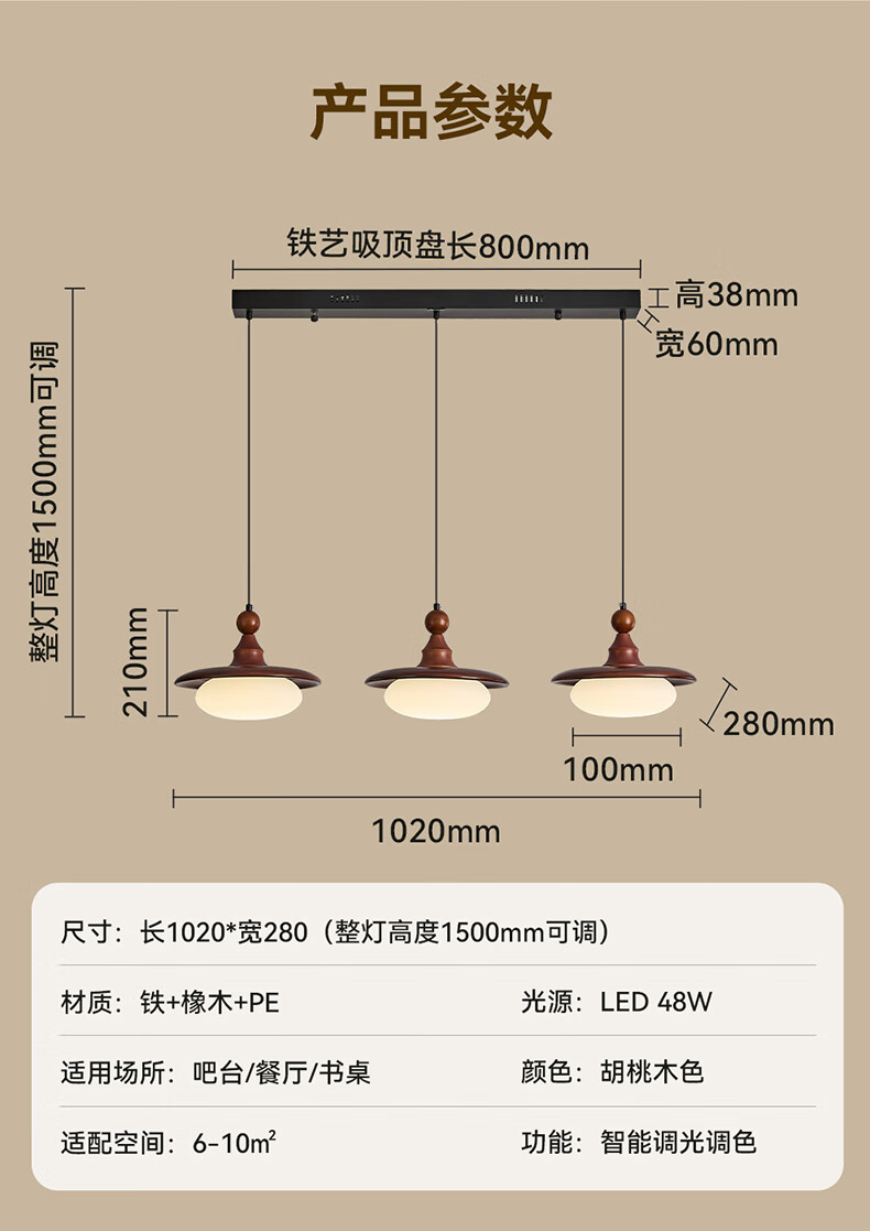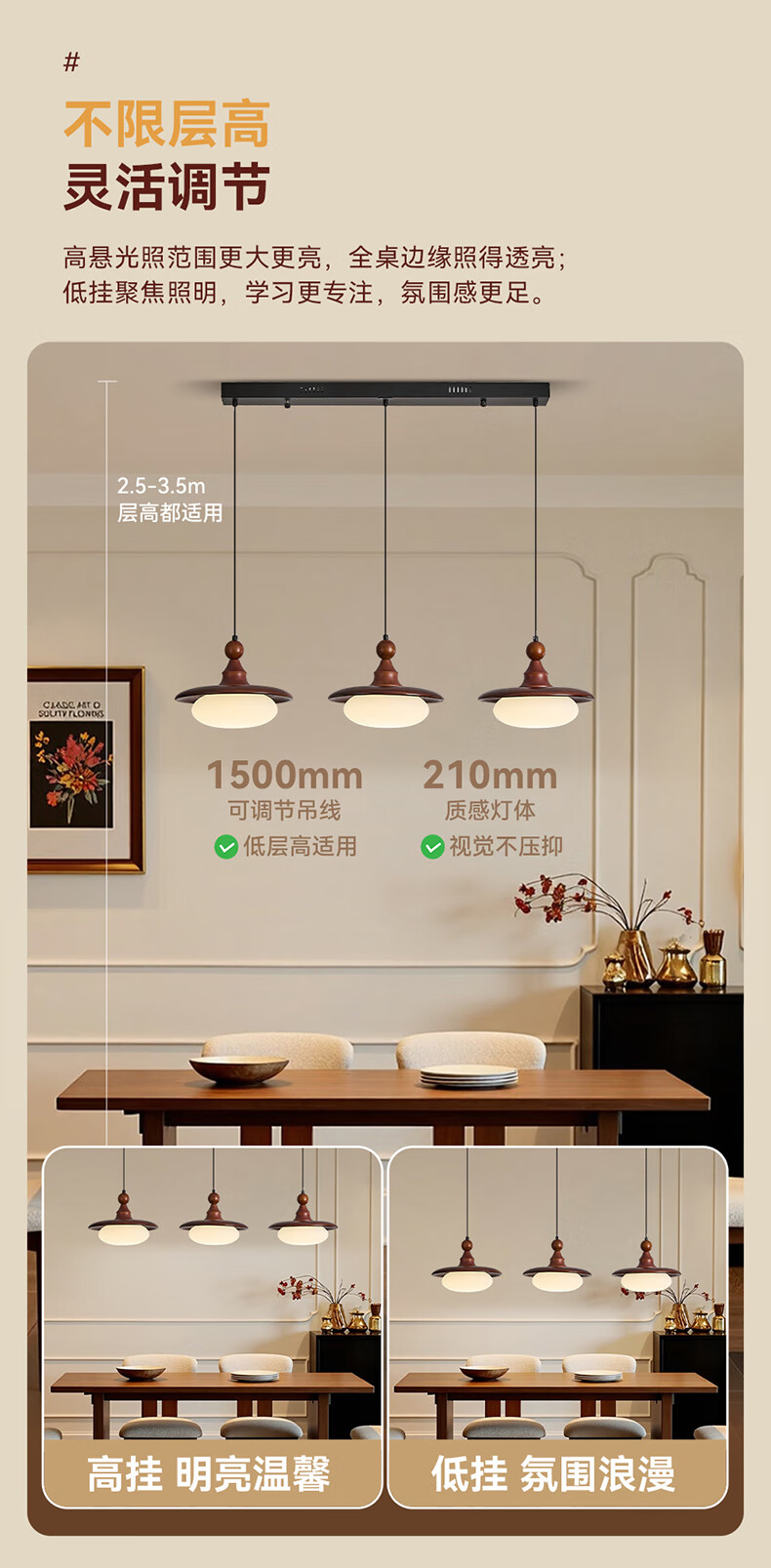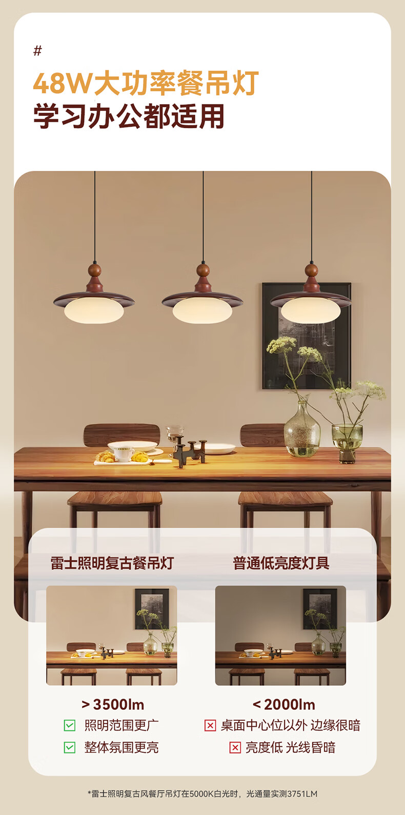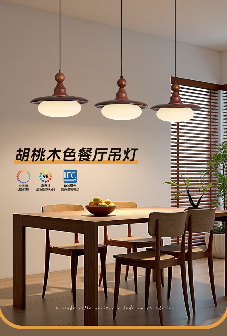雷士(NVC)中古风餐厅吊灯新款胡桃木色吧台灯宋式美学护眼复古灯具 【全光谱护眼】胡桃木色48W松玉餐吊灯
