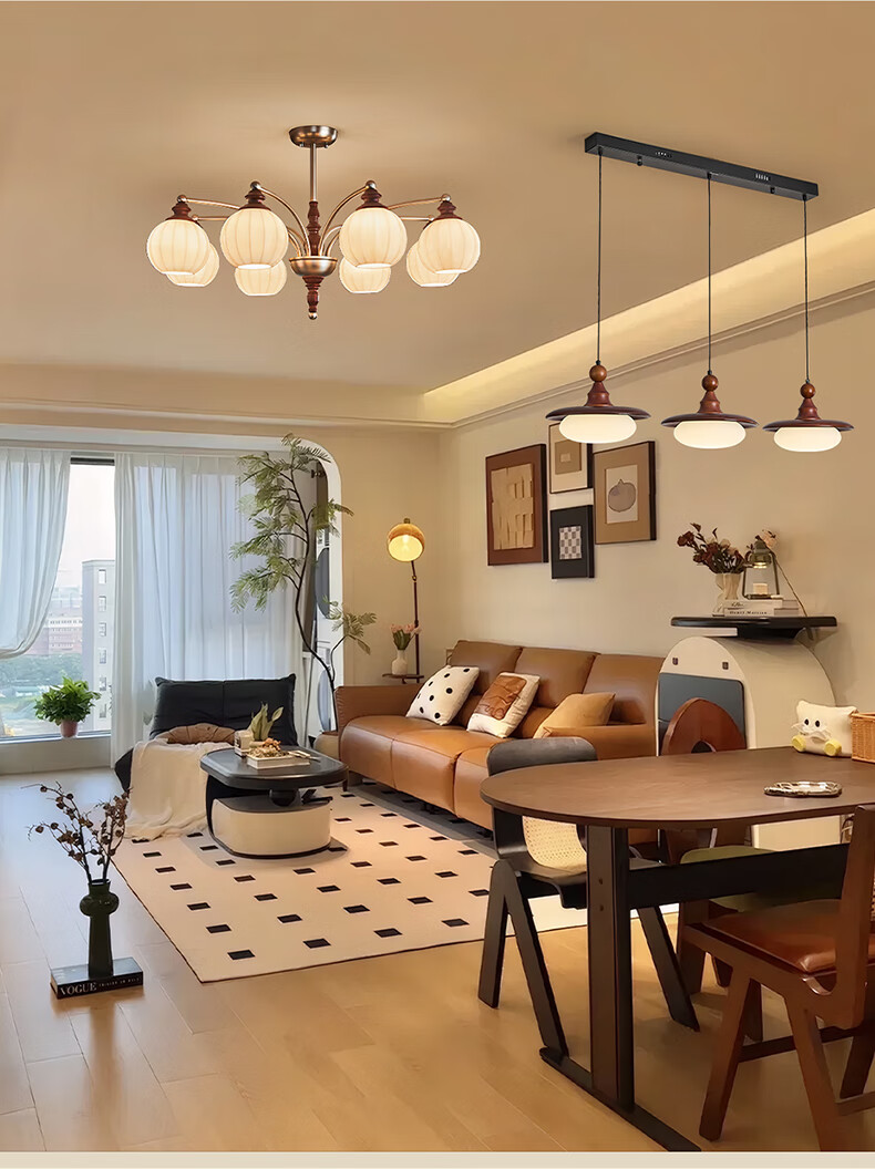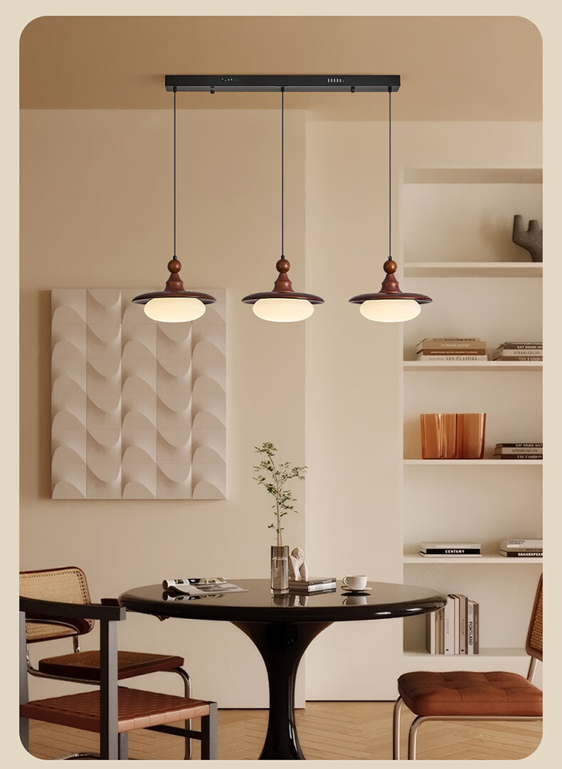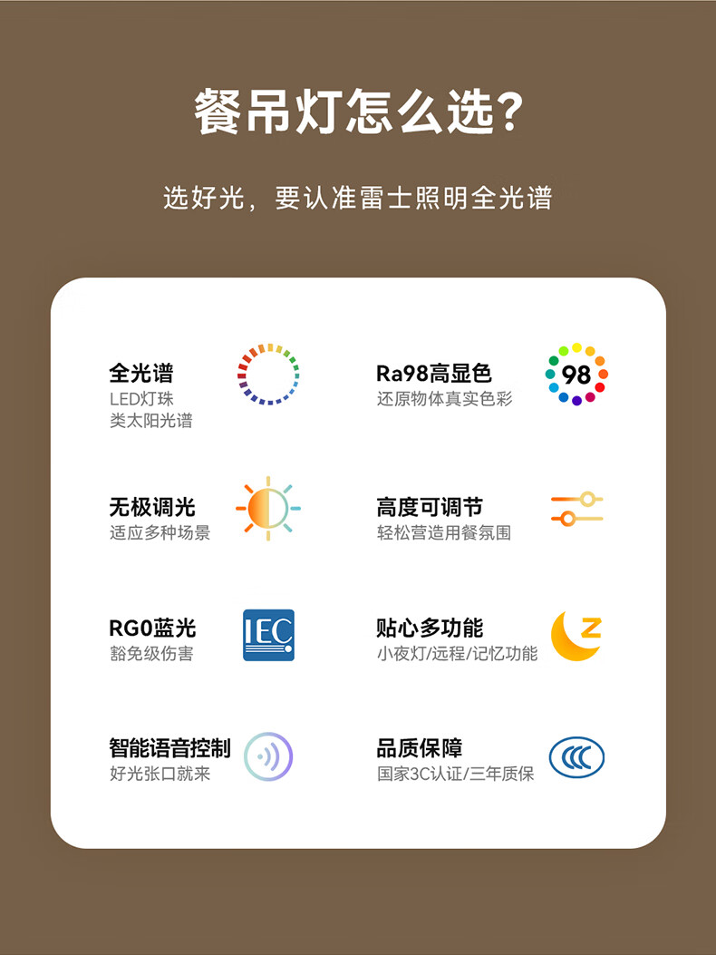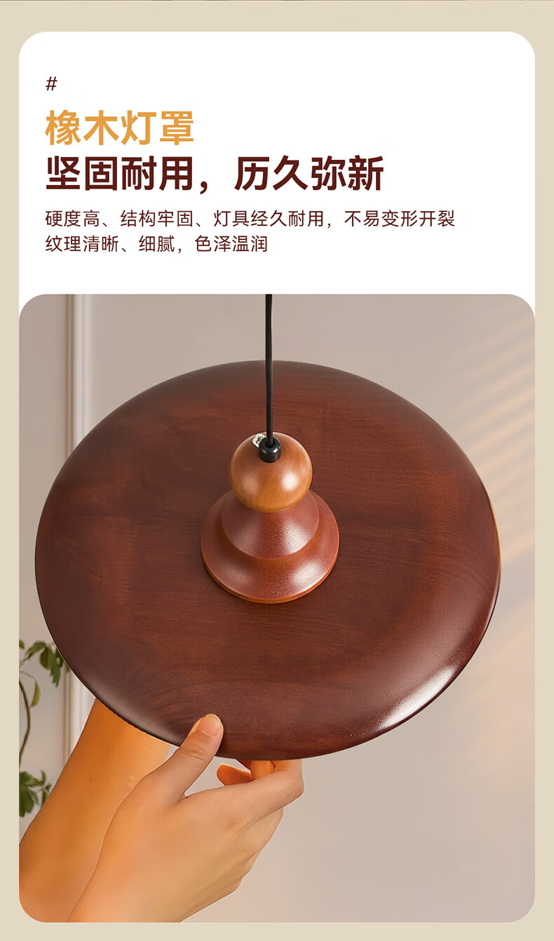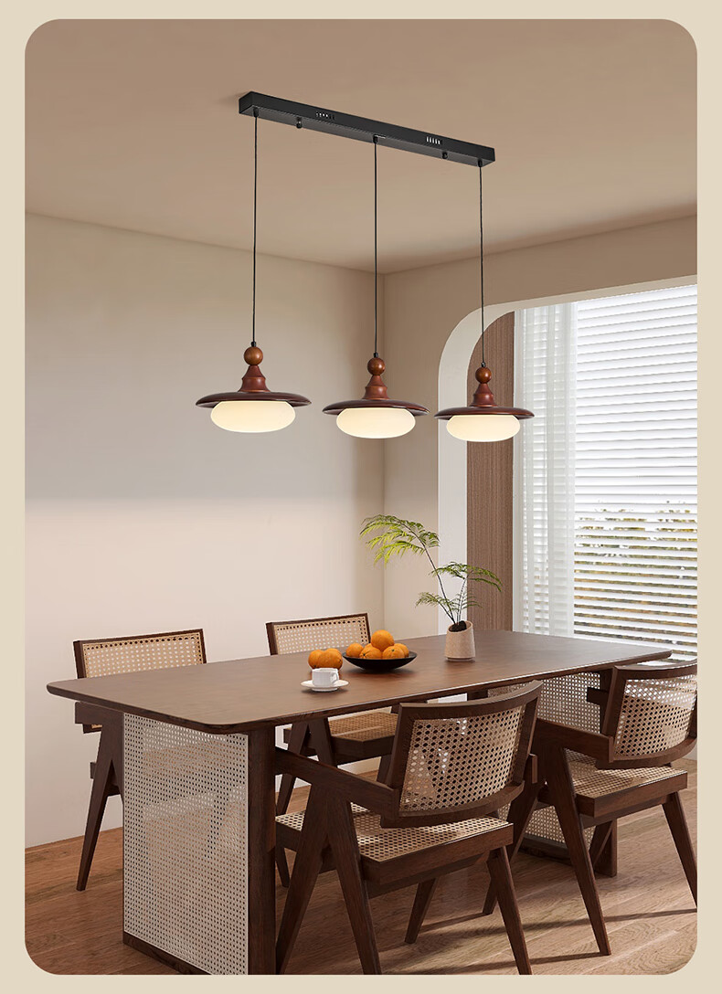雷士(NVC)中古风餐厅吊灯新款胡桃木色吧台灯宋式美学护眼复古灯具 【全光谱护眼】胡桃木色48W松玉餐吊灯