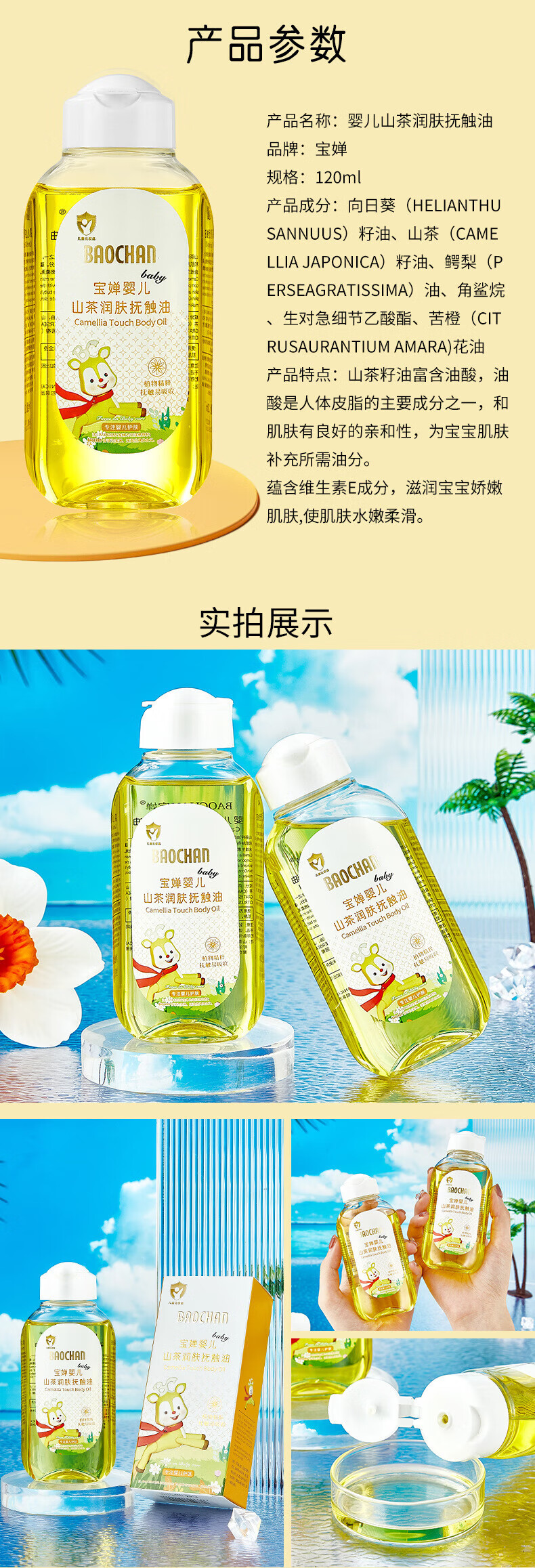 宝婵儿宝宝抚触油保湿护肤正品 儿童润肤油120ml