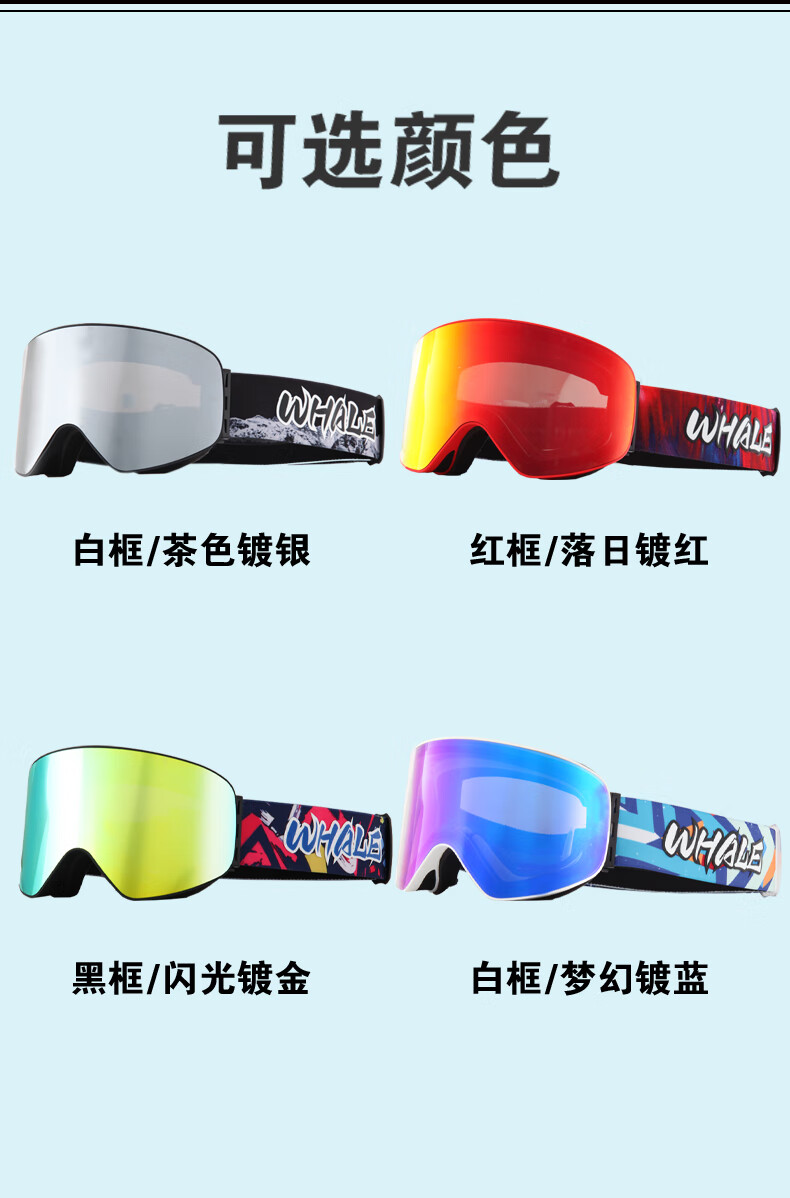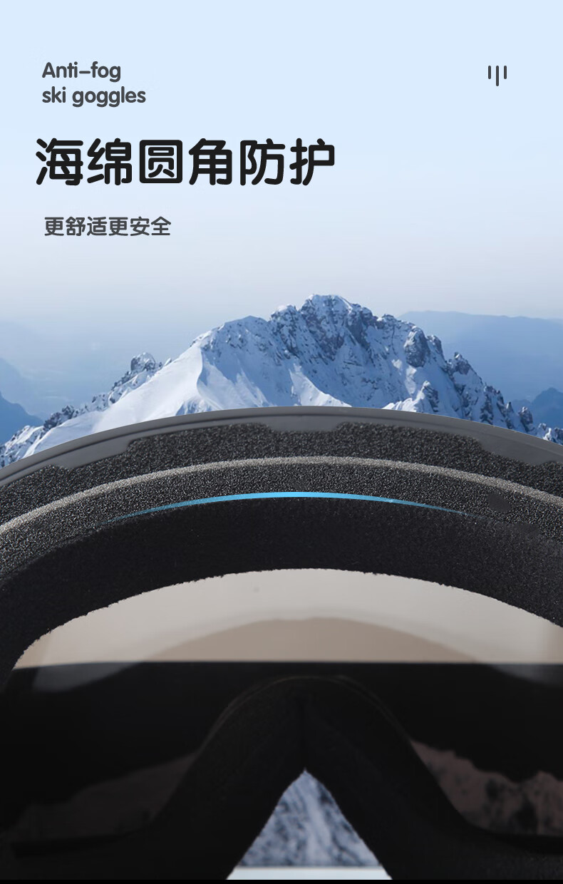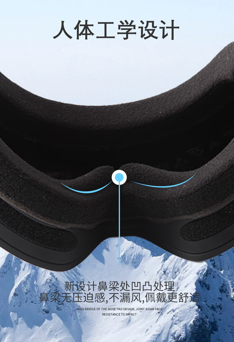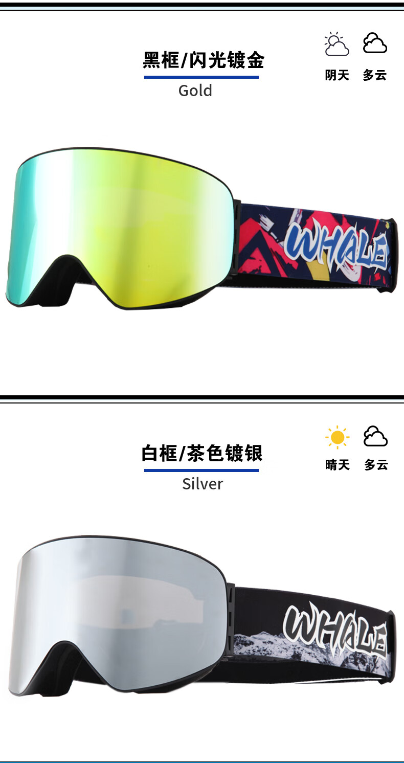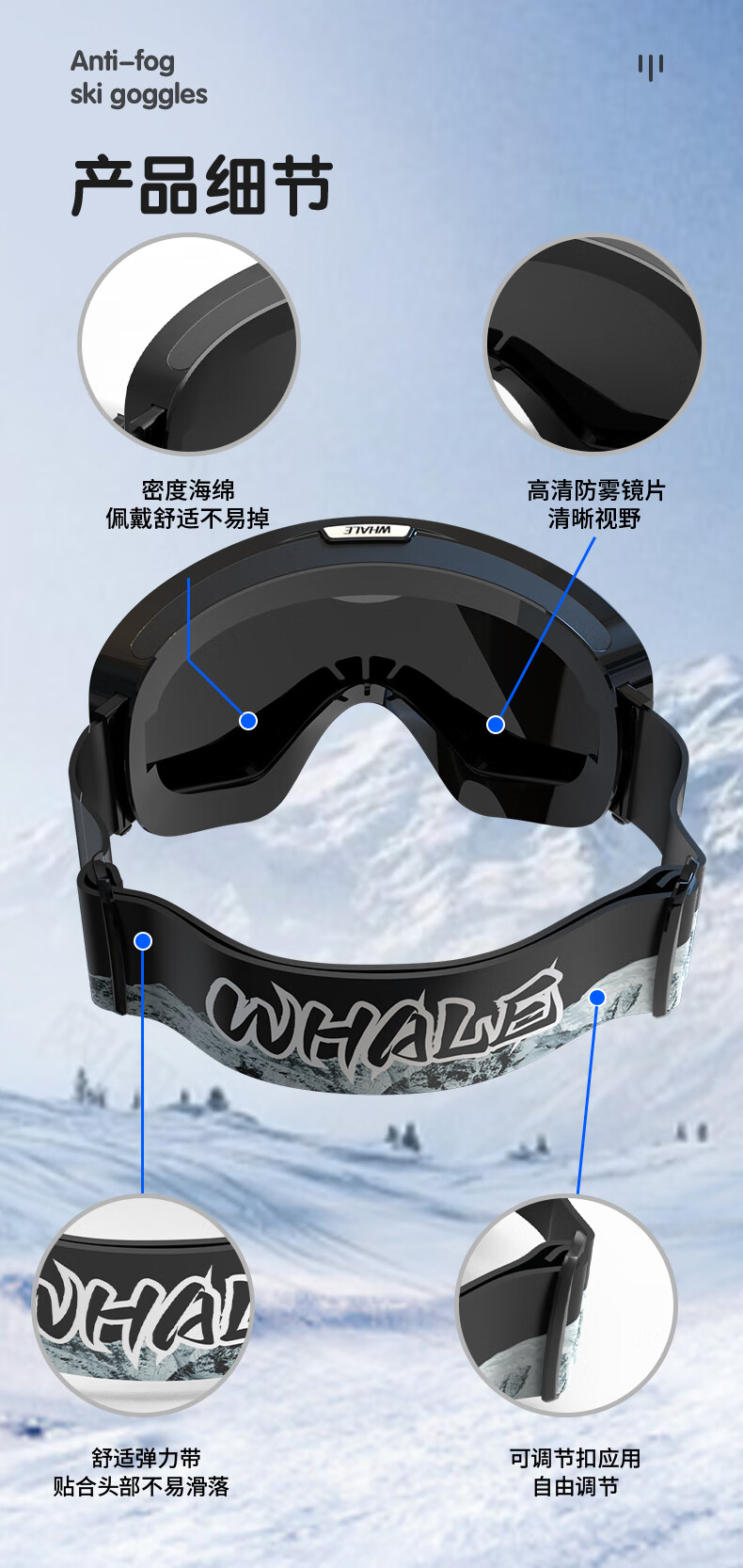 鲸鱼高清防雾滑雪镜护目镜双层眼镜防紫外线防雪盲防强光单双板滑雪 【京东物流】黑框/茶色镀银