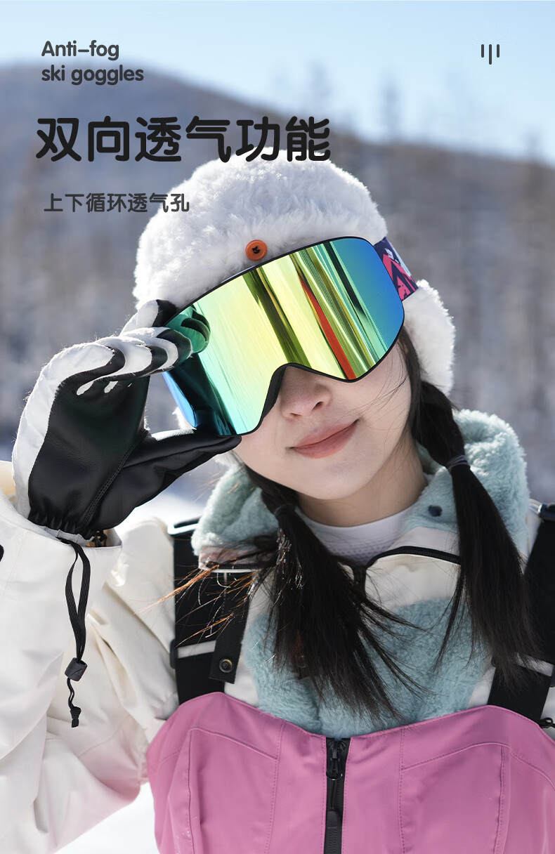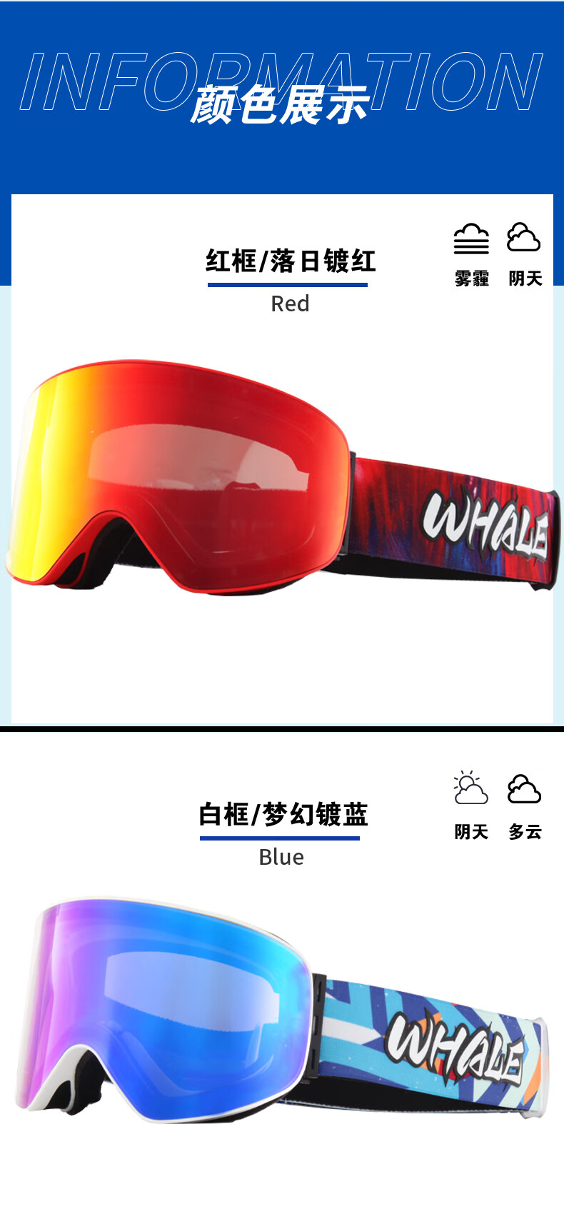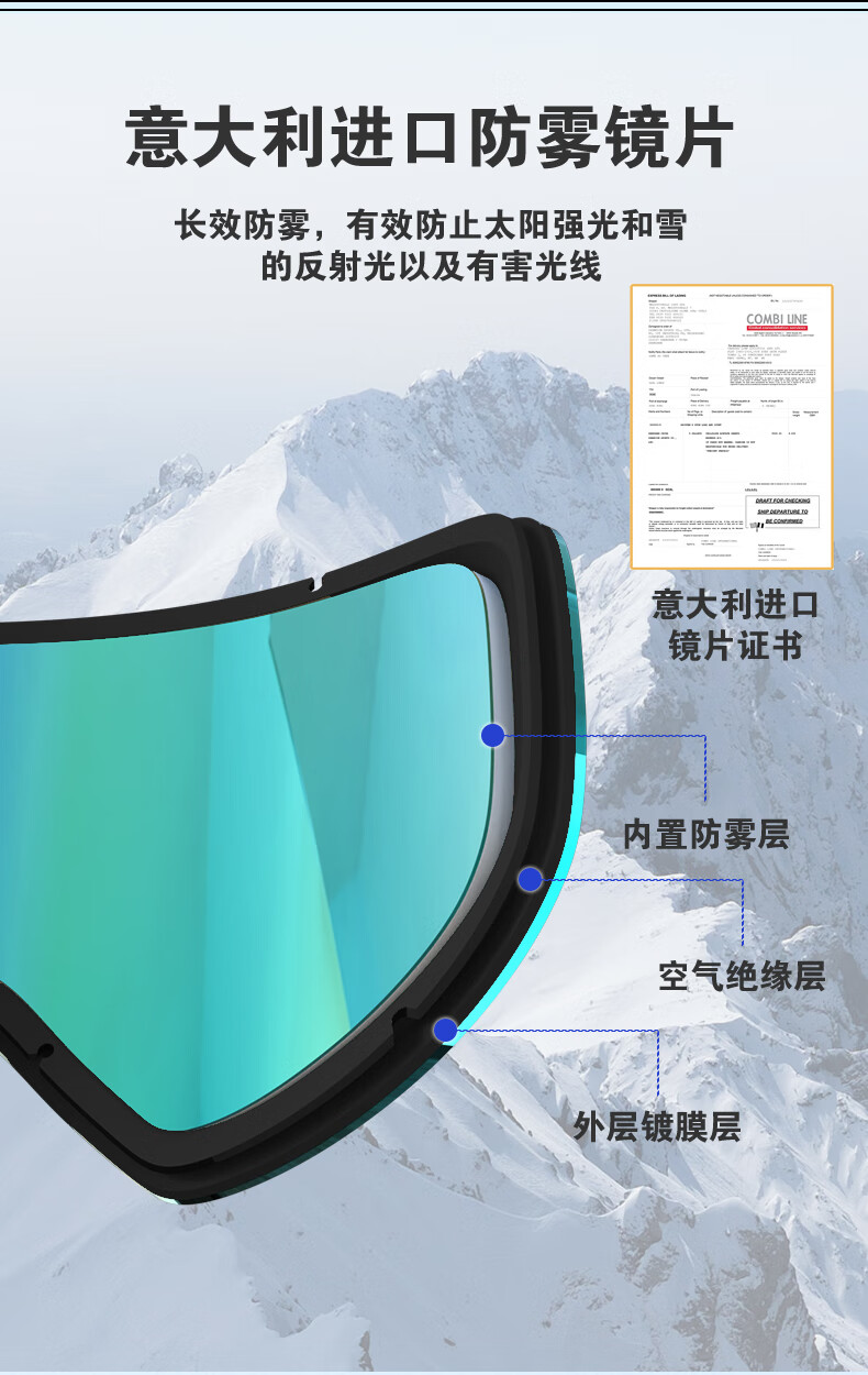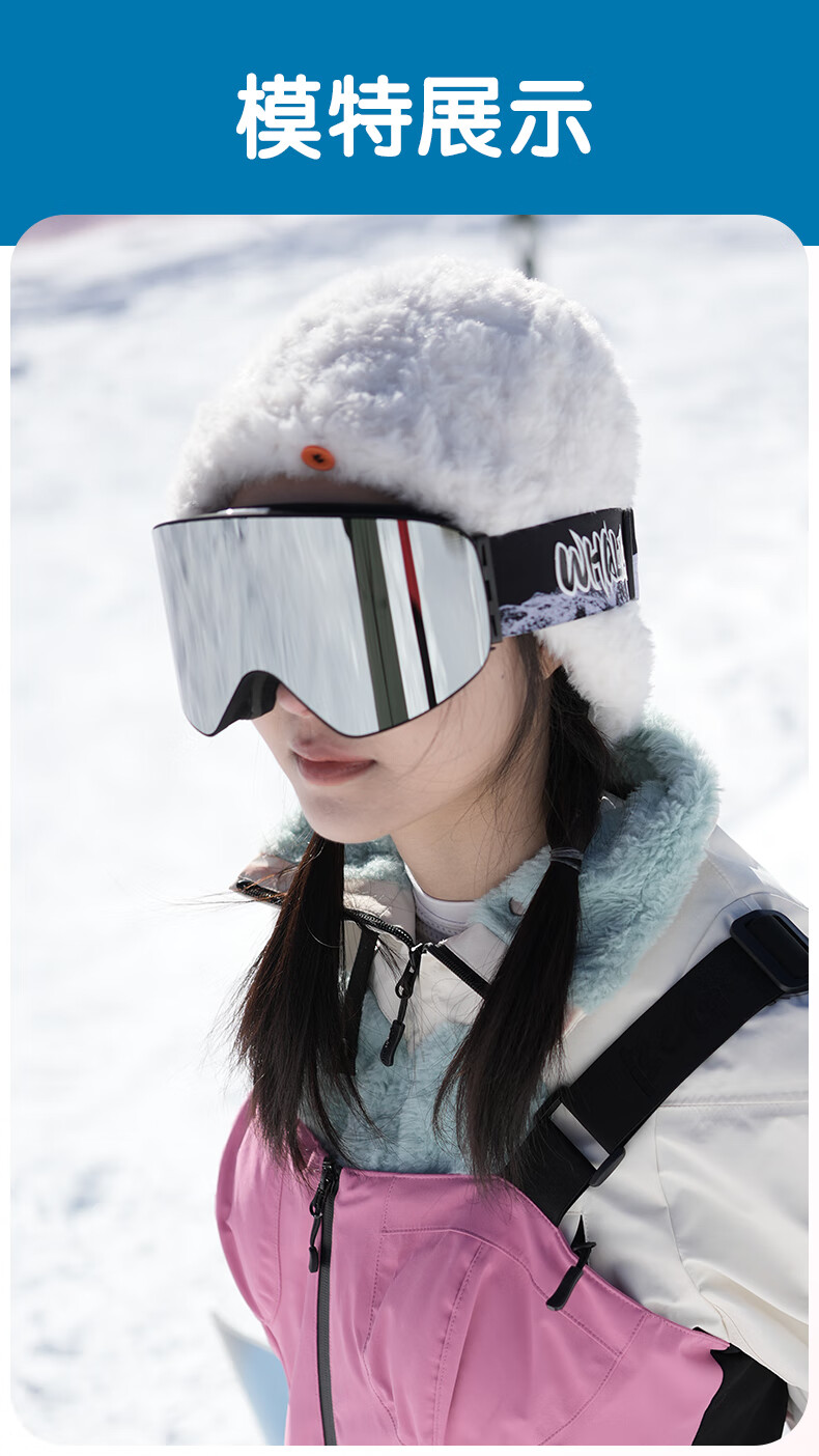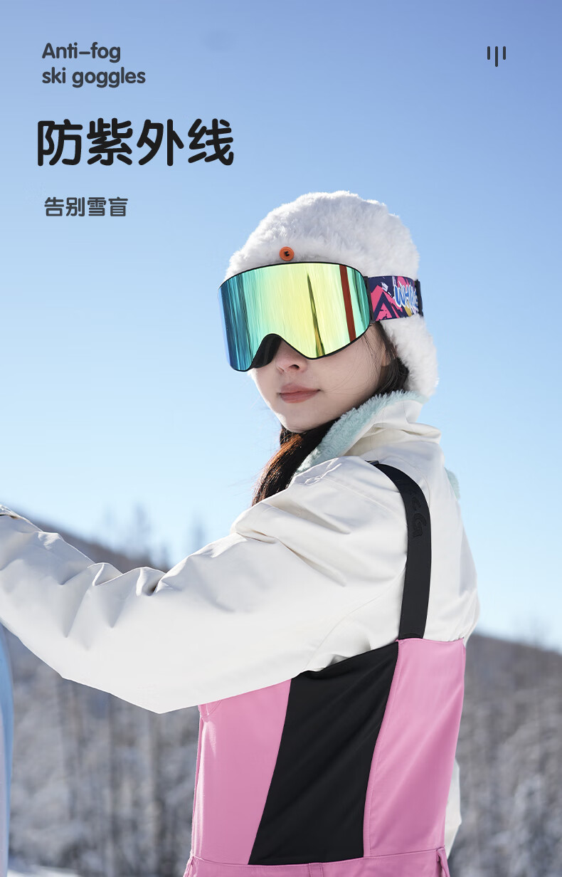 鲸鱼高清防雾滑雪镜护目镜双层眼镜防紫外线防雪盲防强光单双板滑雪 【京东物流】黑框/茶色镀银