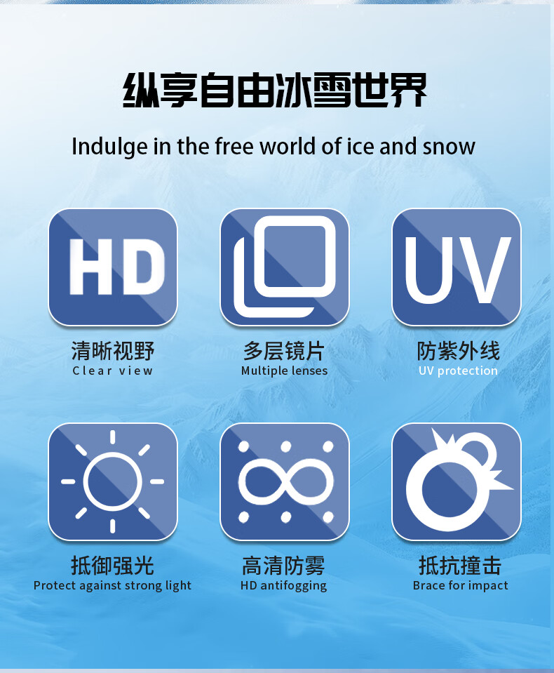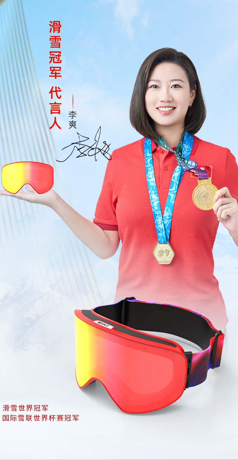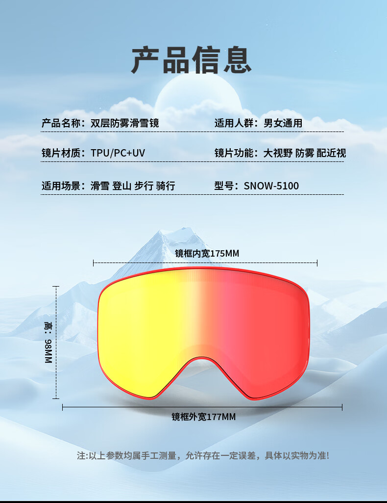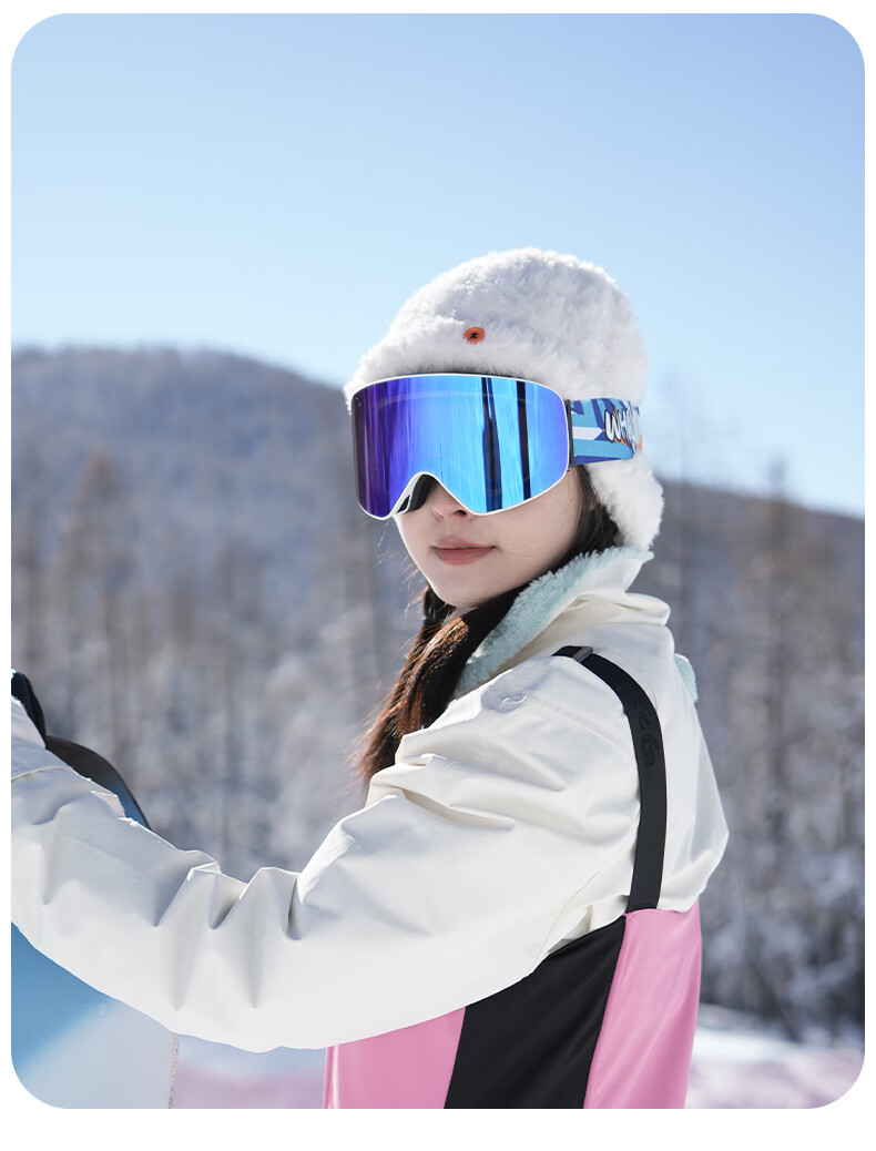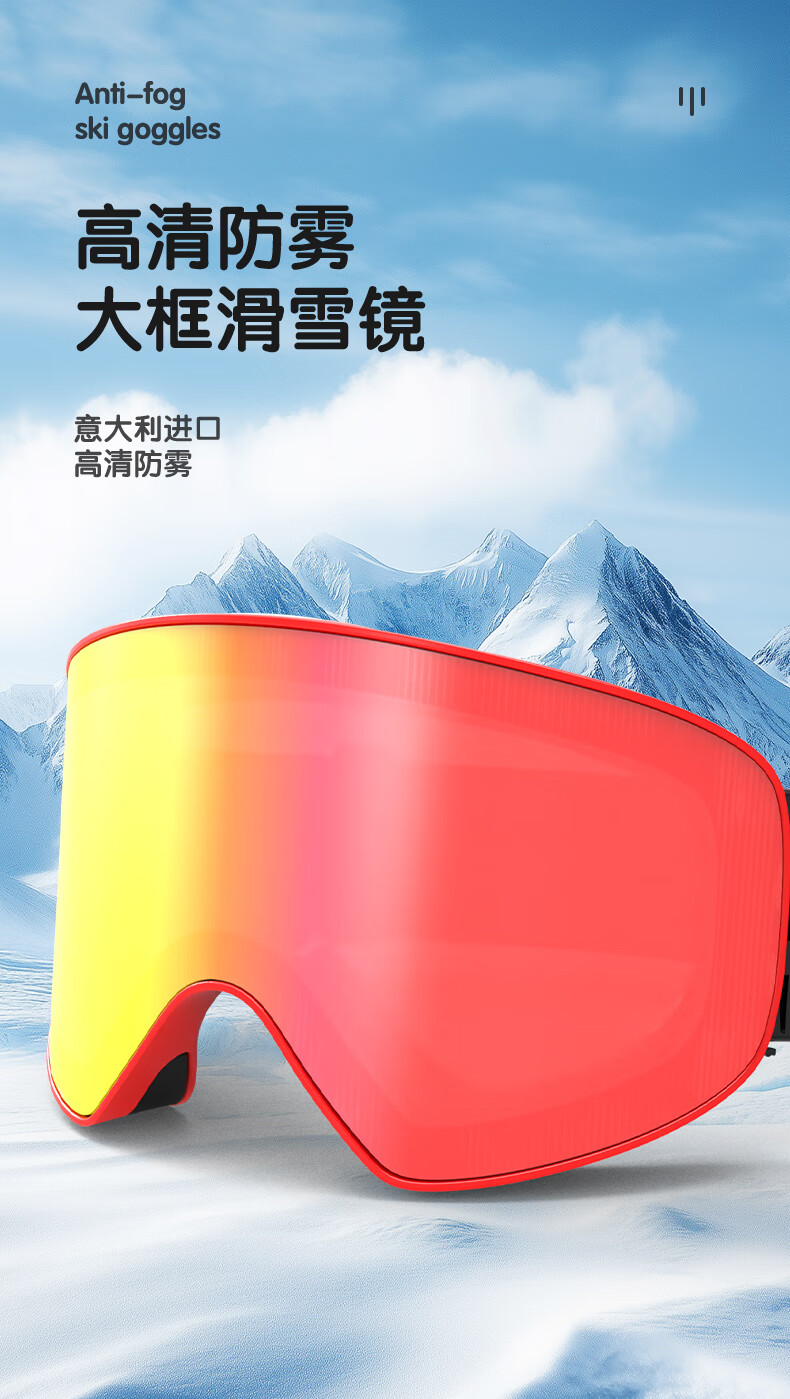 鲸鱼高清防雾滑雪镜护目镜双层眼镜防紫外线防雪盲防强光单双板滑雪 【京东物流】黑框/茶色镀银