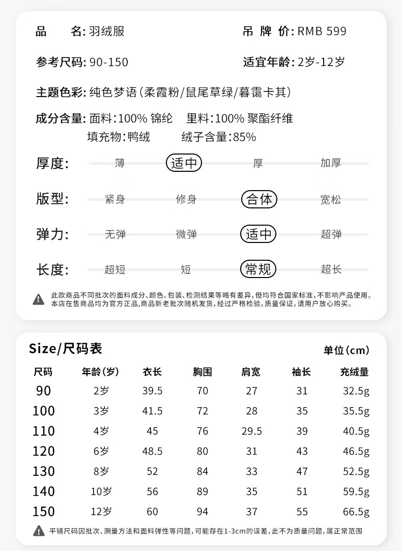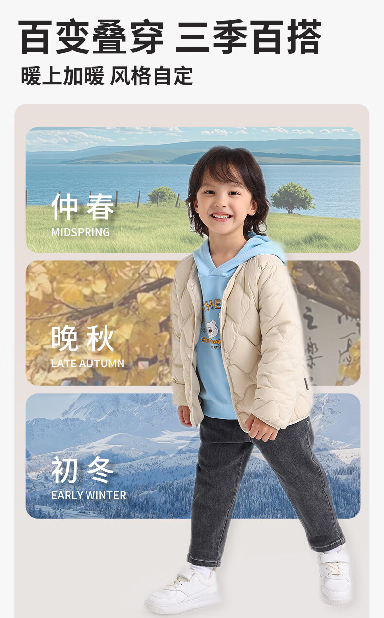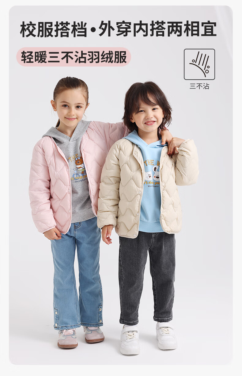 丽婴房【商场同款】三防羽绒服儿童羽绒服男女童轻薄款内胆秋冬保暖外套 月光黄 120 cm/6岁