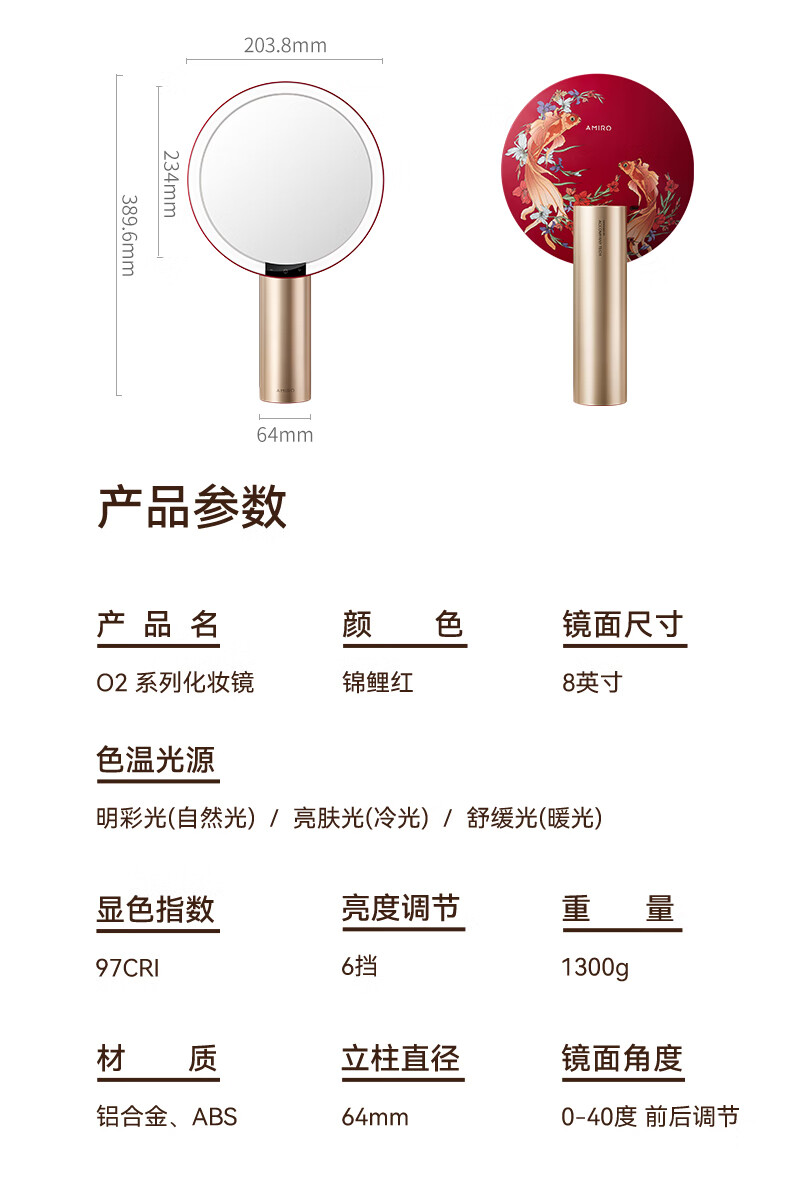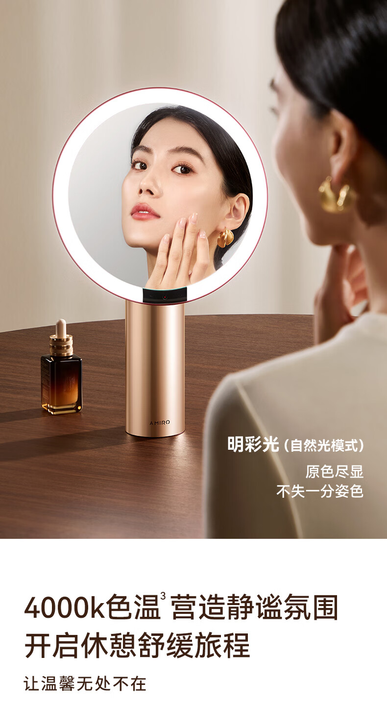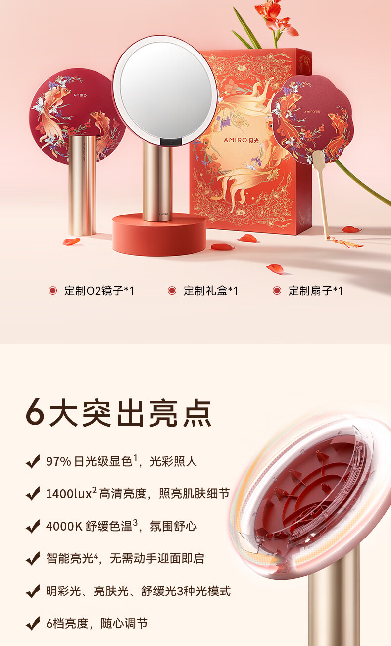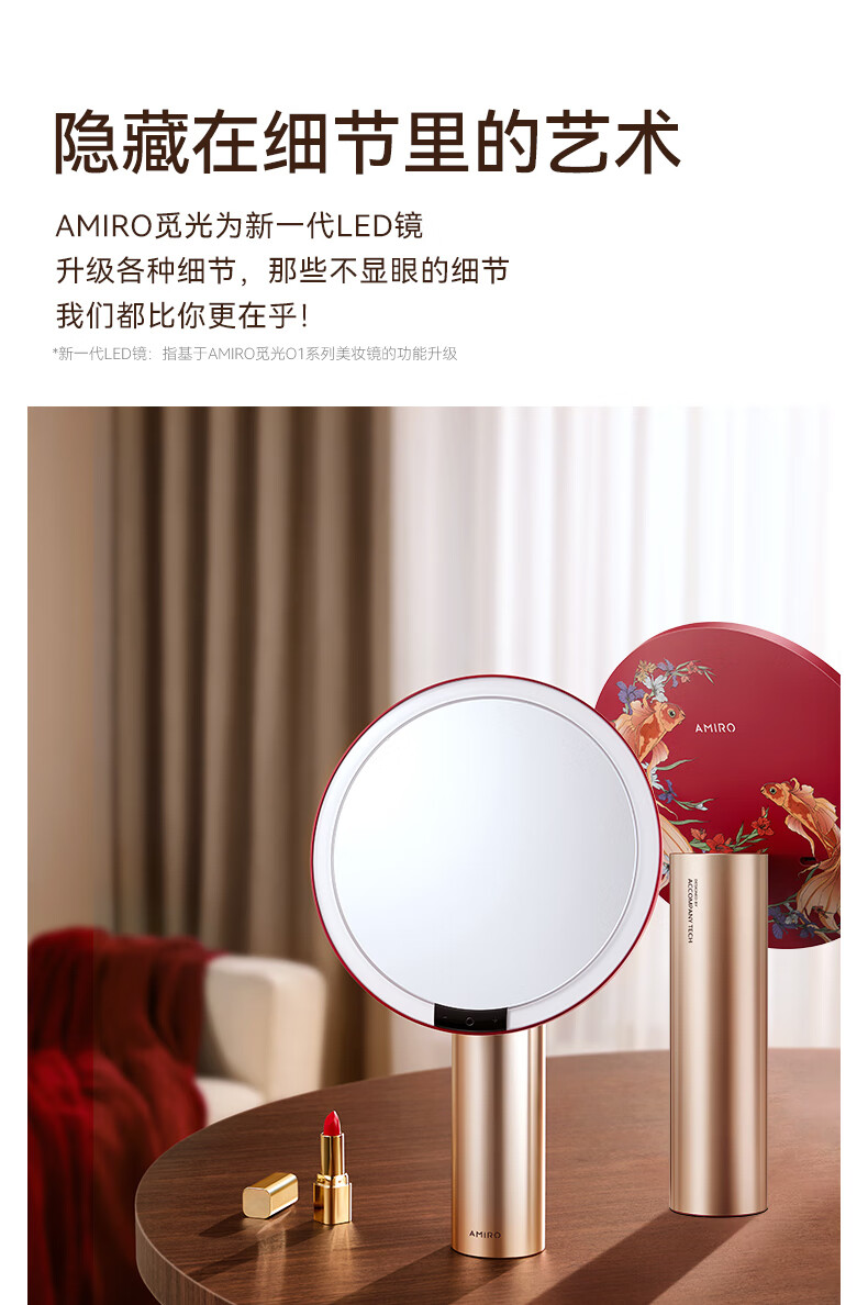 AMIRO觅光化妆镜带灯LED智能梳妆镜 高清补光美妆镜 桌面台式镜子 圣诞新年礼物送女生 O2锦鲤鸿运礼盒