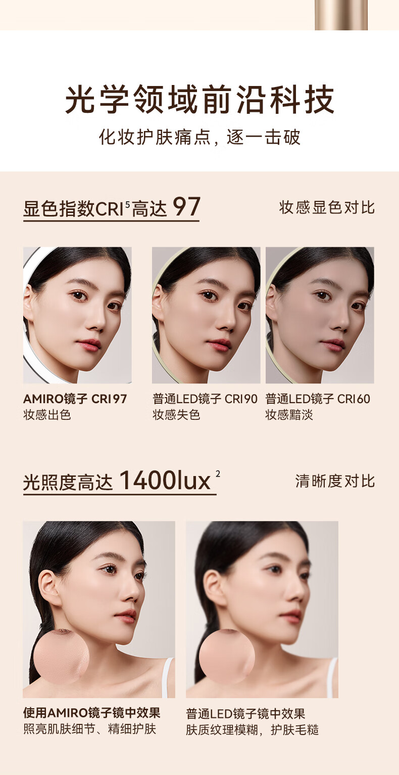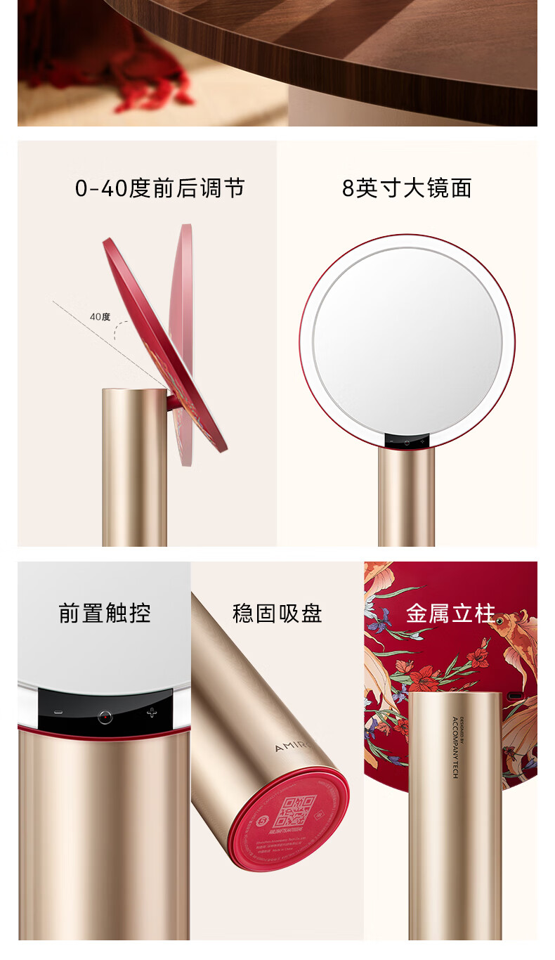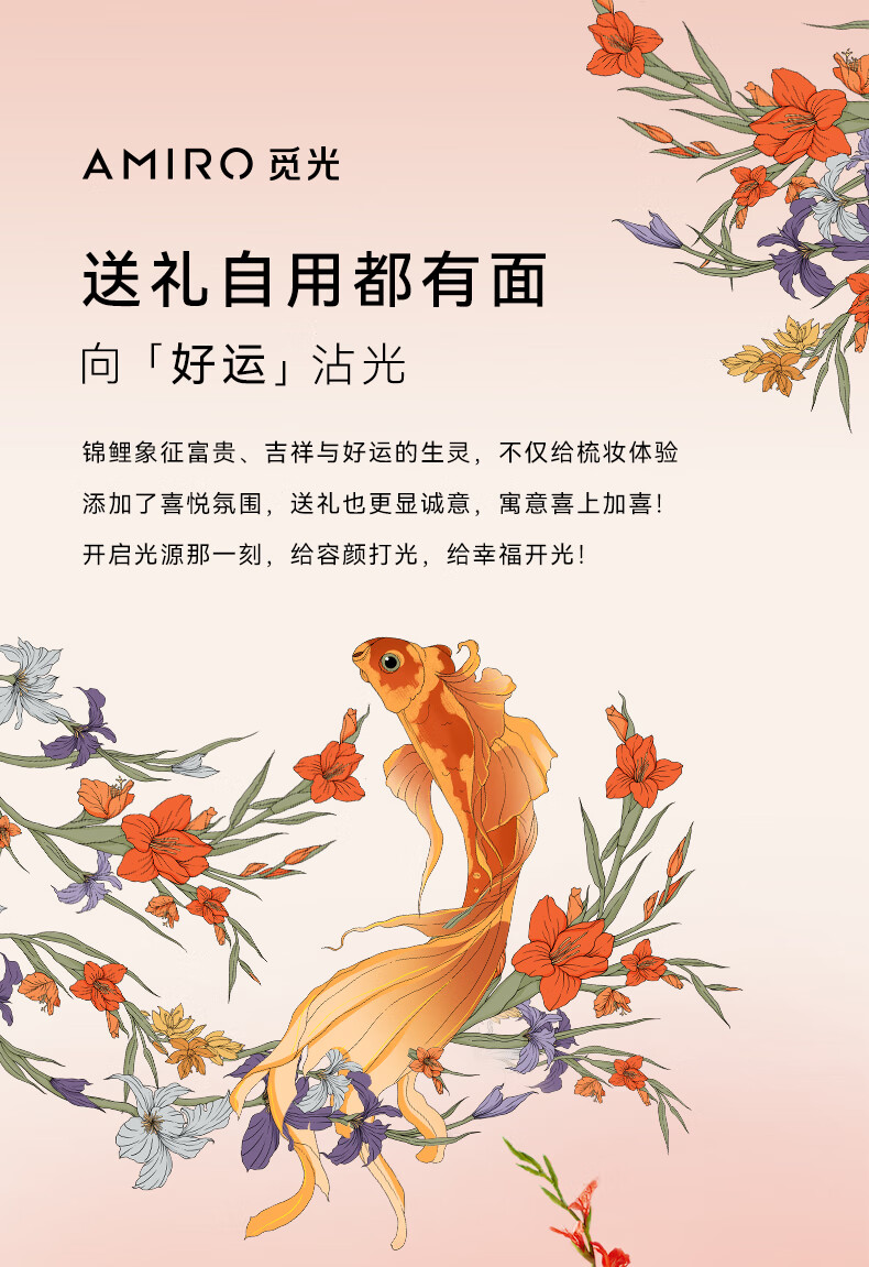 AMIRO觅光化妆镜带灯LED智能梳妆镜 高清补光美妆镜 桌面台式镜子 圣诞新年礼物送女生 O2锦鲤鸿运礼盒