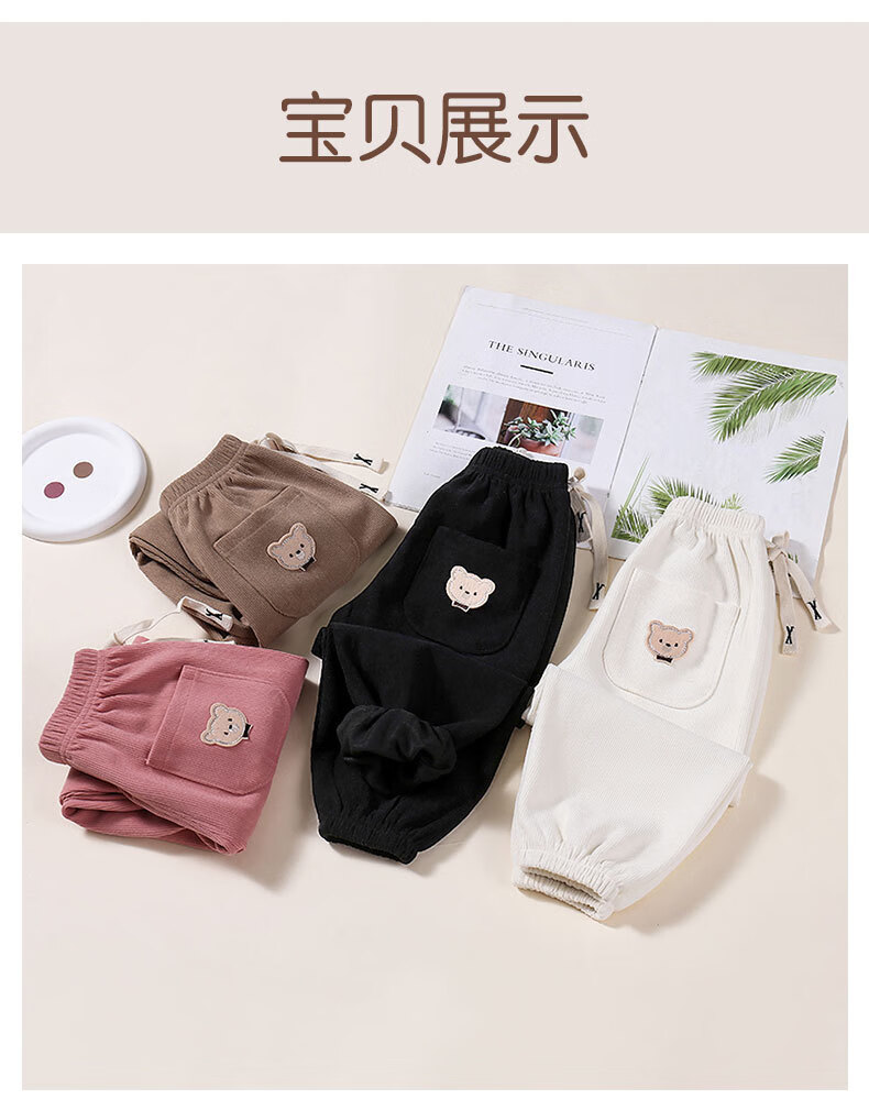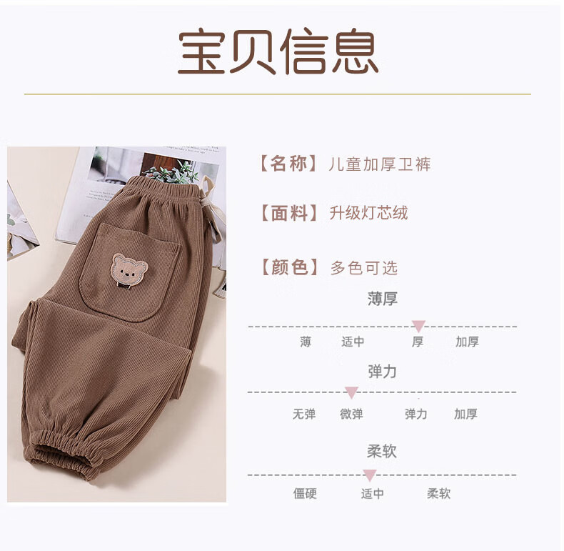 贝婴初儿童休闲裤春季新款韩版男女童休闲裤中小童卫裤羊驼绒裤 牛油果绿【加绒加厚】 110