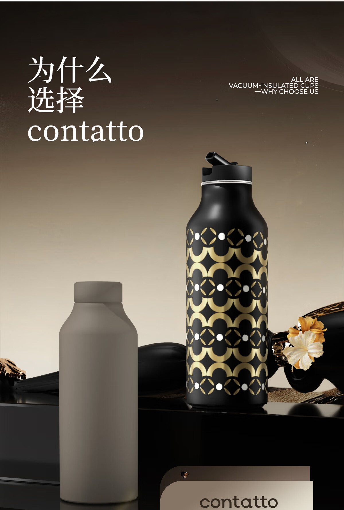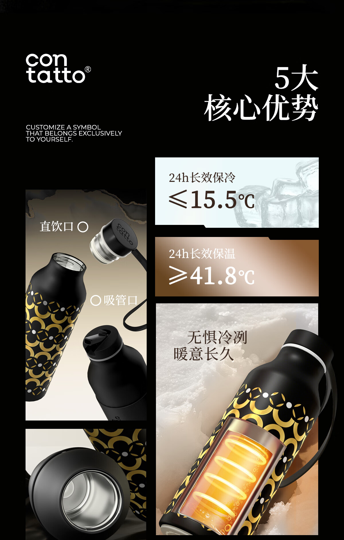 吉姆蓝杰contatto吉姆蓝杰车载运动不锈钢保温杯男士户外杯子男生颜值水杯 极简黑500ml可定制