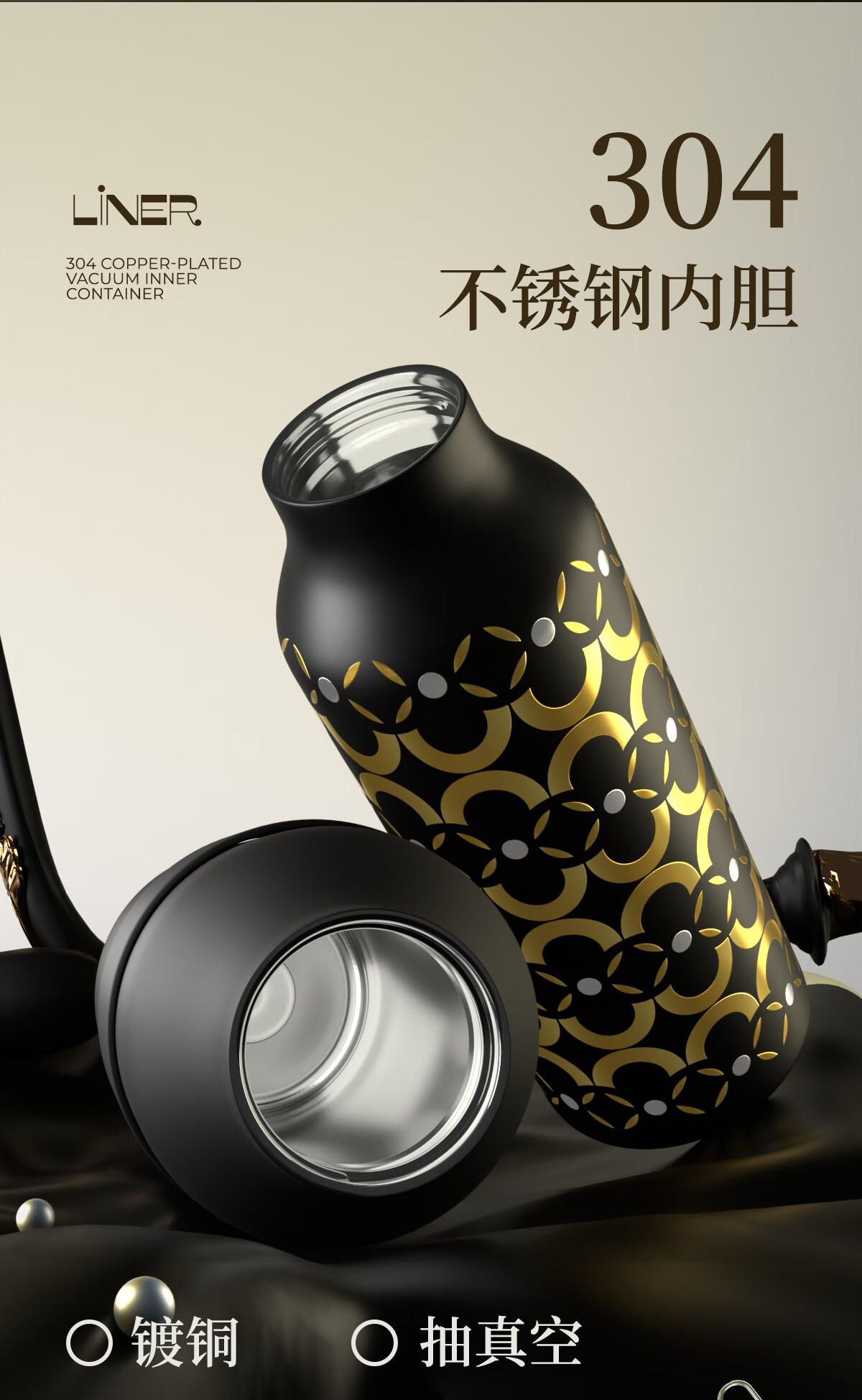 大卡纯钛保温杯高档焖茶杯茶水分离养生泡茶水杯商务办公礼品钛杯定制 青釉星碎【纯钛+礼盒】430ml